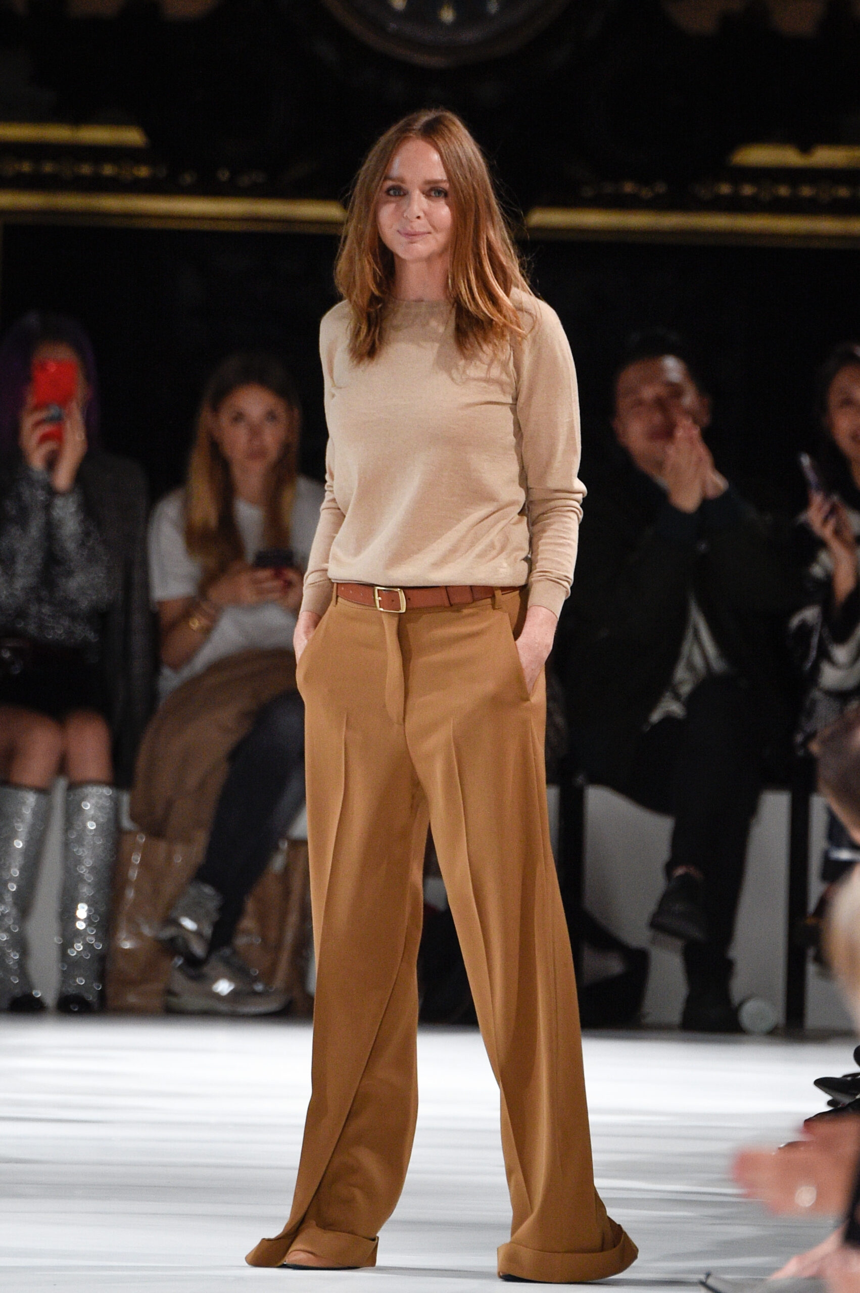 - PARIS, FRANCE – OCTOBER 02: Desinger Stella McCartney acknowledges the audience at the end of her show as part of the Paris Fashion Week Womenswear Spring/Summer 2018 on October 2, 2017 in Paris, France. (Photo by Peter White/Getty Images)