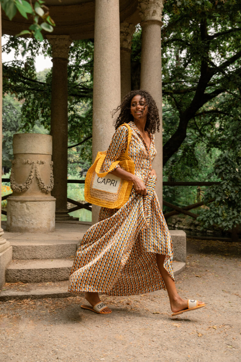 Il desiderio di portare con sé la gioia di una vacanza e l’energia di quelle mete scaldate dal sole si declinano sugli accessori De Siena, brand creato e disegnato in Italia di calzature di alta qualità. Best seller sono le iconiche ciabattine Resort in rafia con dettagli multicolor che per la collezione Spring Summer 2024 vedono applicata la stessa lavorazione su sneakers, braccialetti, cappelli e anche borse con gli inconfondibili nomi delle più prestigiose località estive tra cui Capri, Saint Tropez, Ibiza, Mykonos, Palm Beach, Forte dei Marmi e Portofino.