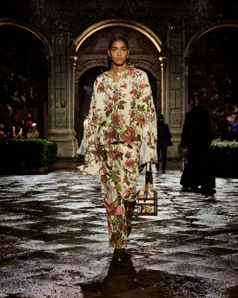 Lo show si è svolto all’Antiguo Colegio de San Ildefonso, un luogo magico e simbolico in cui Frida Kahlo ha studiato e ha incontrato Diego Rivera, suo mentore e amore della sua vita. La sfilata è stata arricchita dalla performance dell’artista messicana e femminista Elina Chauvet. Inoltre, la Cruise di Dior ha accolto un’impressionante parterre di ospiti, tra cui star Naomi Watts, Alicia Keys e una varietà di celebrità locali come Karla Souza e Yalitza Aparicio.