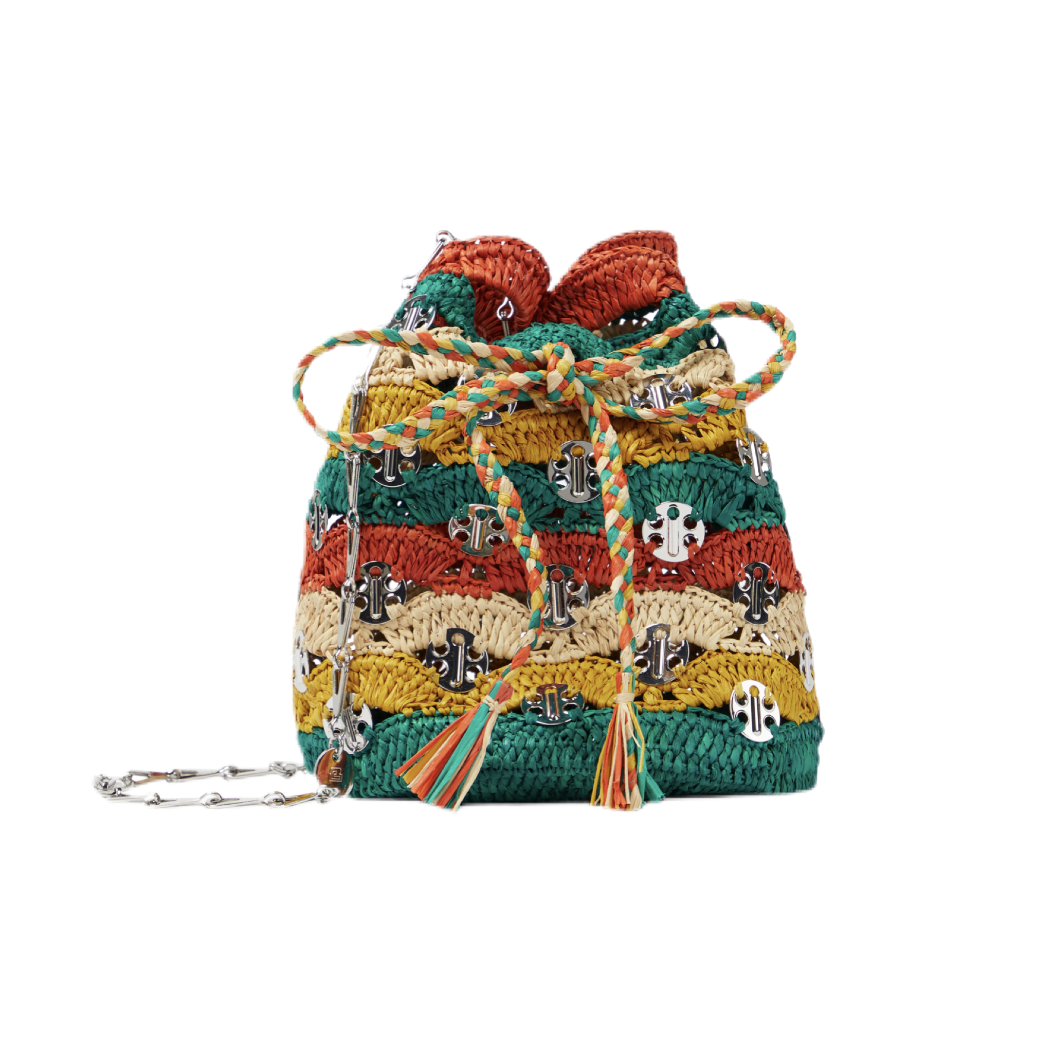 Le borse di paglia possono inoltre essere impreziosito da unici dettagli e decorazioni, dai fili di perle ai cristalli, sino all’inserimento di nappine ton sur ton oppure colorate. Dalla mini bag secchiello di Paco Rabanne, alla versione rainbow – perfetta in occasione del Pride Month – di Valentino, passando alla borsa di design di Loewe che richiama una conchiglia, quali sono le proposte più interessanti delle maison di moda?