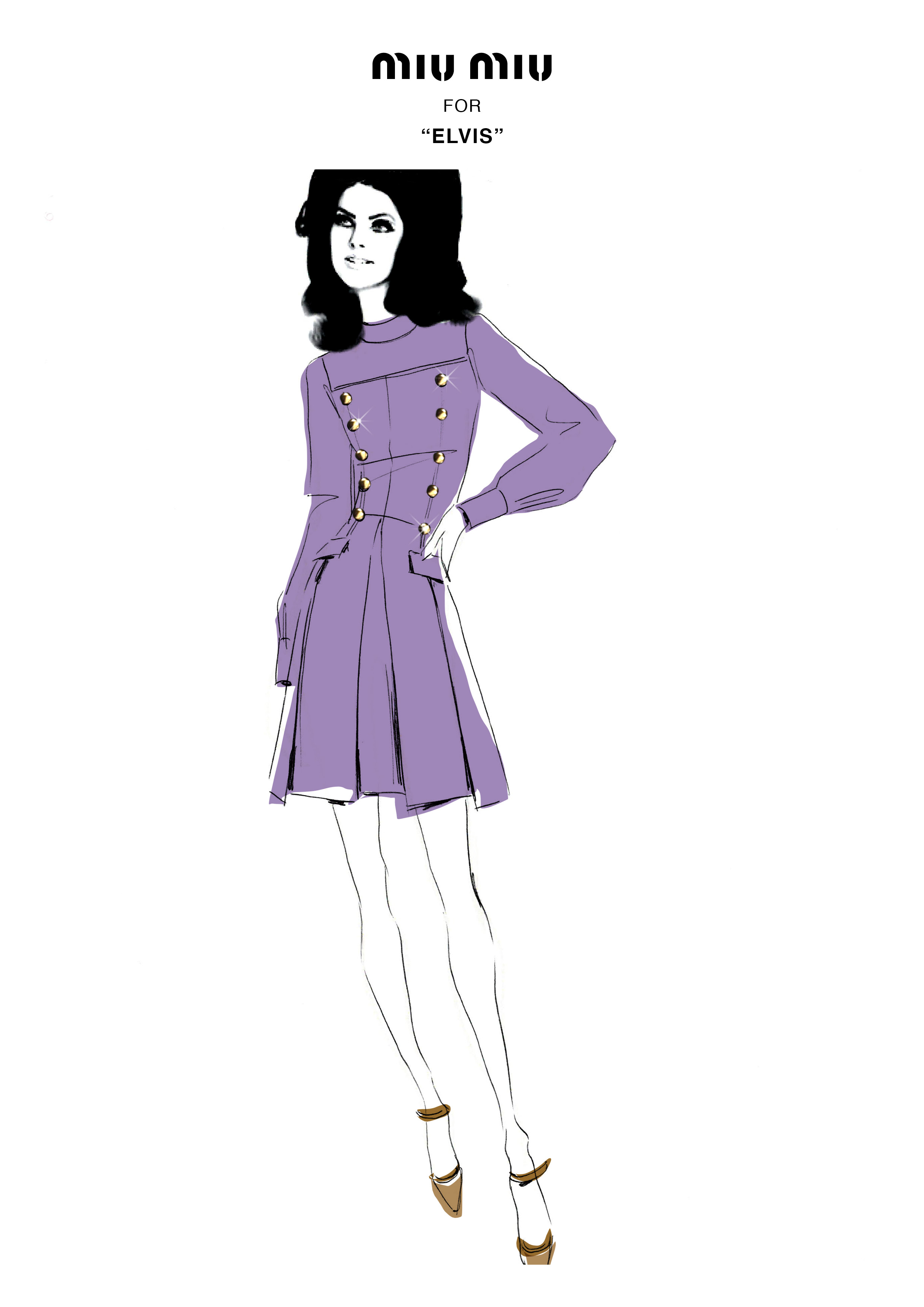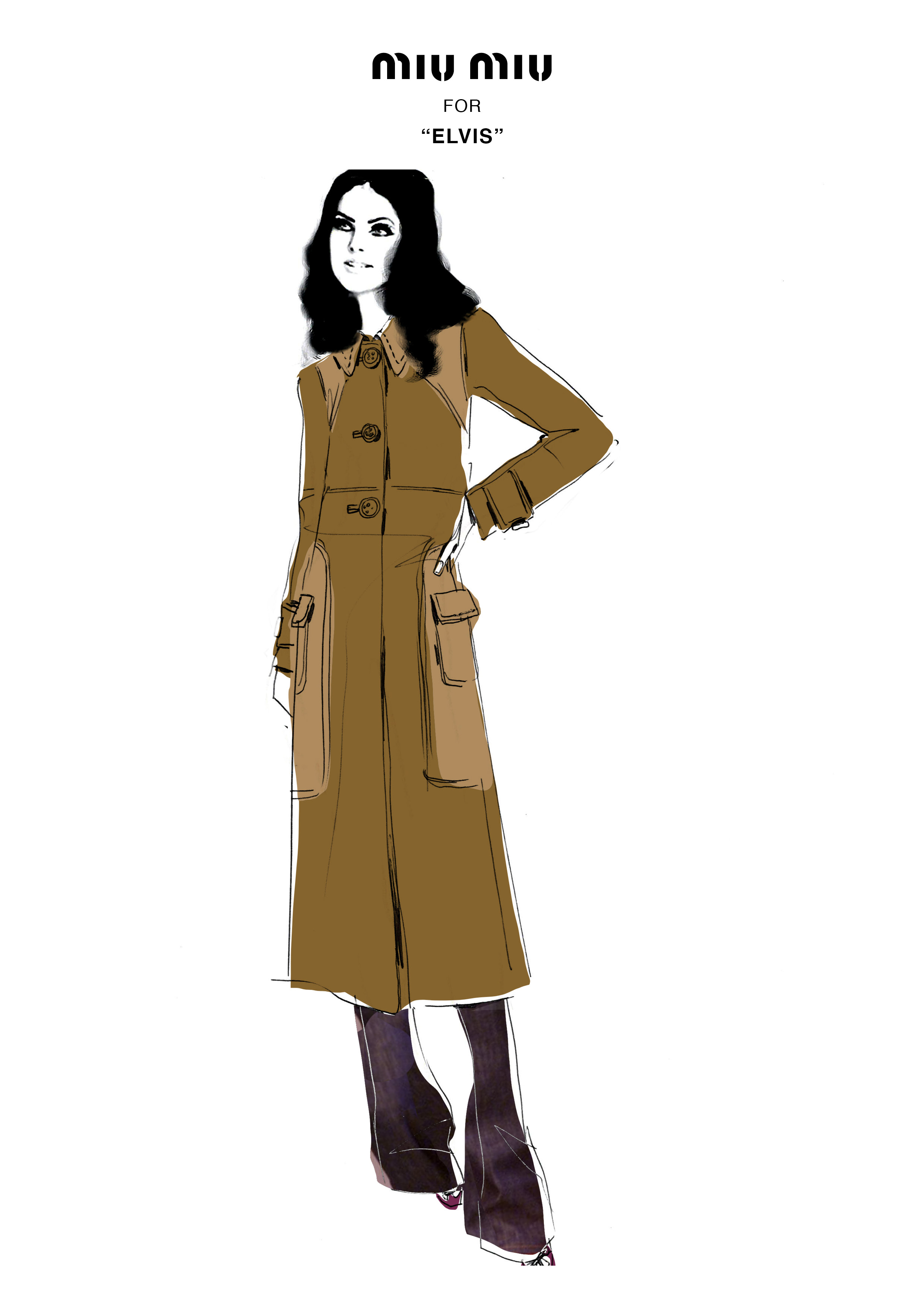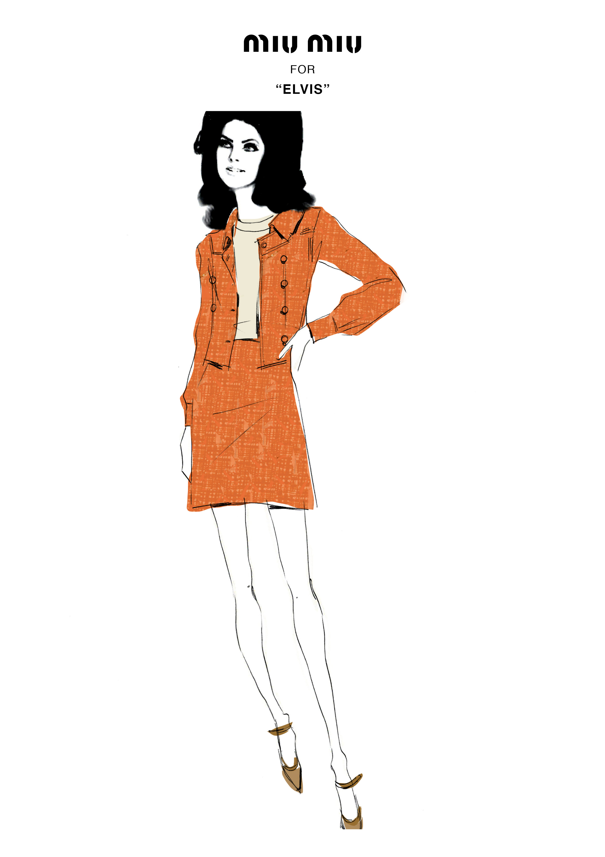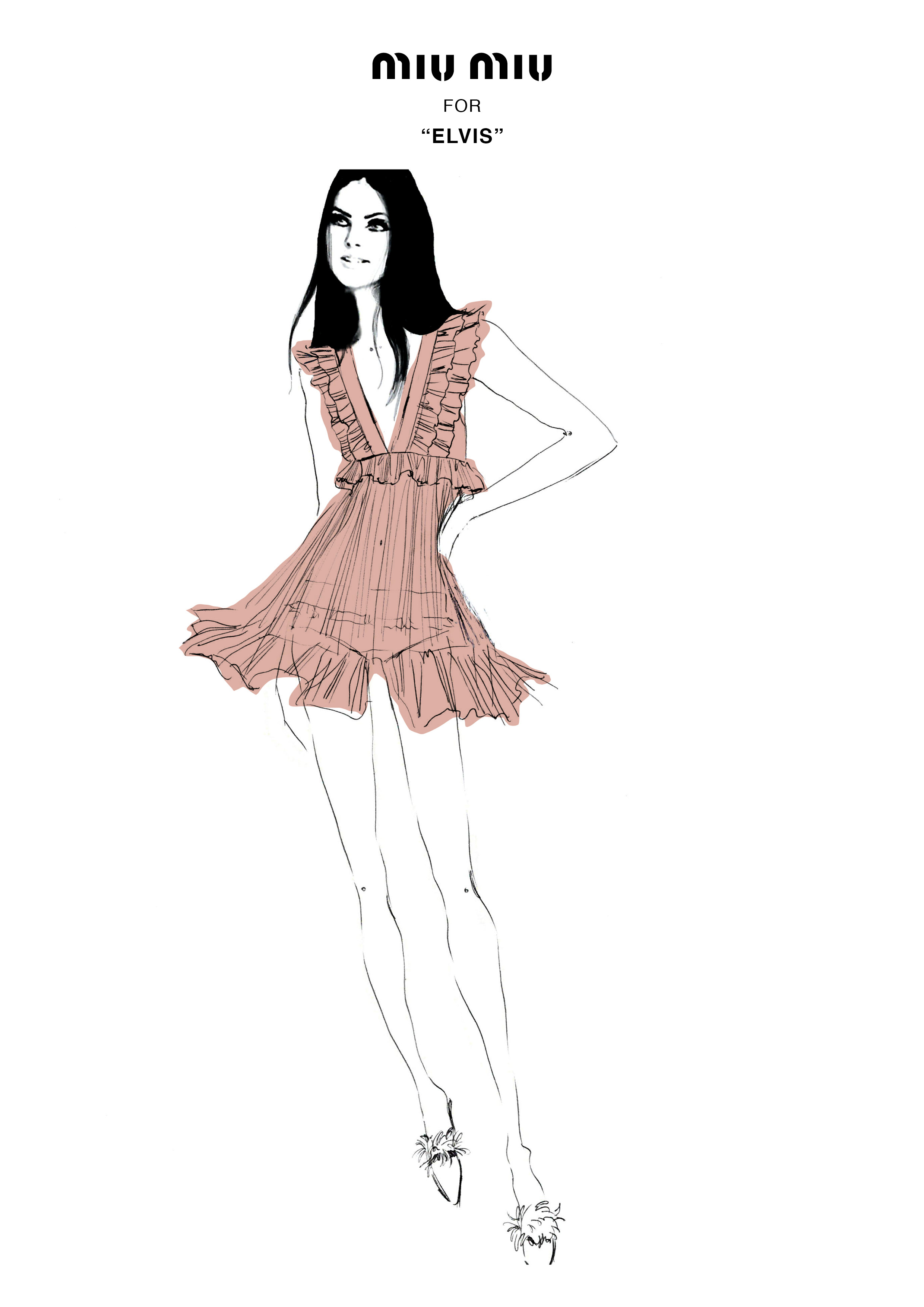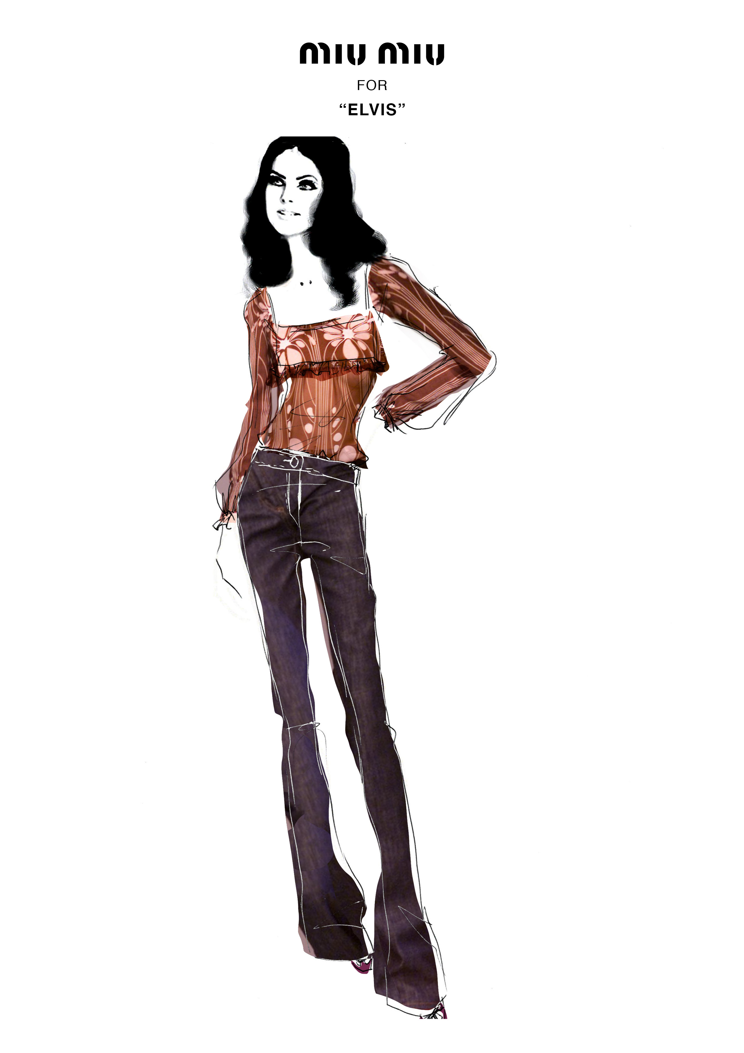 “Al centro di Elvis c’è la leggendaria storia d’amore tra Elvis e Priscilla. La bellezza e lo stile iconico di Priscilla Presley hanno segnato indelebilmente la cultura contemporanea: per Baz come per me era importante rimanere fedeli a questa eredità non semplicemente imitando gli abiti che Priscilla ha indossato, ma trovando un modo moderno per creare una connessione tra il pubblico di oggi e il suo stile epocale. Per noi è stato meraviglioso collaborare di nuovo con Miuccia. Ci siamo immersi negli archivi di Prada e Miu Miu, all’interno dei loro atelier di assoluta eccellenza, per compiere un percorso di traduzione dagli abiti storici della signora Presley ai costumi che sarebbero poi apparsi nel film.” ha dichiarato Catherine Martin.