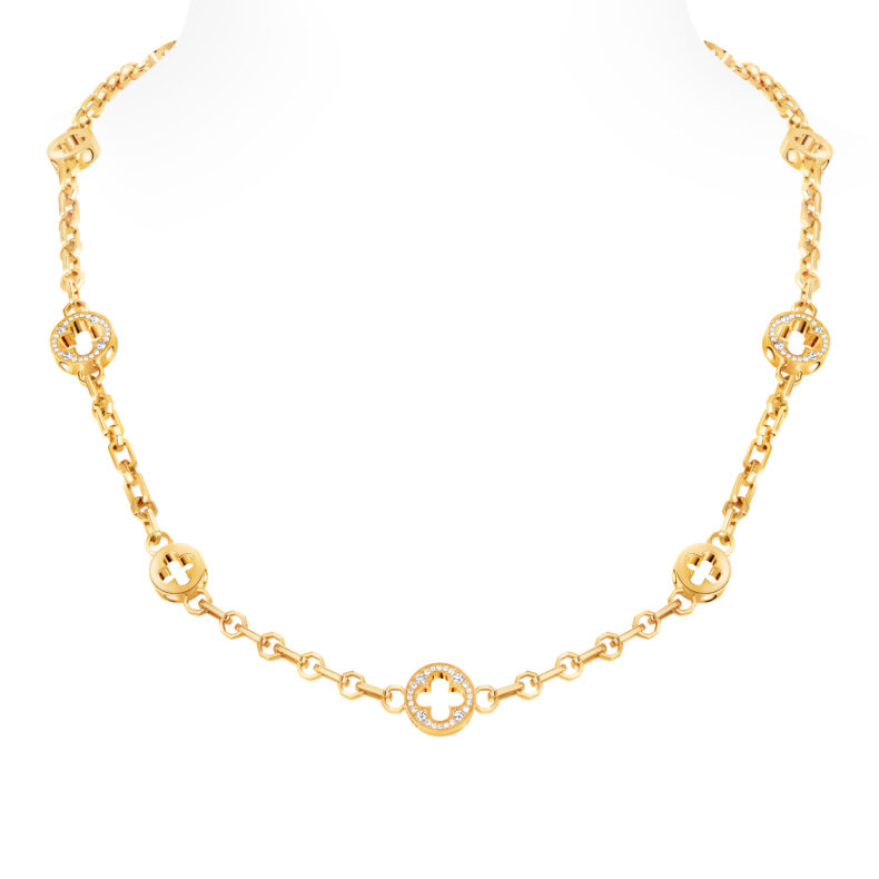 Tra i gioielli più interessanti della collezione vi sono anelli e bracciali intrecciati, un’ottima rappresentazione del legame tra le persone che si amano. Questo intreccio, inoltre, ci riporta alle fibbie di cuoio utilizzate per chiudere gli iconici bagagli di Louis Vuitton. Poi come non amare la lunga collana che si trasforma in bracciale a più fili o in collane sovrapposte?