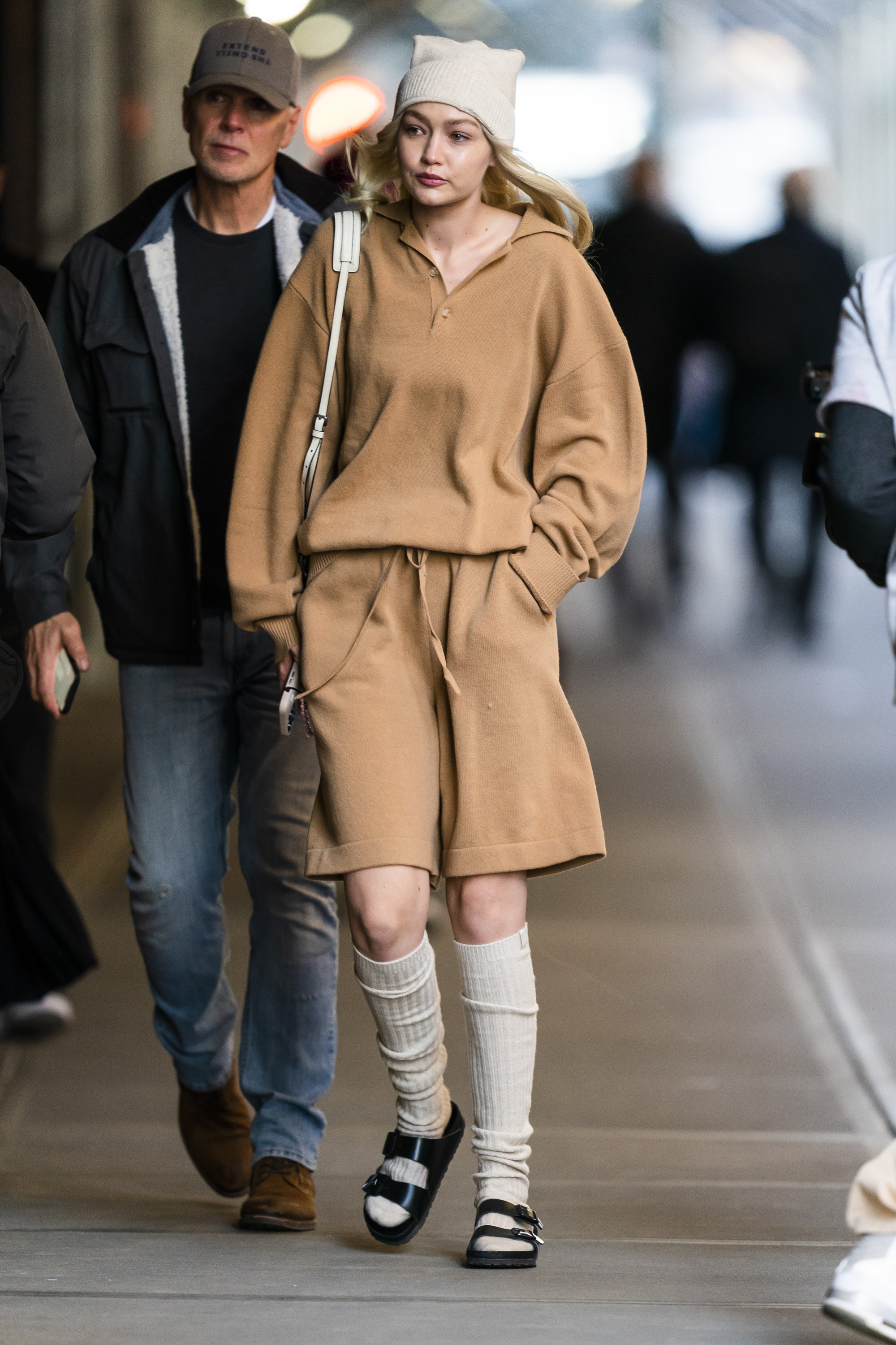 - HAMBURG, GERMANY – AUGUST 30: Elise Soho wearing Birkenstock beige sandals, Joseph beige two piece, Stella McCartney beige trenchcoat, Loewe mini blue baby bag on August 30, 2021 in Hamburg, Germany. (Footage by Photographer/Getty Images) (Photo by Jeremy Moeller/Getty Images)