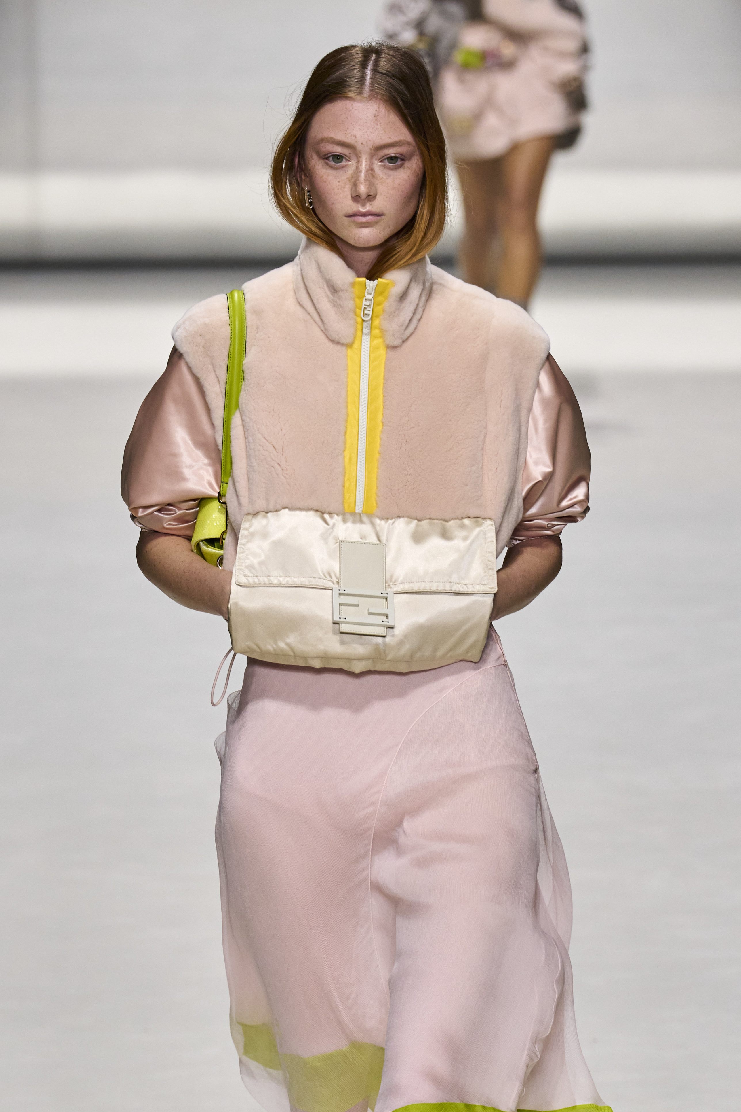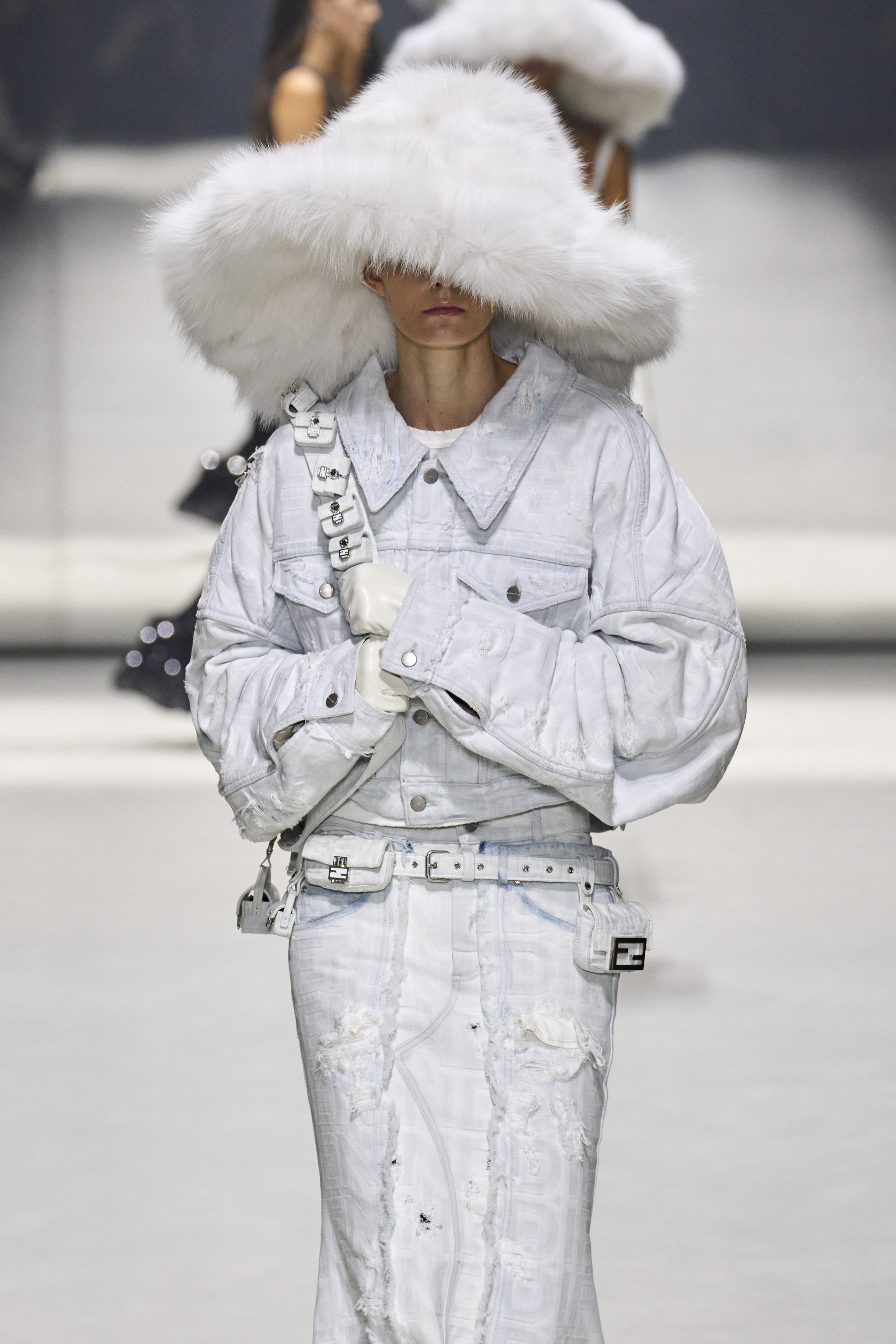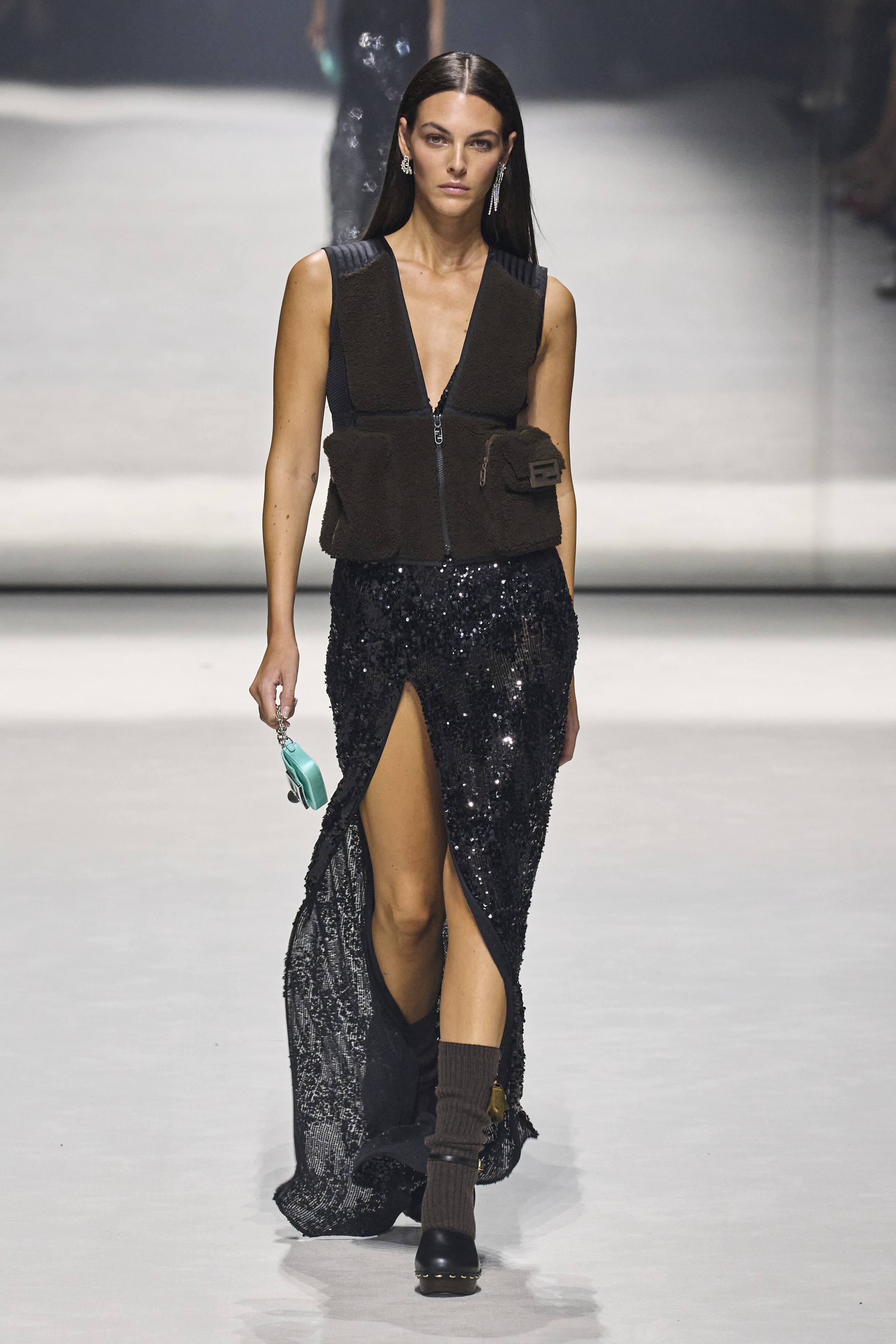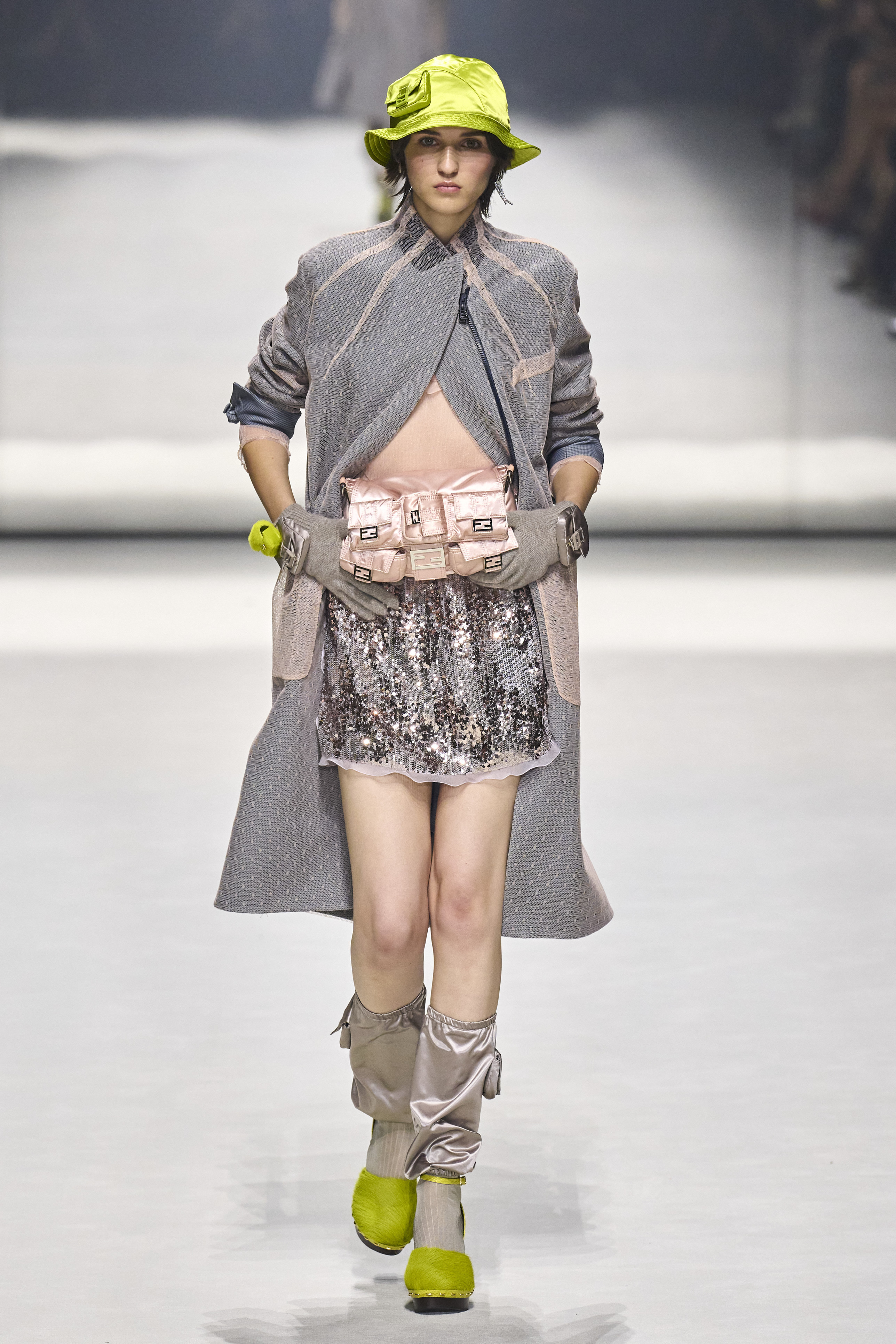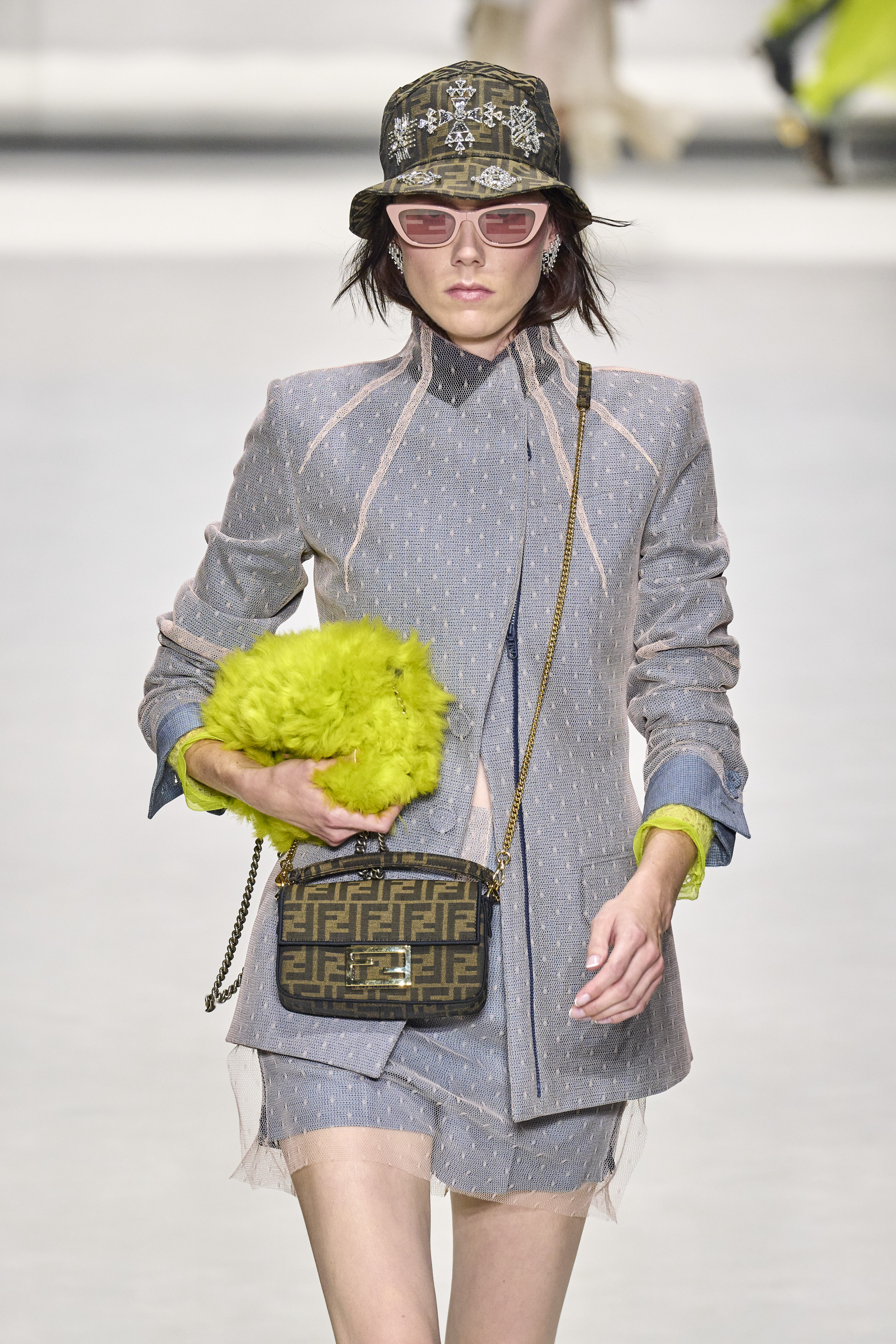 A concludere la sfilata una meravigliosa ed inossidabile Linda Evangelista, icona assoluta degli anni ‘90, avvolta in una lussuosissima mantella color Tiffany. Non a caso Fendi, per questa sfilata, ha collaborato anche con Tiffany & Co. – entrambe le case della famiglia LVMH -, l’intramontabile eccellenza della maison di gioielli è stata scelta per realizzare versioni più preziose della borsa di punta di Fendi. Tra le tante in passerella, abbiamo adorato il dettaglio del preziosissimo logo con doppia F sulla Baguette in coccodrillo indossata da Bella Hadid. Tiffany reimmagina la Baguette nella sua versione più lussuosa. Argento, smalto, coccodrillo, oro bianco e diamanti.
