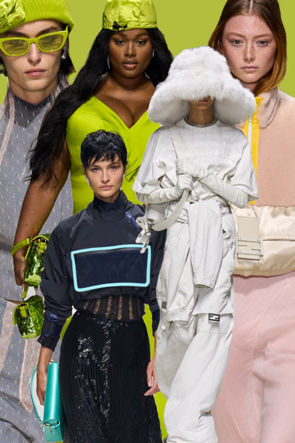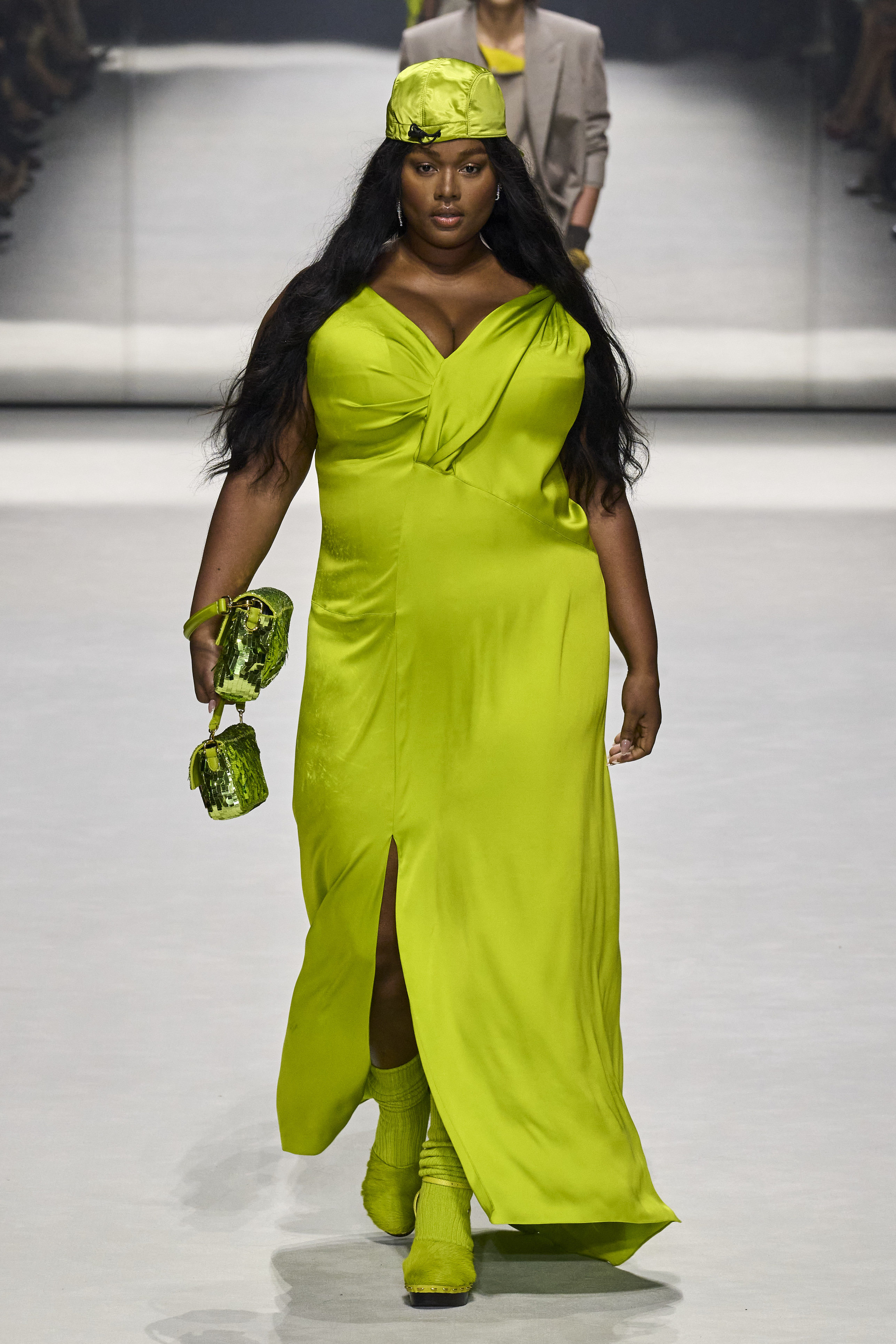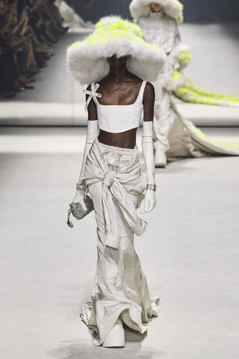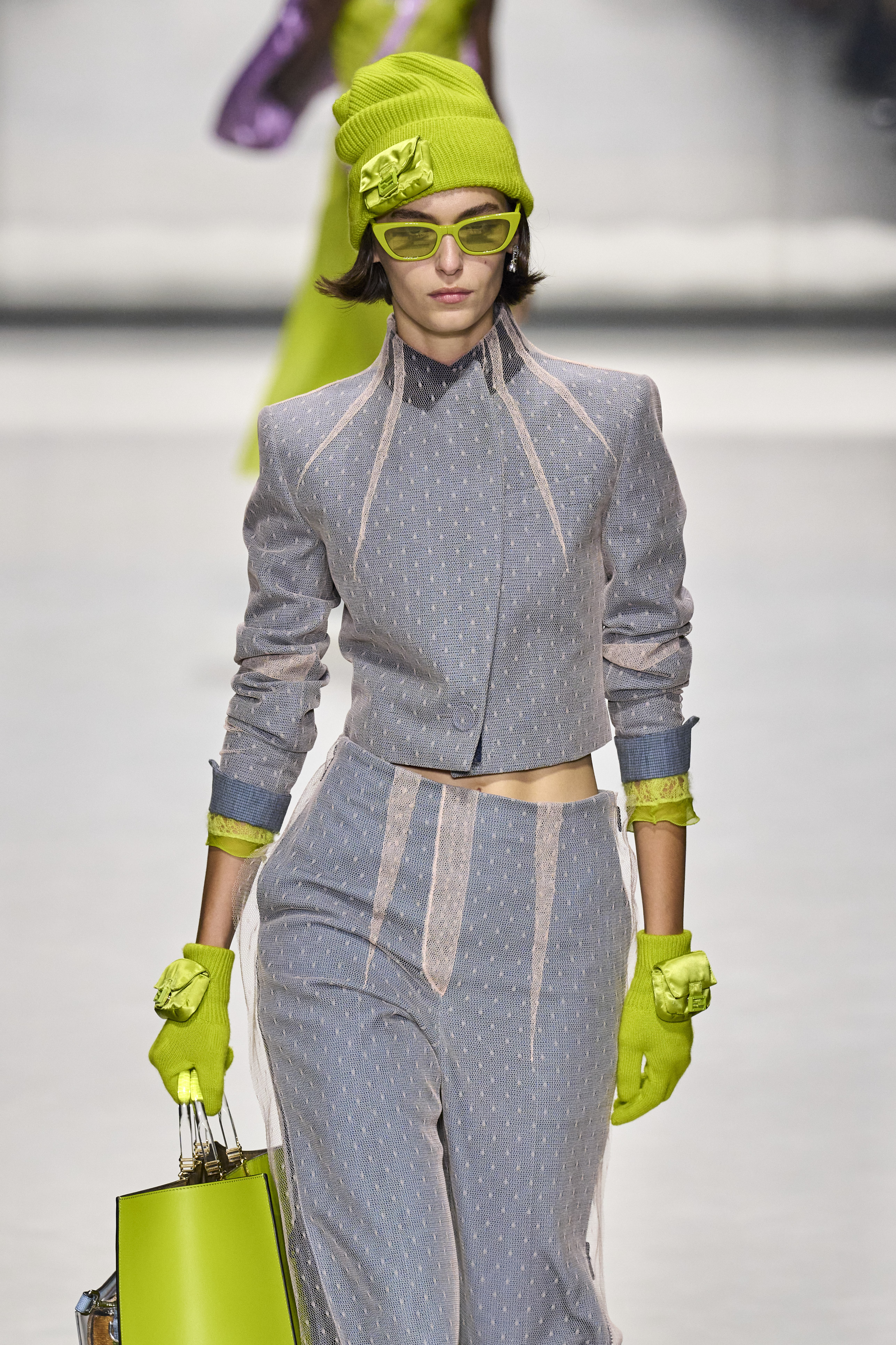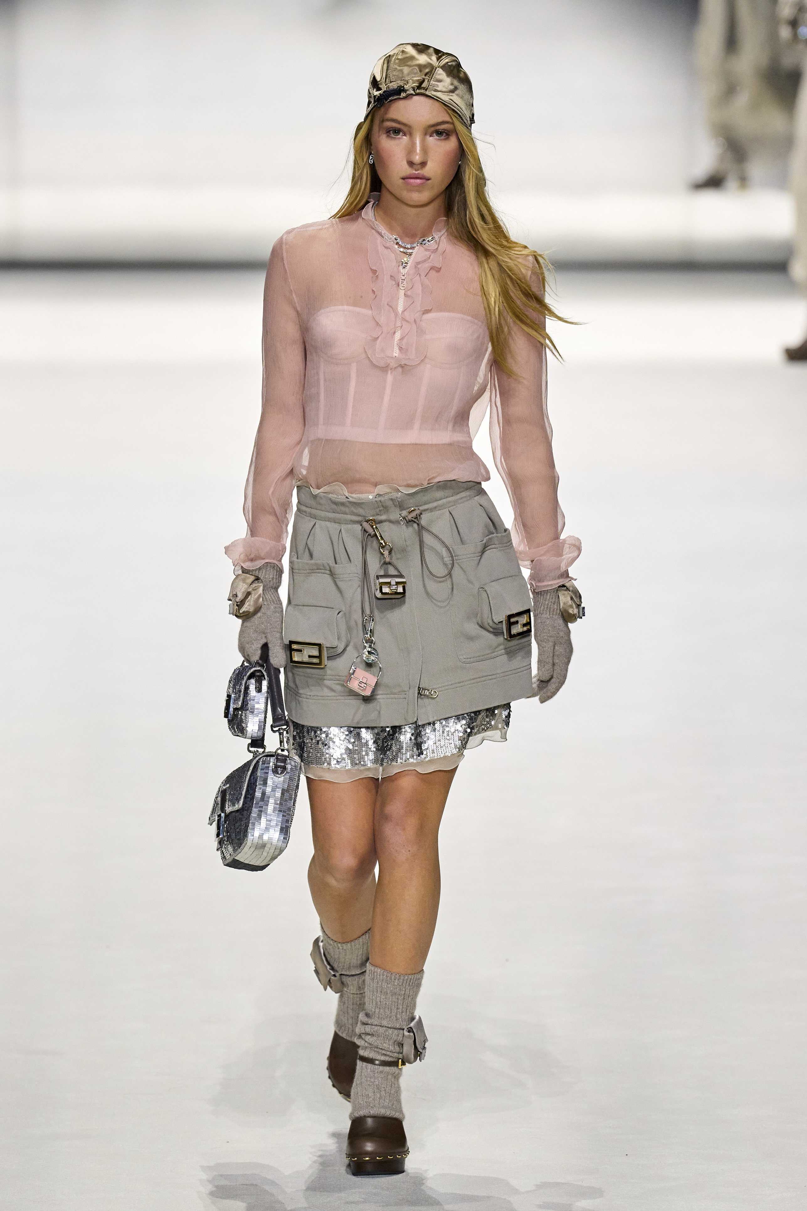 A concludere la sfilata una meravigliosa ed inossidabile Linda Evangelista, icona assoluta degli anni ‘90, avvolta in una lussuosissima mantella color Tiffany. Non a caso Fendi, per questa sfilata, ha collaborato anche con Tiffany & Co. – entrambe le case della famiglia LVMH -, l’intramontabile eccellenza della maison di gioielli è stata scelta per realizzare versioni più preziose della borsa di punta di Fendi. Tra le tante in passerella, abbiamo adorato il dettaglio del preziosissimo logo con doppia F sulla Baguette in coccodrillo indossata da Bella Hadid. Tiffany reimmagina la Baguette nella sua versione più lussuosa. Argento, smalto, coccodrillo, oro bianco e diamanti.