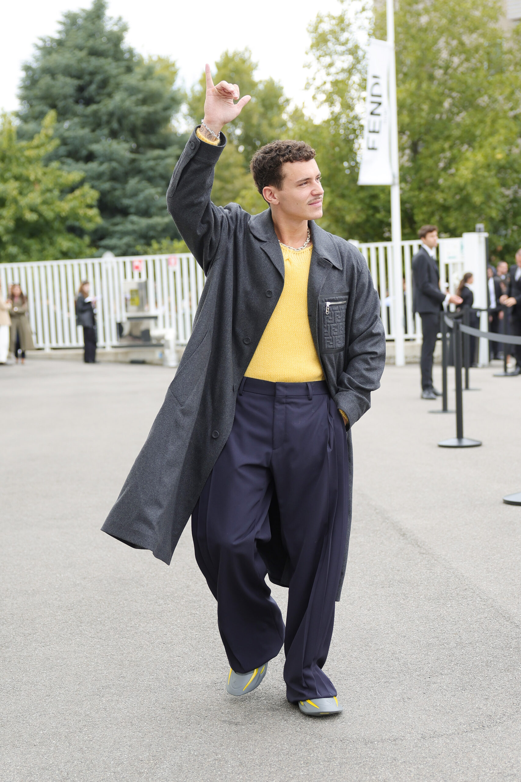 - MILAN, ITALY – SEPTEMBER 17: Arón Piper is seen arriving at the Fendi fashion show during Milan Fashion Week Womenswear Spring/Summer 2025 on September 17, 2024 in Milan, Italy. (Photo by Jacopo M. Raule/Getty Images for Fendi)