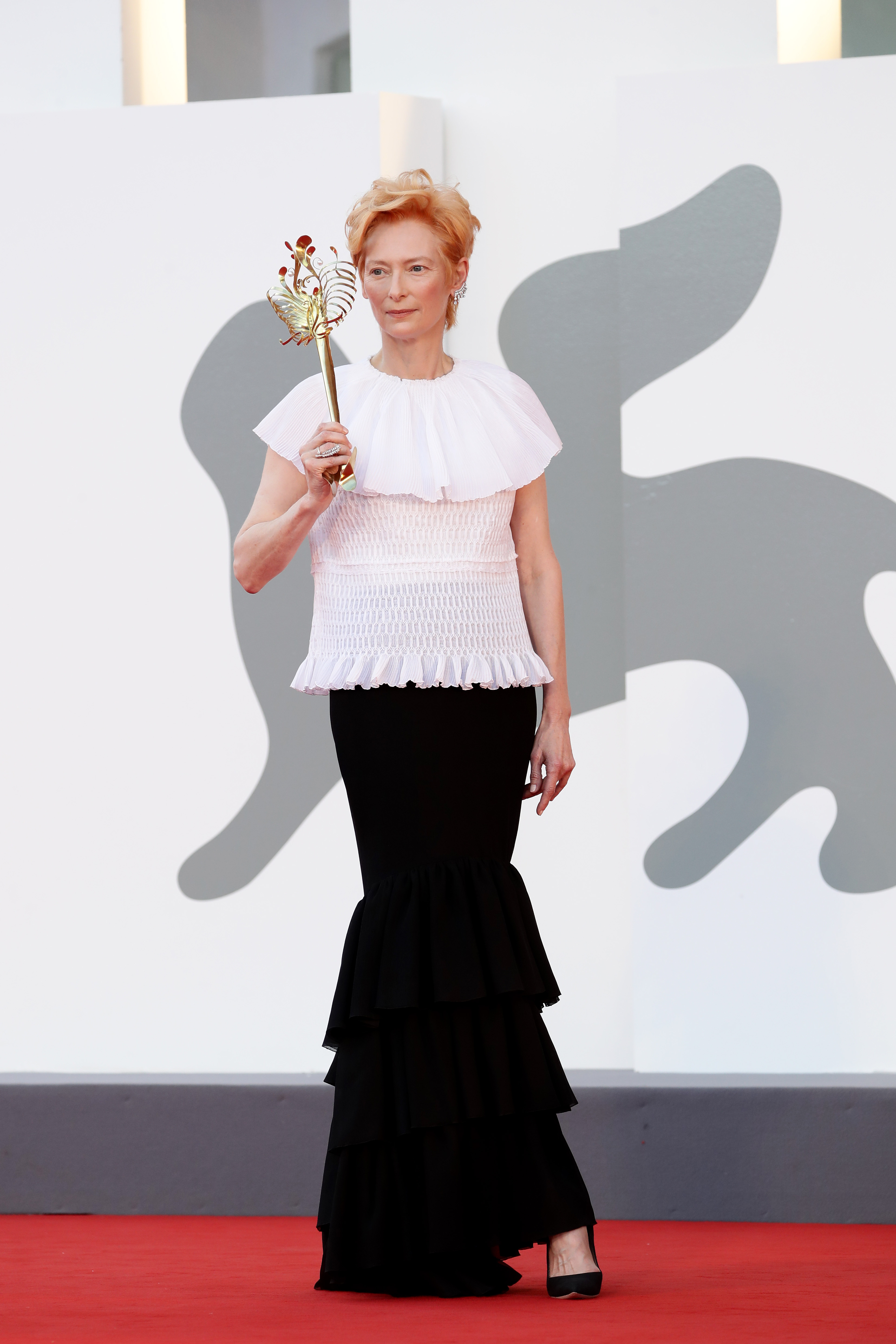 - VENICE, ITALY – SEPTEMBER 02: Actress Tilda Swinton walks the red carpet ahead of the Opening Ceremony and the “Lacci” red carpet during the 77th Venice Film Festival at on September 02, 2020 in Venice, Italy. (Photo by Vittorio Zunino Celotto/Getty Images)