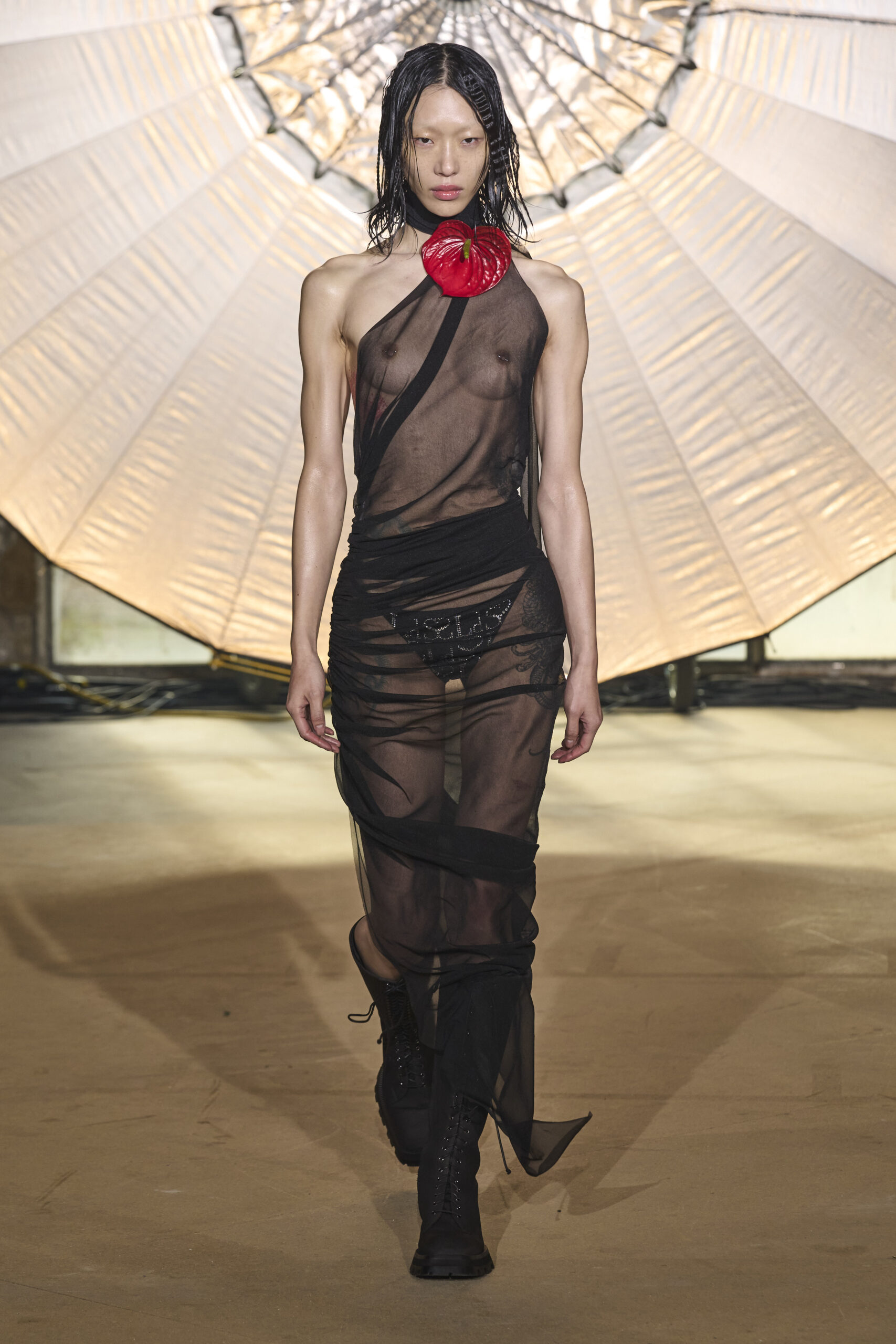 Oggi però, ancora una volta, la moda – con le collezioni Primavera/Estate 2023 – continua a raccontare l’attacco all’autonomia corporea. Lo fa portando in passerella look effetto vedo non vedo, più vedo in realtà, come celebrazione del corpo della donna. Da Rick Owens a Massimo Giorgetti per MSGM, passando per Ludovic de Saint Sernin e Giambattista Valli, moltissimi sono i designer ad aver reinterpretato quel movimento chiamato appunto Free The Nipple, nato sulla scia dell’omonimo film di Lina Esco nel 2013.