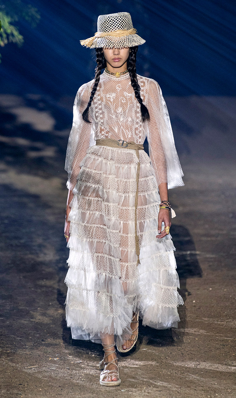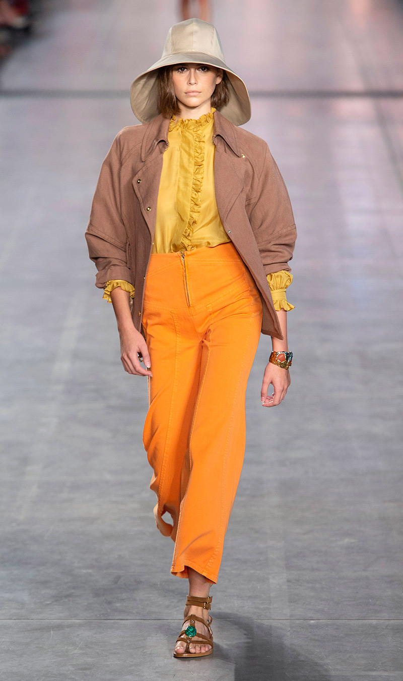 Continua la grande moda ispirata al look safari. La palette del deserto domina questa tendenza, prediligendo nuance come arancione, rosso, senape, khaki e marrone. Lo stile strizza l’occhio all’utility wardrobe senza perdere però la sua componente più femminile. Da Gucci a Zimmermann i protagonisti sono: giacche e gonne con tasconi, pantaloni joggers in cotone e cappelli e borse in raffia.