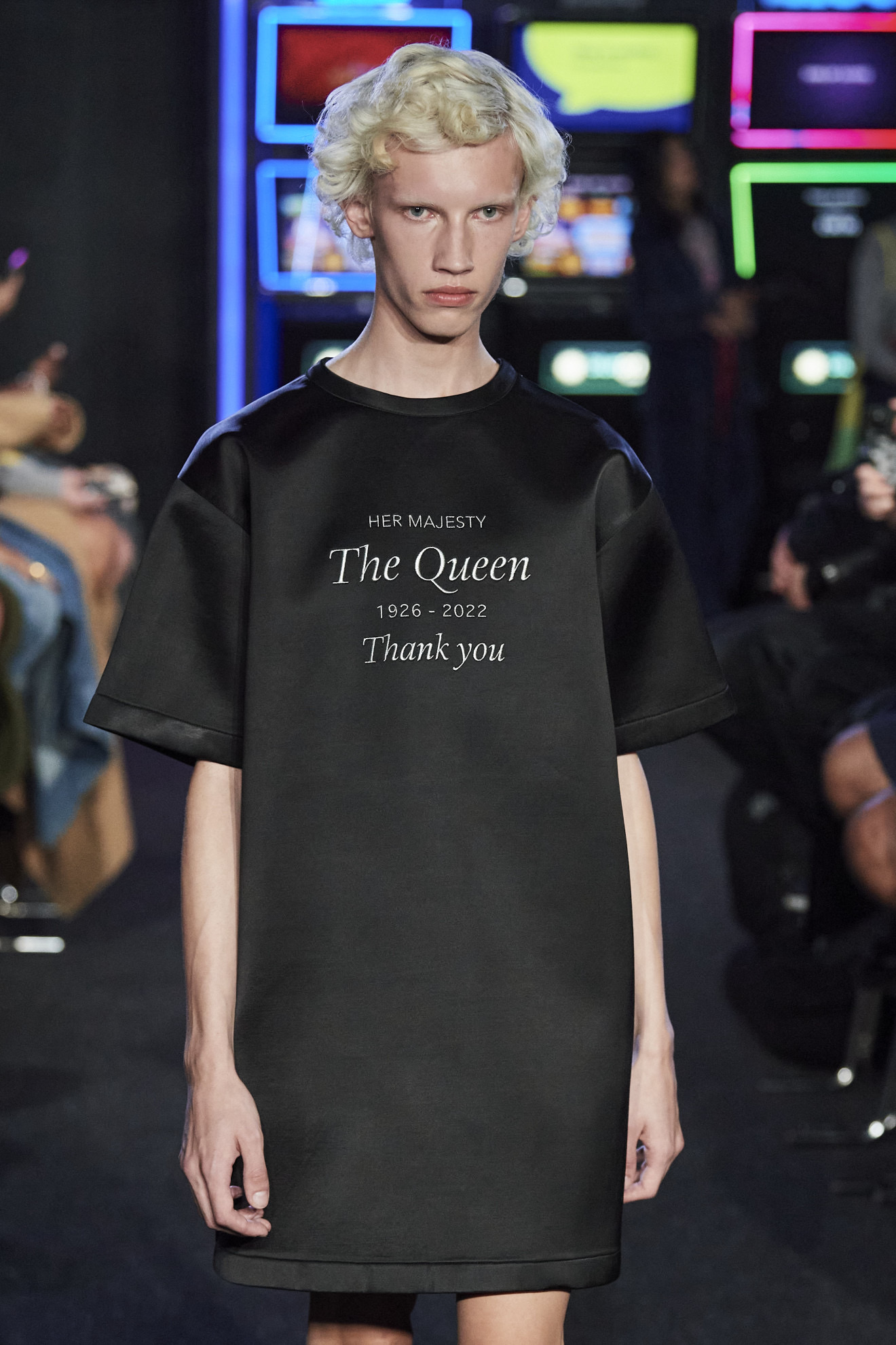 L’Inghilterra e il mondo intero piangono la sovrana che per più tempo ha regnato nella storia, ma la moda, si sa, non si ferma. Alcuni designer presenti in calendario hanno difatti scelto di omaggiare questo evento indimenticabile, Jonathan Anderson ha concluso la sua sfilata portando in passerella una T-shirt nera rendendo – con una frase commemorativa – un esplicito omaggio ad Elisabetta II. Halpern ha invece scelto di aprire la sua sfilata in un totale ed allo stesso tempo maestoso silenzio, facendo sfilare in passerella un look quasi regale che sembra volerci ricordare la celebre sovrana.