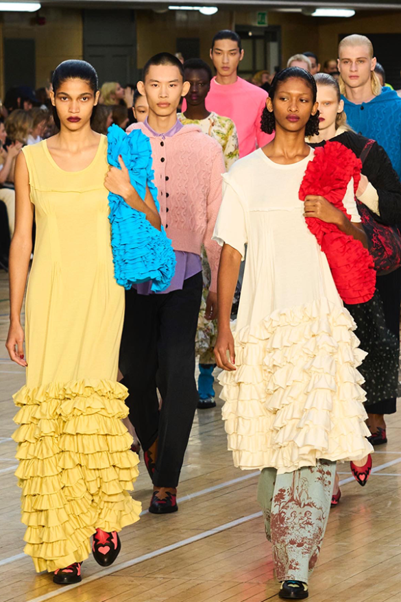 Questa settimana della moda londinese è stata una tra le più particolari di sempre, la cui fine è stata segnata dei funerali della Regina Elisabetta II del Regno Unito. Moltissima sono le maison di moda ad aver sfilato a Londra, da Molly Goddard a JW Anderson, passando per Nensi Dojaka, Christopher Kane e Erdem. La Primavera Estate raccontata in queste giornate della moda britannica è un alternarsi di palette di colori importanti sino all’inossidabile allure del nero.