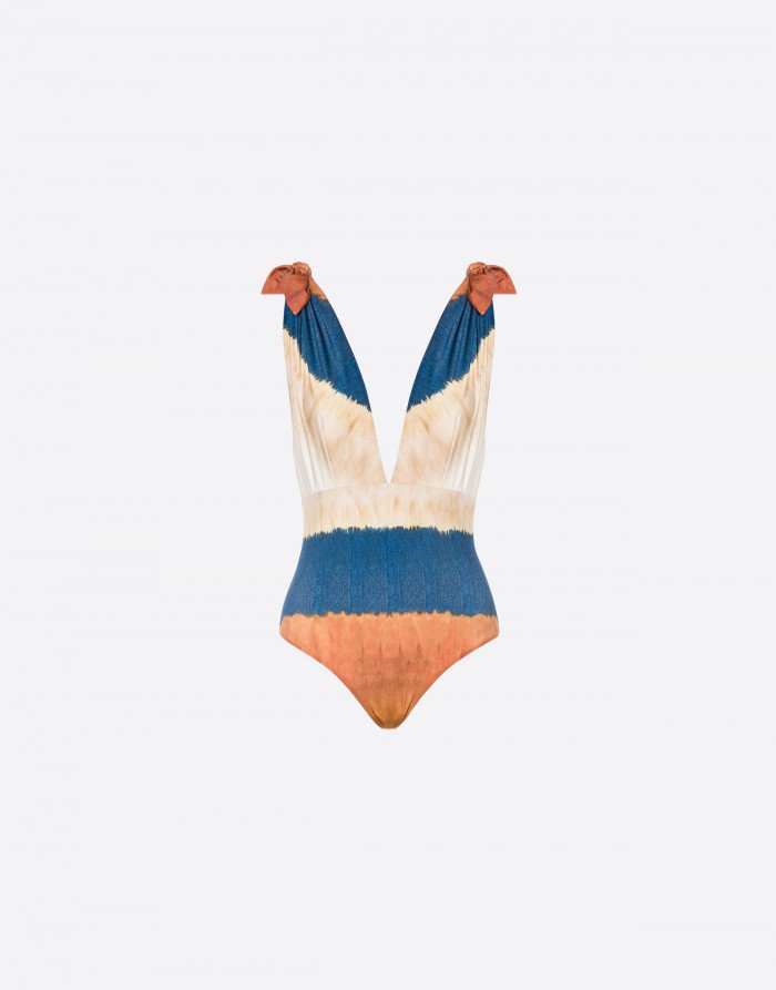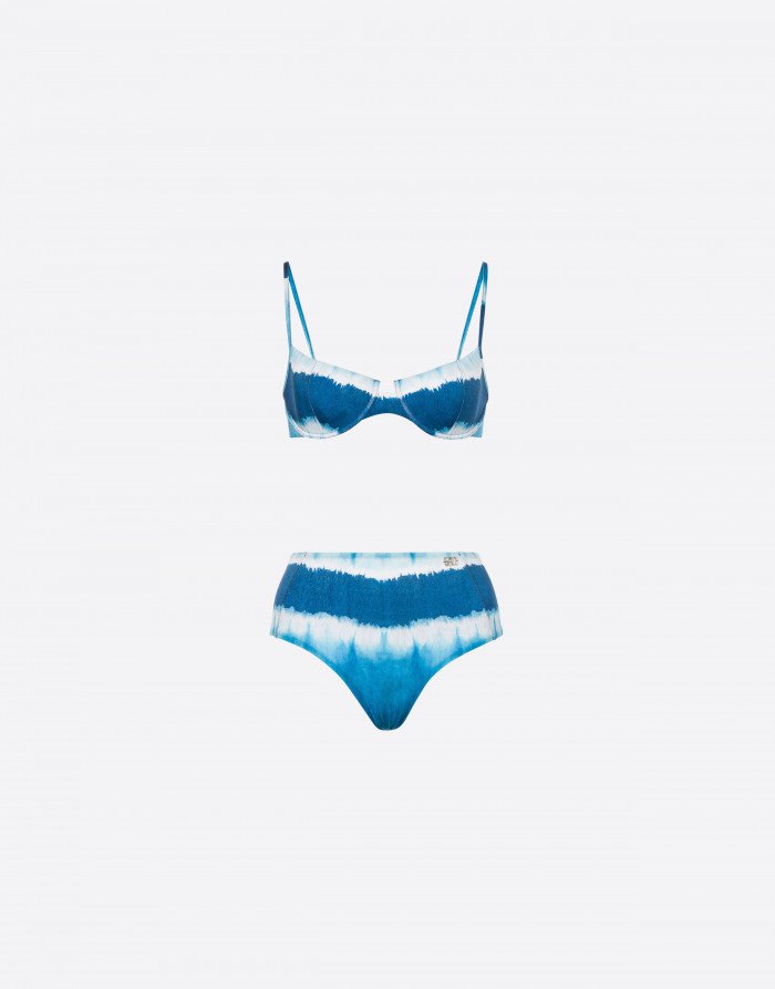 Una capsule completa che interpreta da capo a piedi, letteralmente, il must-have di stagione. T-shirt, felpe, shorts, jeans, abiti e camice, si abbinano ai più estivi caftani, bikini e costumi interi. A completare la proposta accessori dalle texture organiche come bucket hat e sandali espadrilles in corda per dare vita a un total look tie-dye indimenticabile. Due le varianti di colore a far vibrare la collezione: la prima in cui sono i colori della terra ad essere protagonisti con marroni e giallo ocra su fondo bianco, la seconda ispirata al mondo del denim, con l’azzurro e le sue sfumature a fare da padroni.