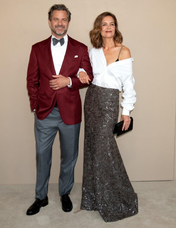 Ma a rubare davvero la scena sono stati loro due. Holmes, in un look firmato Brunello Cucinelli – gonna lunga scintillante e camicia bianca destrutturata con bra a vista – ha incarnato quell’equilibrio perfetto tra eleganza e attitude contemporanea. Jackson, accanto a lei, ha scelto un tuxedo con giacca bordeaux, aggiungendo un twist cromatico a un’estetica black tie impeccabile. E mentre posavano sorridenti, complici, quasi senza sforzo, una cosa era chiara: non è solo una reunion. È un’immagine che riattiva un immaginario collettivo.
