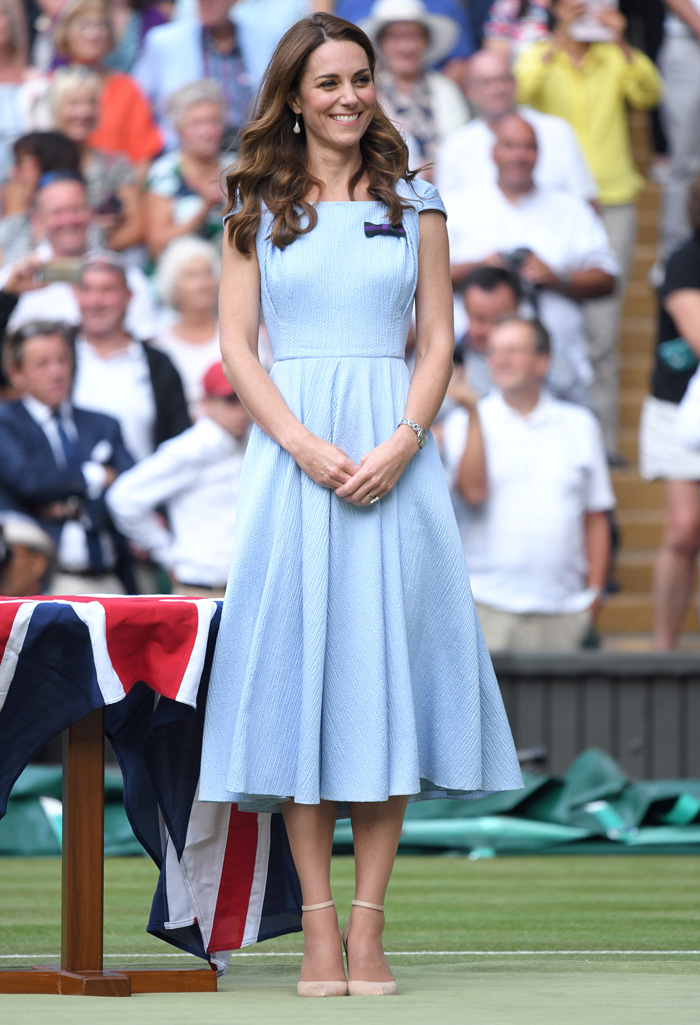 Apparsa per la prima volta nel Royal Box poco dopo il matrimonio con il Principe William, Kate Middleton ha costruito nel tempo un vero e proprio stile da Wimbledon: sobrio ma mai noioso, british ma internazionale, royal ma perfettamente contemporaneo. Tra i brand più ricorrenti ci sono Alexander McQueen, Jenny Packham, Emilia Wickstead, Dolce & Gabbana, Self-Portrait, Ralph Lauren e, più recentemente, Safiyaa. I suoi outfit hanno spesso incluso dettagli simbolici, come il pin viola-verde del club, la borsa My Sicily firmata D&G o l’orologio Cartier Ballon Bleu donatole da William, portato con regolarità negli anni.