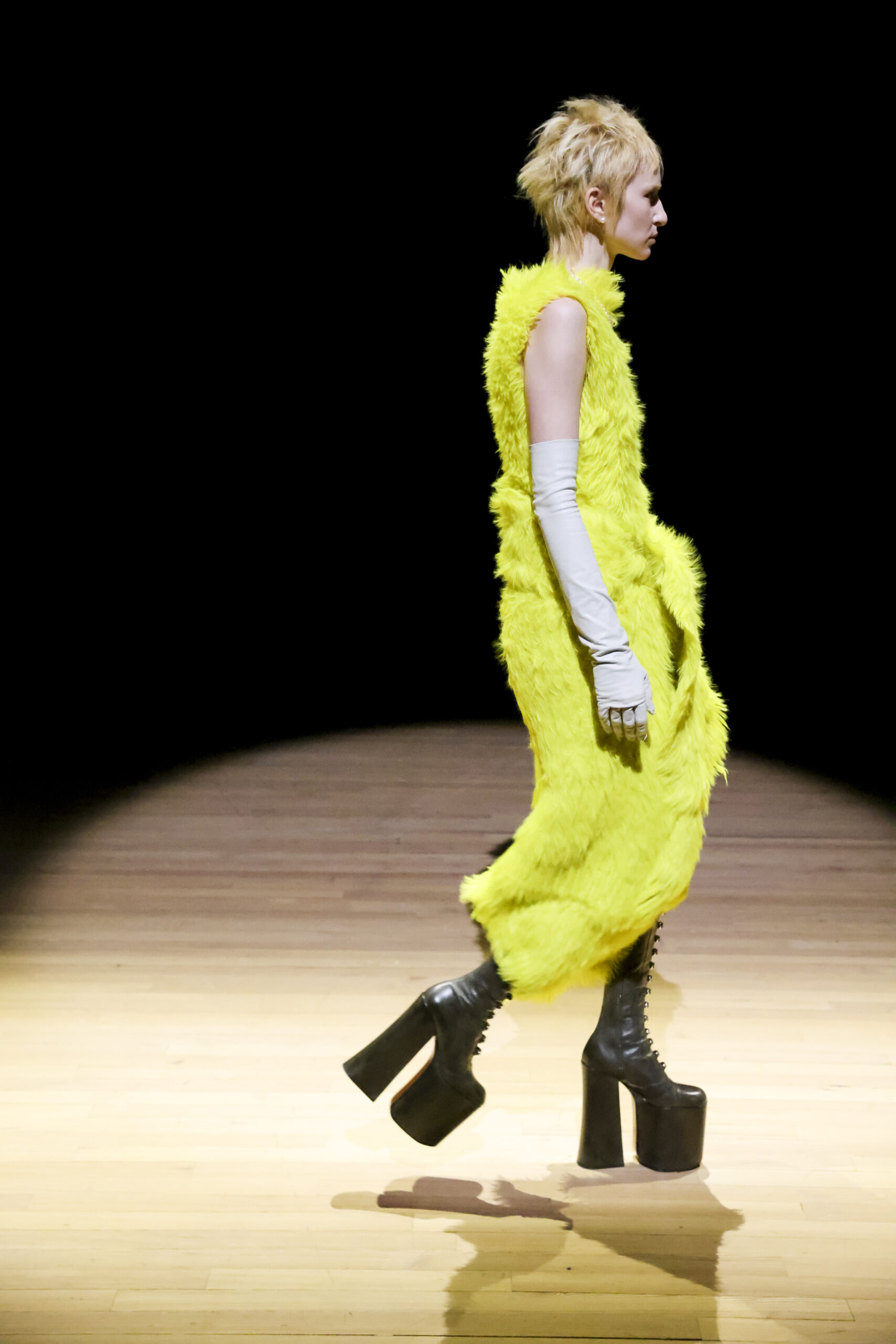 Questa sfilata di Marc Jacobs – che ha anticipato di una settimana l’inizio ufficiale della New York Fashion Week – ha ancora una volta dimostrato quanto questo designer sia un vorace consumatore di moda, arte e musica, oltre che amante di una ricerca senza limiti. Così sfilano in passerella look dalle reference speciali da Balenciaga a Rick Owens, passando per l’universo firmato da Miuccia Prada, sino a Yves Saint Laurent e Rei Kawakubo.