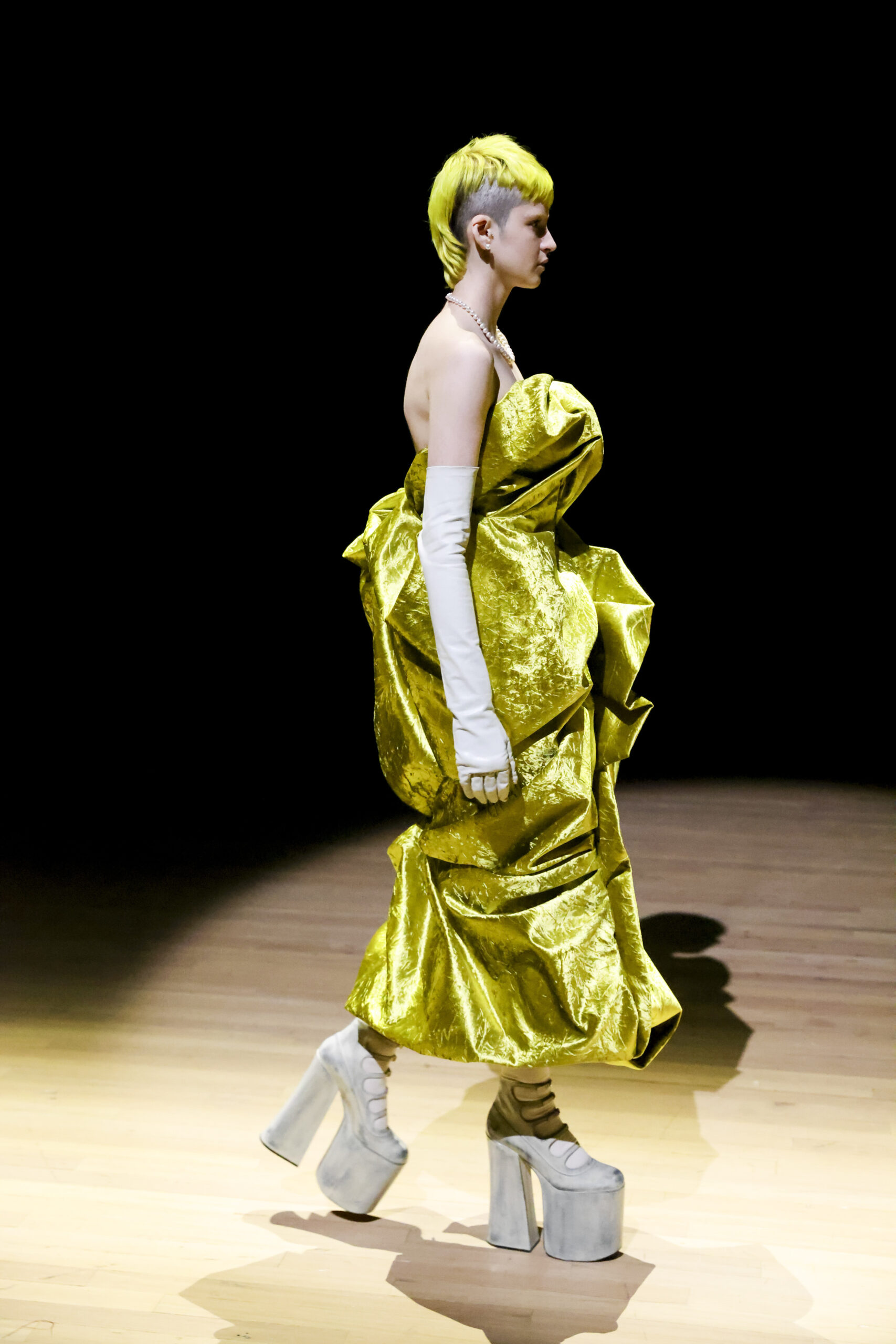 Nell’oscurità di una location come Park Avenue Armory, un occhio di bue ha illuminato il fascino dei look incredibili di Marc Jacobs per la Primavera/Estate 2023. Moltissime le celebrities e le personalità del fashion system che hanno preso parte alla sfilata, da Emily Ratajkowski a Ashley Graham. Di sicuro non Lourdes Leon Ciccone, en effet la figlia di Madonna non ha avuto accesso all’evento perché sembrerebbe essere arrivata a sfilata già cominciata. Ma tornando allo show, il tutto ha avuto luogo nel più iconico e suggestivo dei silenzi. La sfilata Heroes – legata all’omonimo brano di David Bowie – ha omaggiato l’estro creativo della visionaria recentemente scomparsa Vivienne Westwood. Difatti, tra le note della sfilata è stata inserita una tra le più celebri citazioni della designer britannica:
