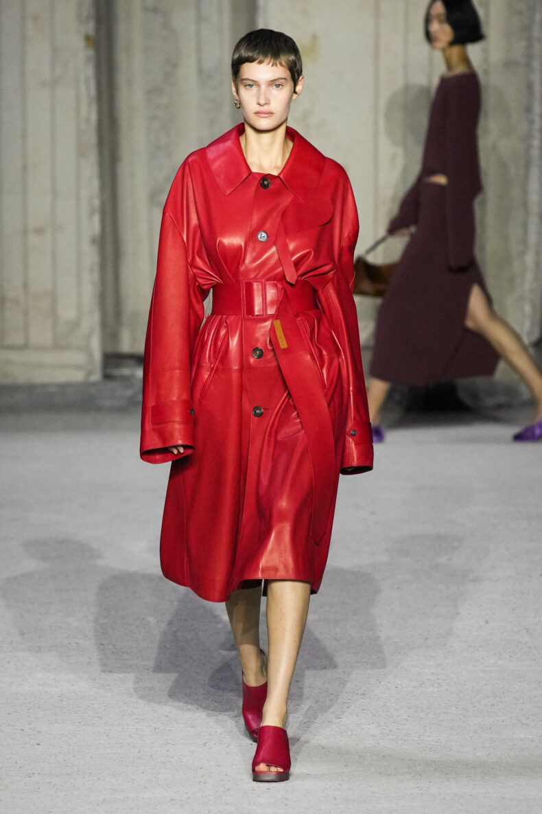 Questa collezione, estremamente attuale e al passo con i tempi, è in grado di vestire la quotidianità. Le ballerine di raso con l’emblematico gommino diventano un vero e proprio must-have, come il trench rosso in pelle e tutti gli abiti, apparentemente semplici ma dall’eleganza senza tempo.