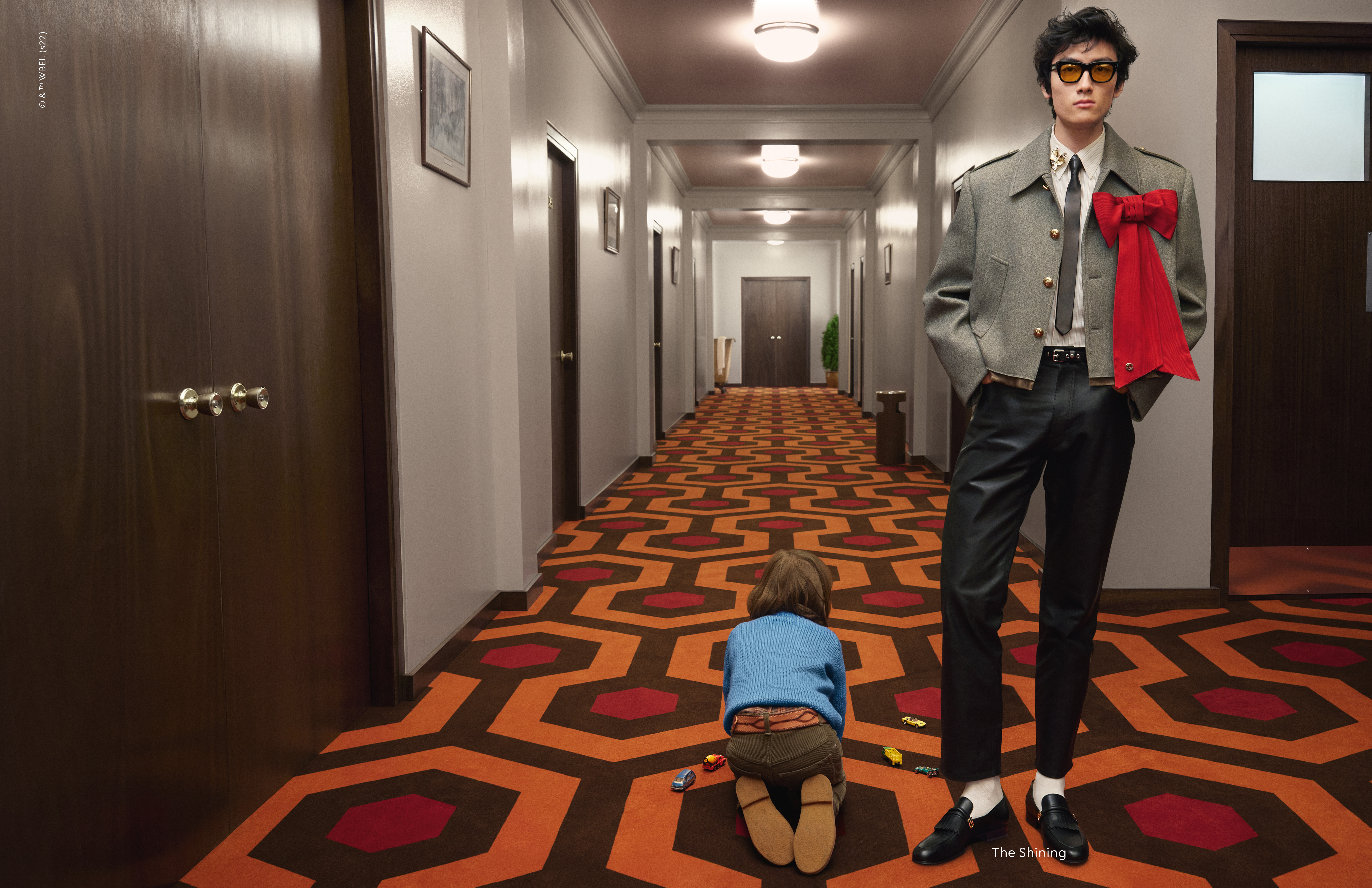 Appropriandosi dell’arte di un cineasta modello come Kubrick, Alessandro Michele rielabora la visione creativa del regista statunitense e la immerge nella sua gucciness vibe. Moltissimi sono i riferimenti ai film di Stanley Kubrick, da Barry Lyndon a Shining, Eyes Winelivery Shut, sino alle scarpe Nineties che compaiono in alcun fotogrammi di Arancia Meccanica. Non è sempre facile comprendere l’immaginario di Alessandro Michele, ed anche in questa campagna, le sue complesse trasfigurazioni sul piano del significato si trasformano in accessi immediati sul piano dell’esperienza.