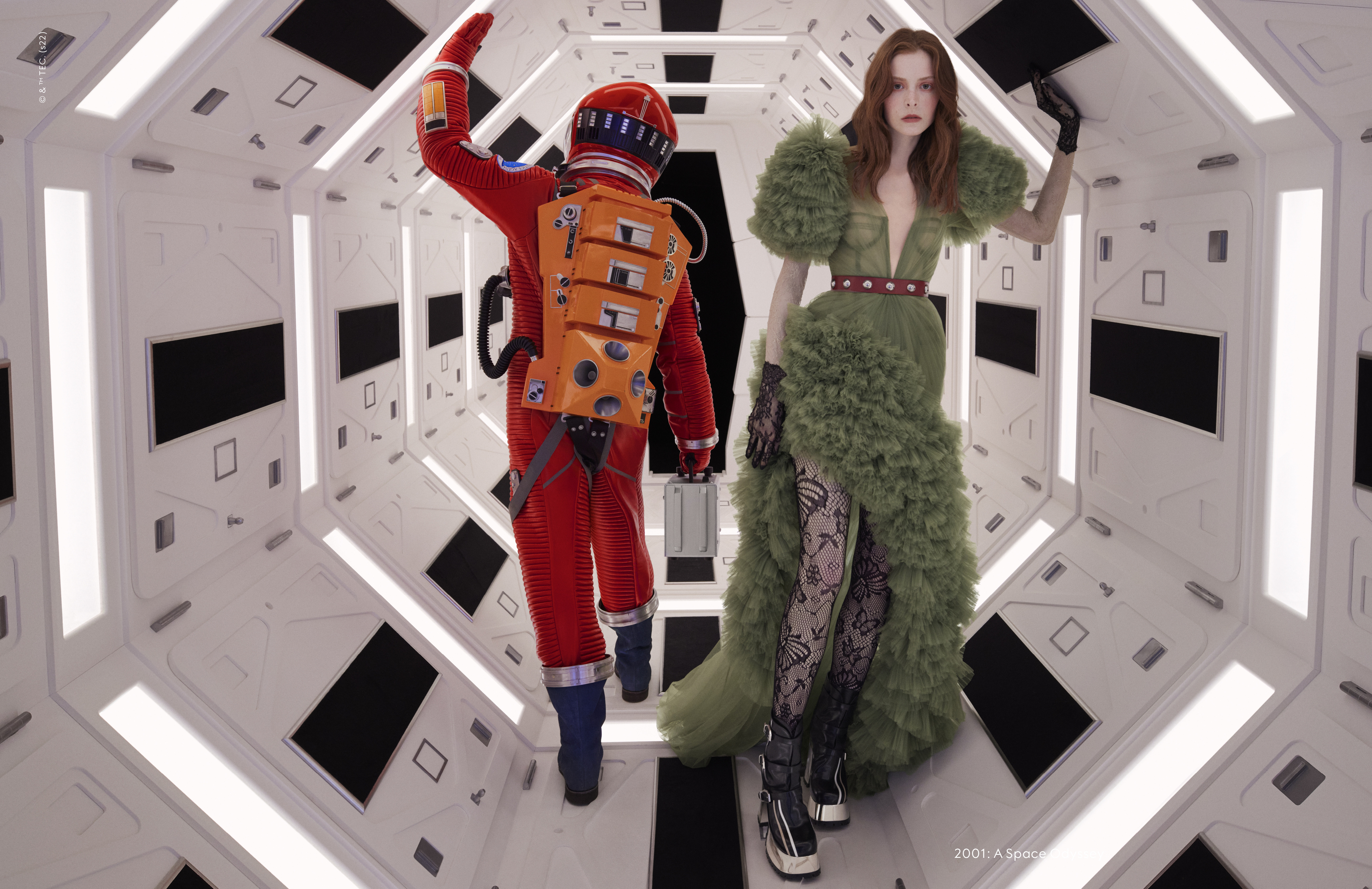 Non a caso il designer, guida creativa della casa di moda fondata a Firenze nel 1921, immagina le sue collezioni come se fossero delle pellicole cinematografiche. I suoi abiti sono difatti pieni di contenuto, tra passato, presente e futuro, ma soprattutto in grado di poter raccontare svariate e differenti storie. Con nuova campagna pubblicitaria della collezione Exquisite, Gucci e Alessandro Michele omaggiano il cinema e il maestro della regia Stanley Kubrick, vincitore nel 1969 del Premio Oscar per gli effetti speciali del suo film Odissea nello spazio.