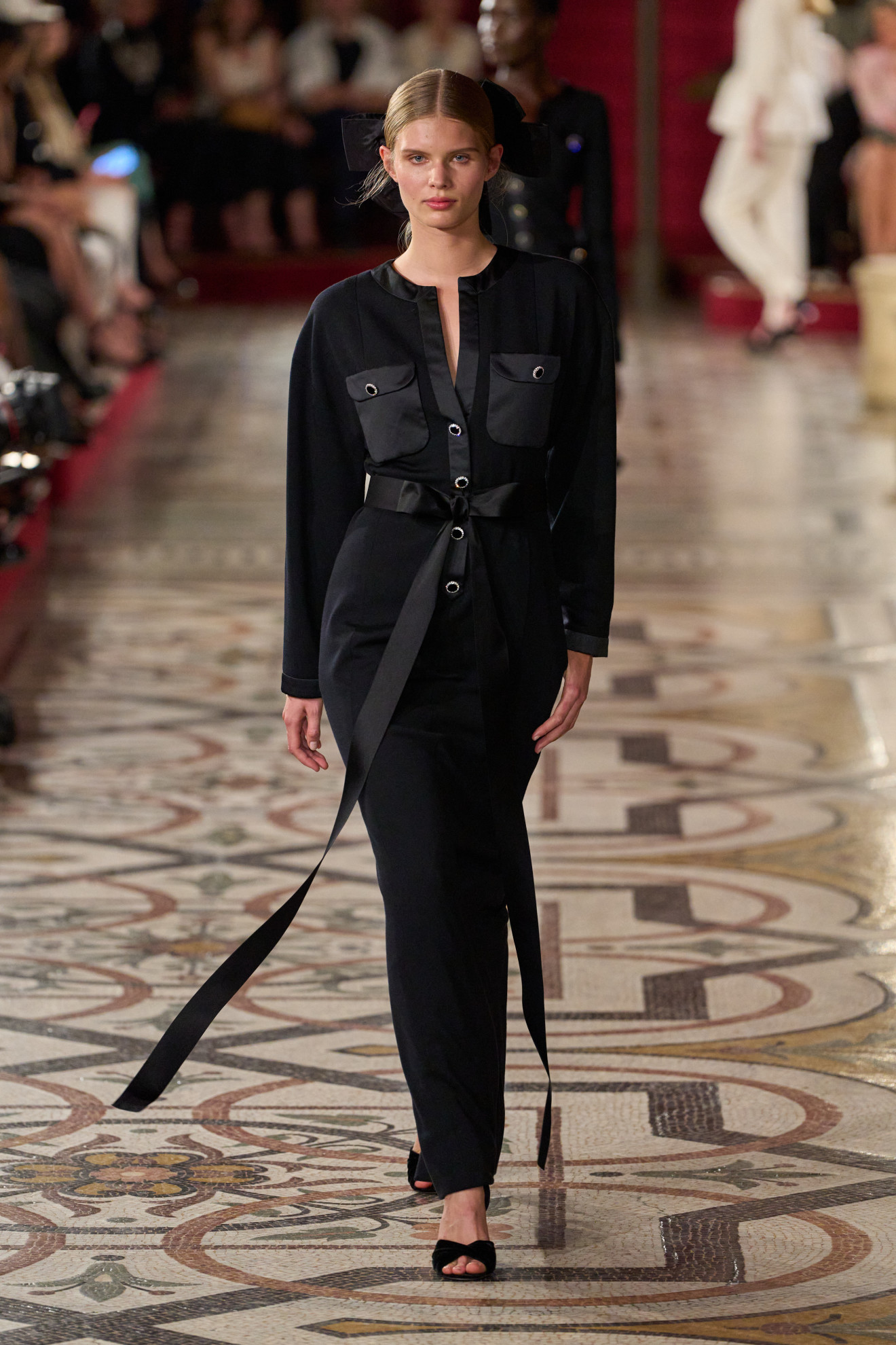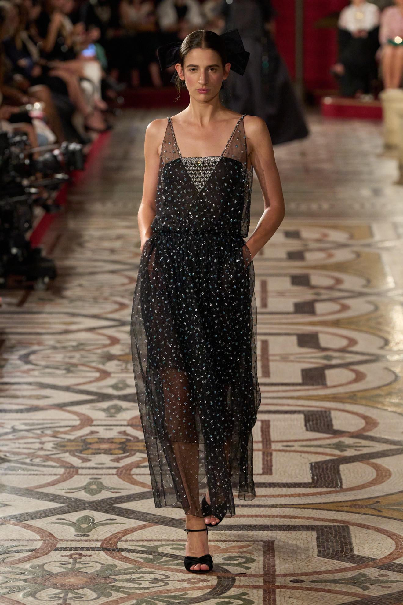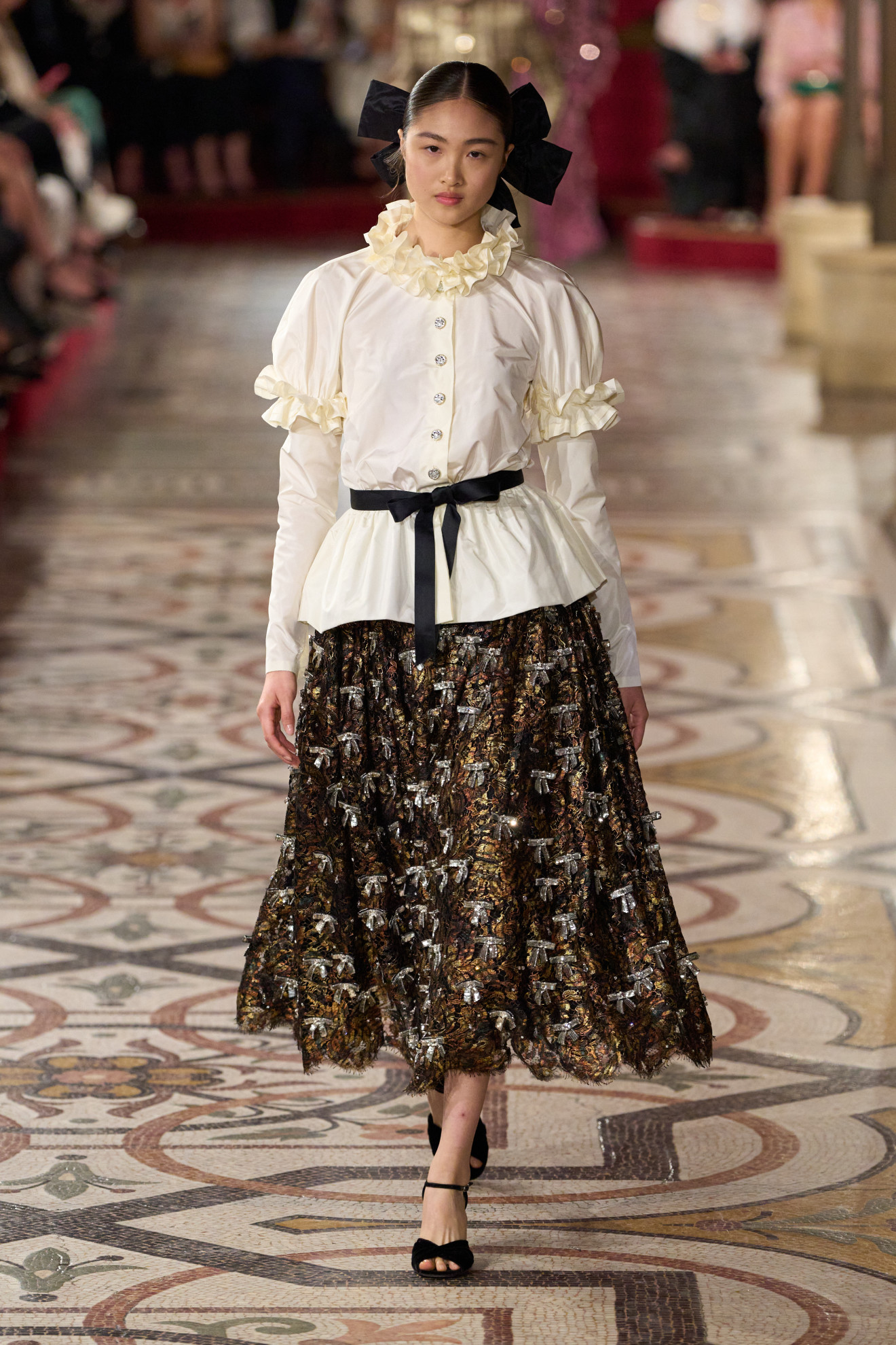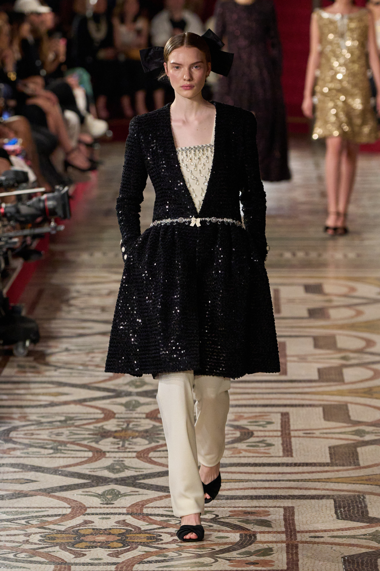 La palette cromatica, invece, ha spaziato dal nero all’oro, passando per l’argento e il fucsia, richiamando l’atmosfera delle soirée più incantevoli. In questo scenario, la storica casa di moda francese ha continuato a celebrare la sua profonda connessione con l’Opéra National de Paris, di cui è stata grande sostenitrice nel corso degli anni.