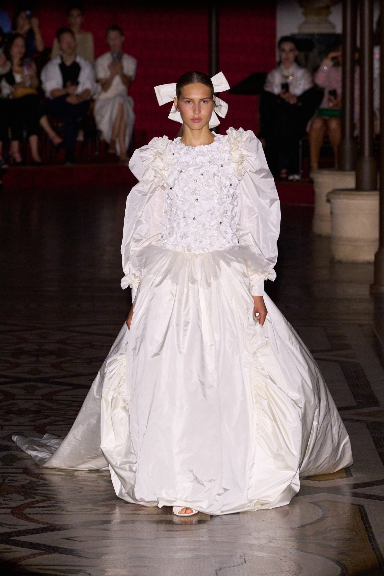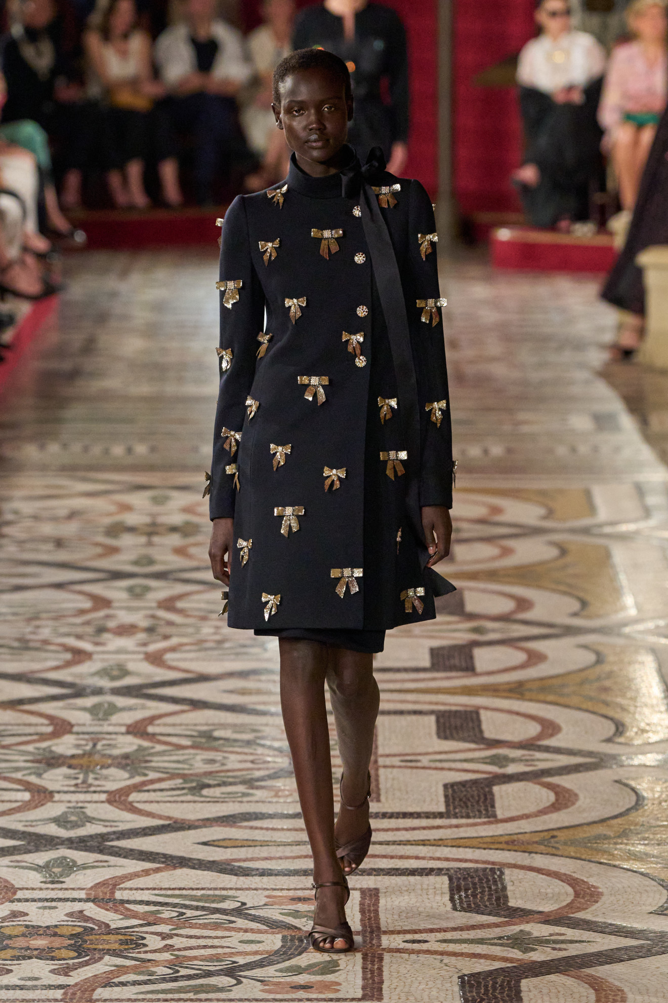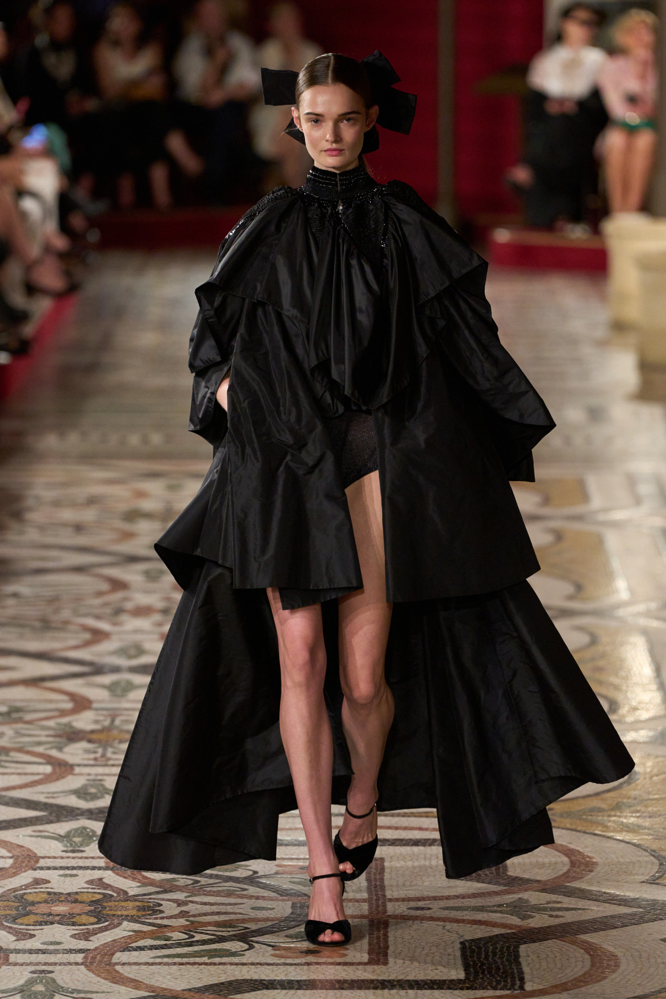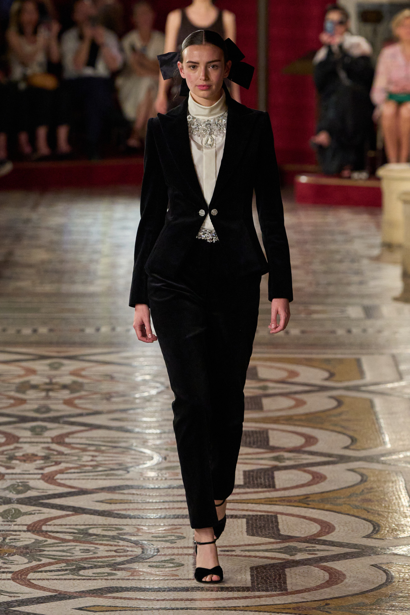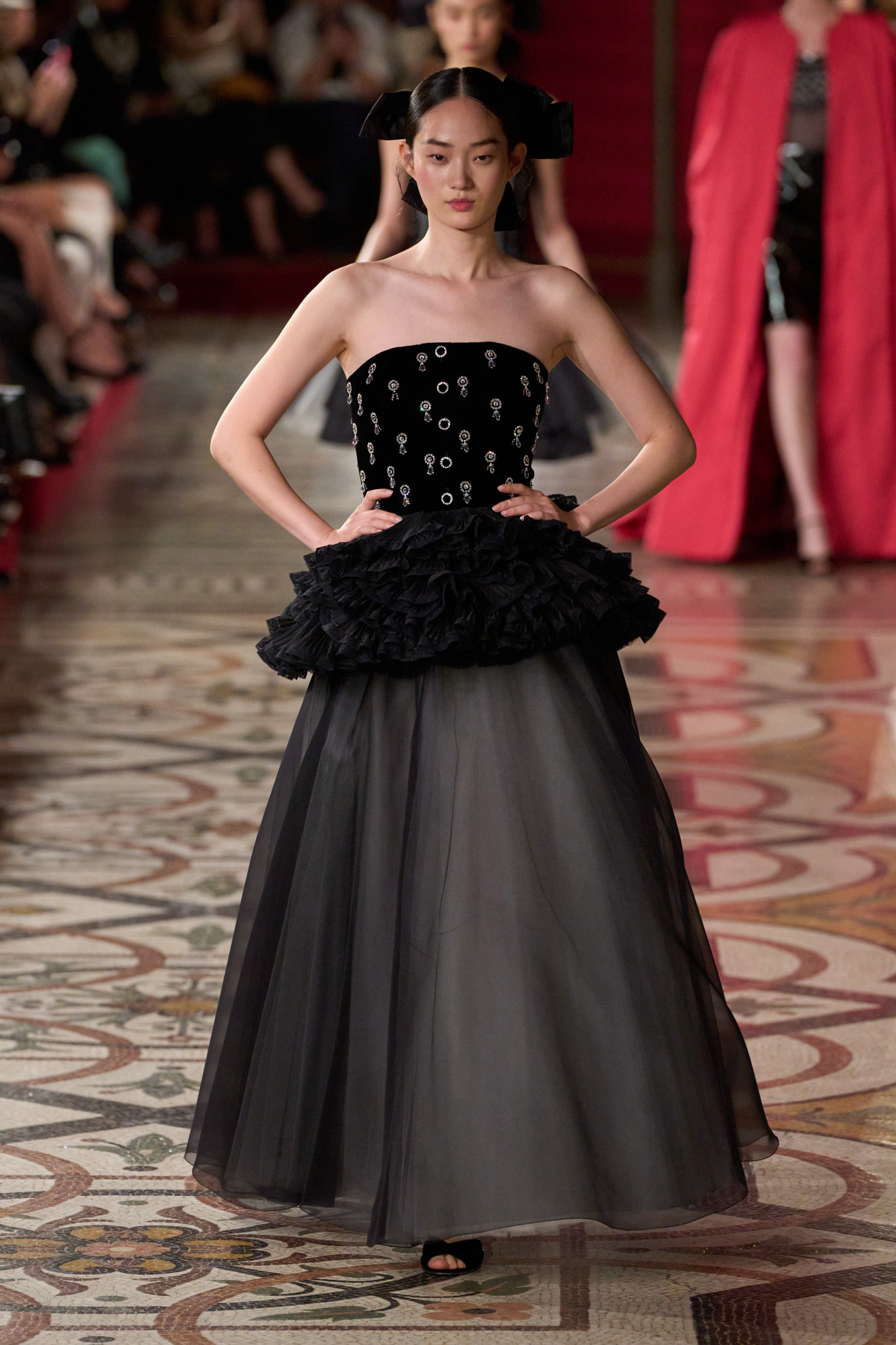 La palette cromatica, invece, ha spaziato dal nero all’oro, passando per l’argento e il fucsia, richiamando l’atmosfera delle soirée più incantevoli. In questo scenario, la storica casa di moda francese ha continuato a celebrare la sua profonda connessione con l’Opéra National de Paris, di cui è stata grande sostenitrice nel corso degli anni.