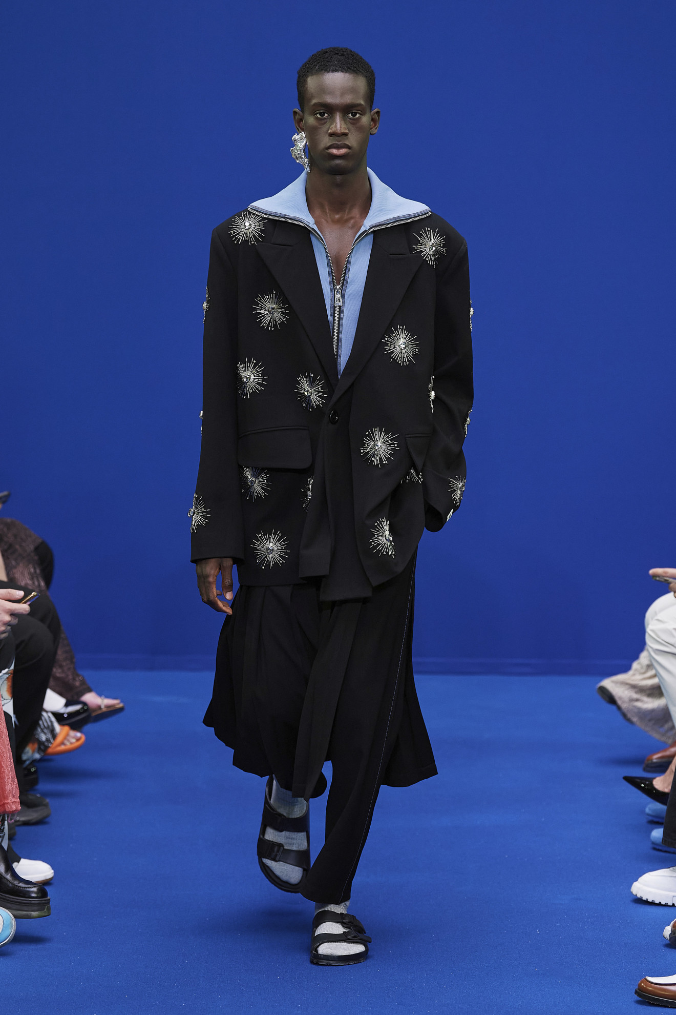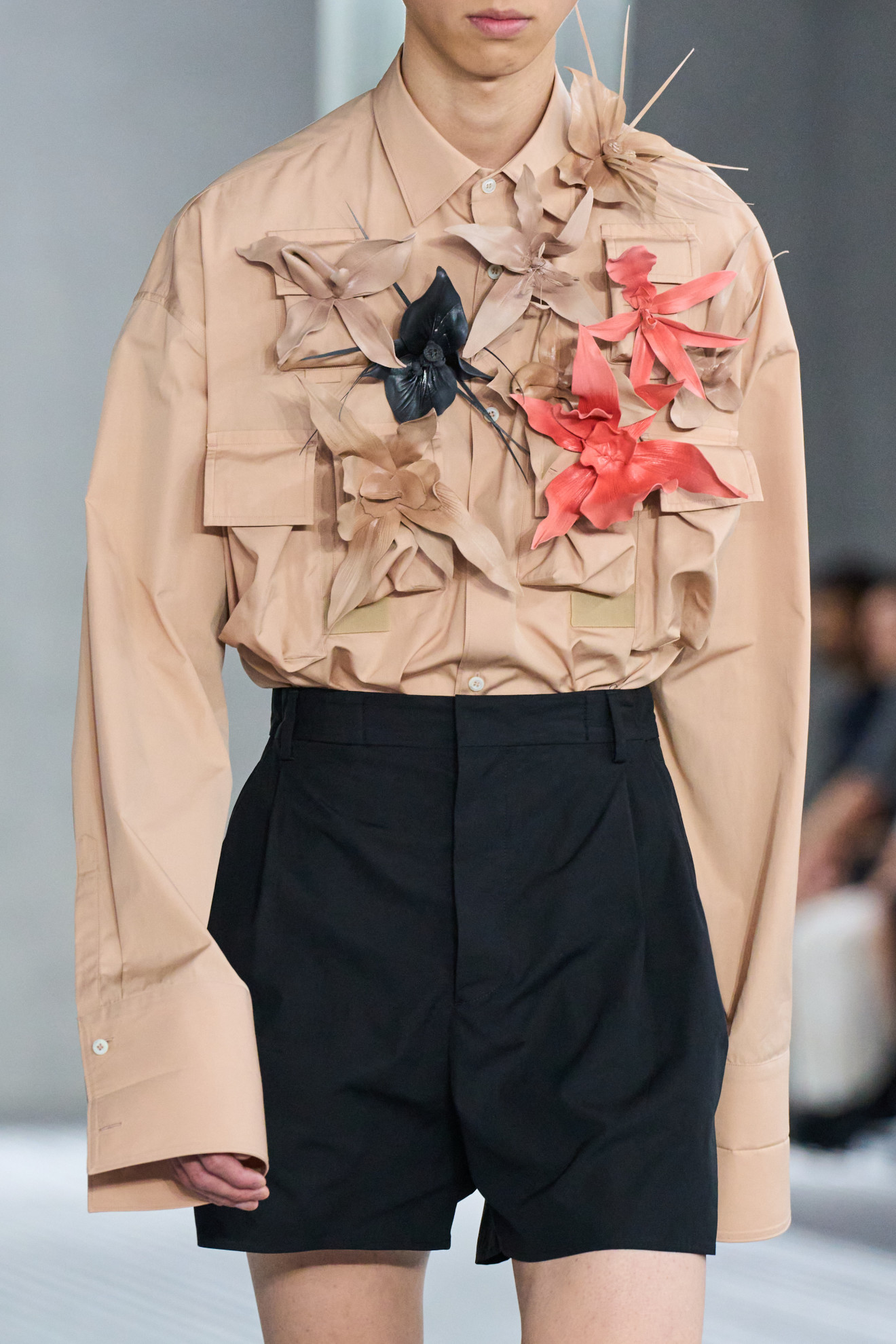 Uno dei temi dominanti di questa settimana della moda sono senz’altro le trasparenze. Tessuti leggeri e soffici, lavorazioni sartoriali impeccabili e dettagli raffinati in grado di creare veri e propri giochi velati. La silhouette maschile svela eleganza un lato sensuale che ci lascia senza parole. Crop top sbarazzini e provocanti si fanno strada, dimostrando che la moda non ha limiti di genere e che l’uomo moderno è pronto a sperimentare. Ma non è tutto: i fiori sembrano in piena fioritura anche nel guardaroba maschile. Applicazioni floreali audaci e colorate si alternano su giacche, camicie e pantaloni, creando un’esplosione di vitalità primaverile. Poi, alcuni look sembrano quasi ispirarsi ad un rivisitato guardaroba dell’iconico Lady Oscar, trasportandoci in un mondo fiabesco in cui romanticismo e innovazione si incontrano.