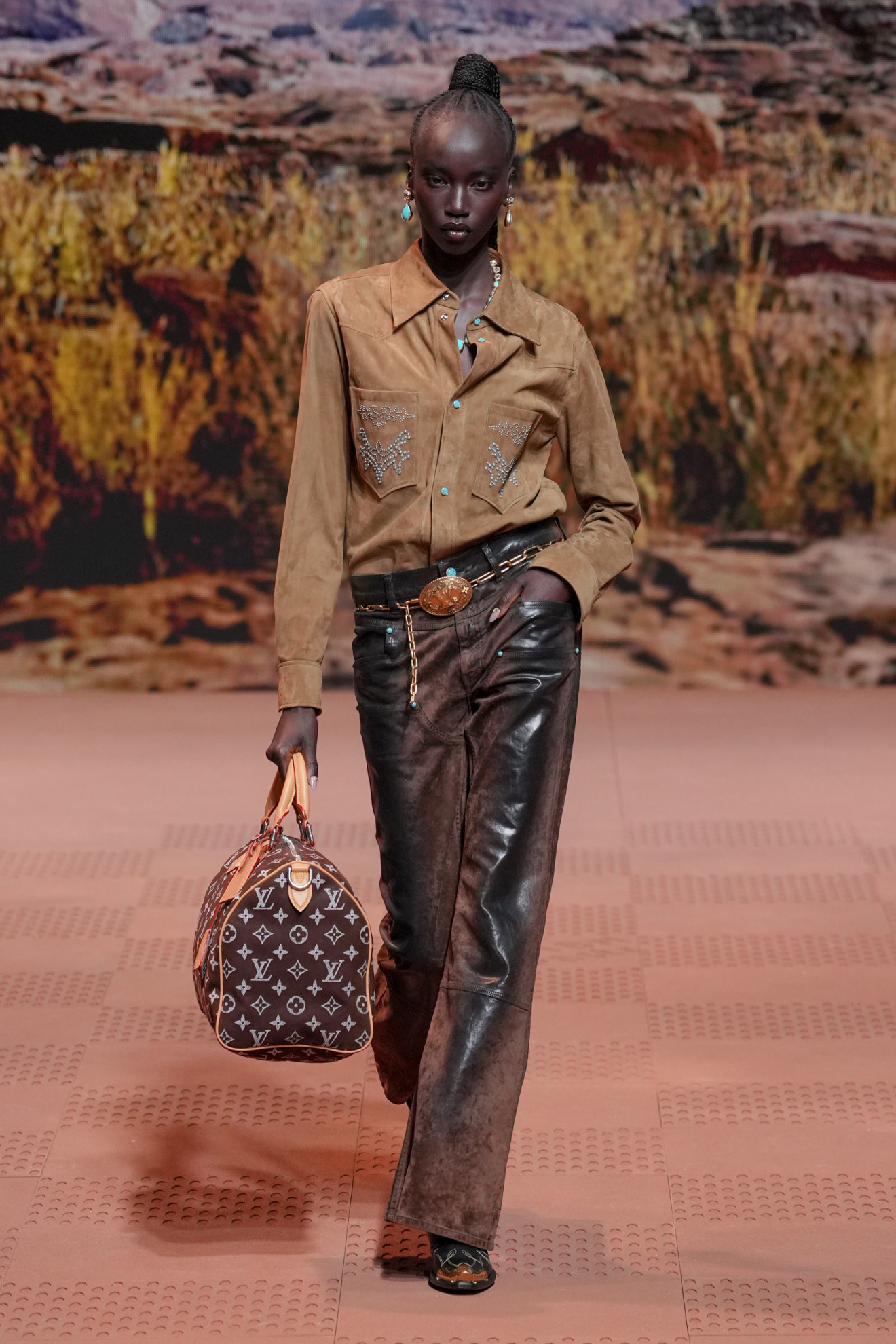 Ma non finisce qui, Vuitton non smette di stupire. En effet, non sono mancate le collaborazioni. Da quella con gli artisti delle nazioni Dakota e Lakota, passando per un’inaspettata partnership con l’iconico brand Timberland nella creazione di scarpe. Tra gli accessori, invece, diverse borse esclusive – tra cui una creazione di Pharrell Williams – hanno impreziosito il tutto.