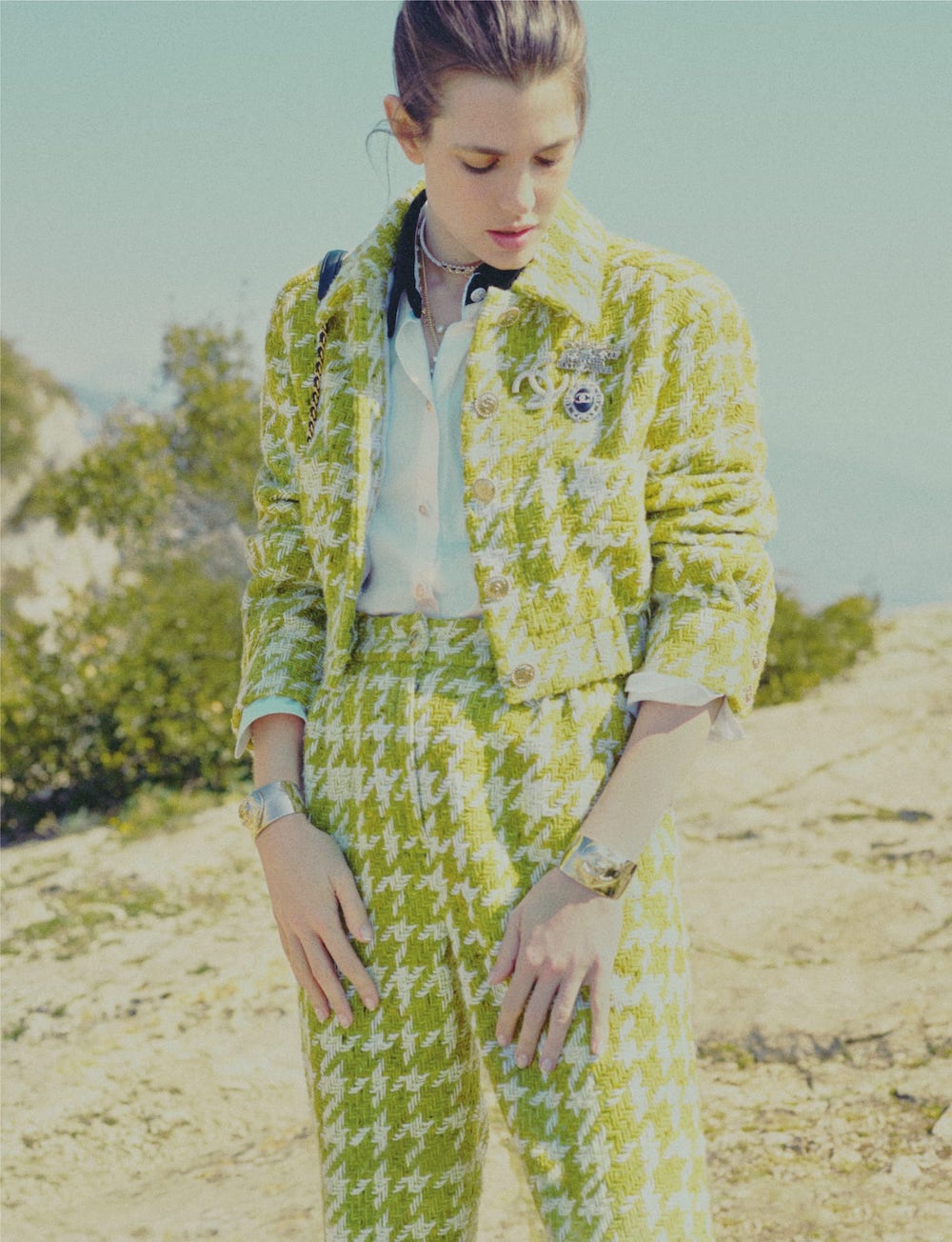 In occasione di questa campagna Charlotte Casiraghi è stata immortalata da Dorothée Smith, una giovane fotografa francese, con indosso alcuni tra i pezzi più iconici dell’immaginario Chanel. Dalla giacca in denim trapuntata, alle cinte, sino al classico tweed reinterpretato nella sua versione pied-de-poule bianco e verde lime. Questa collezione ben esprime anche lo stile di Charlotte Casiraghi, ne è la conferma la naturalezza di ogni scatto.