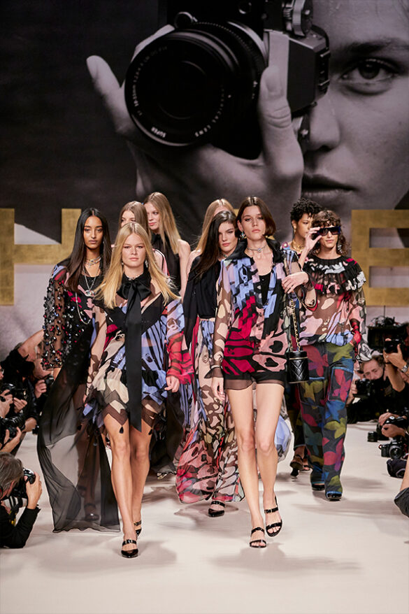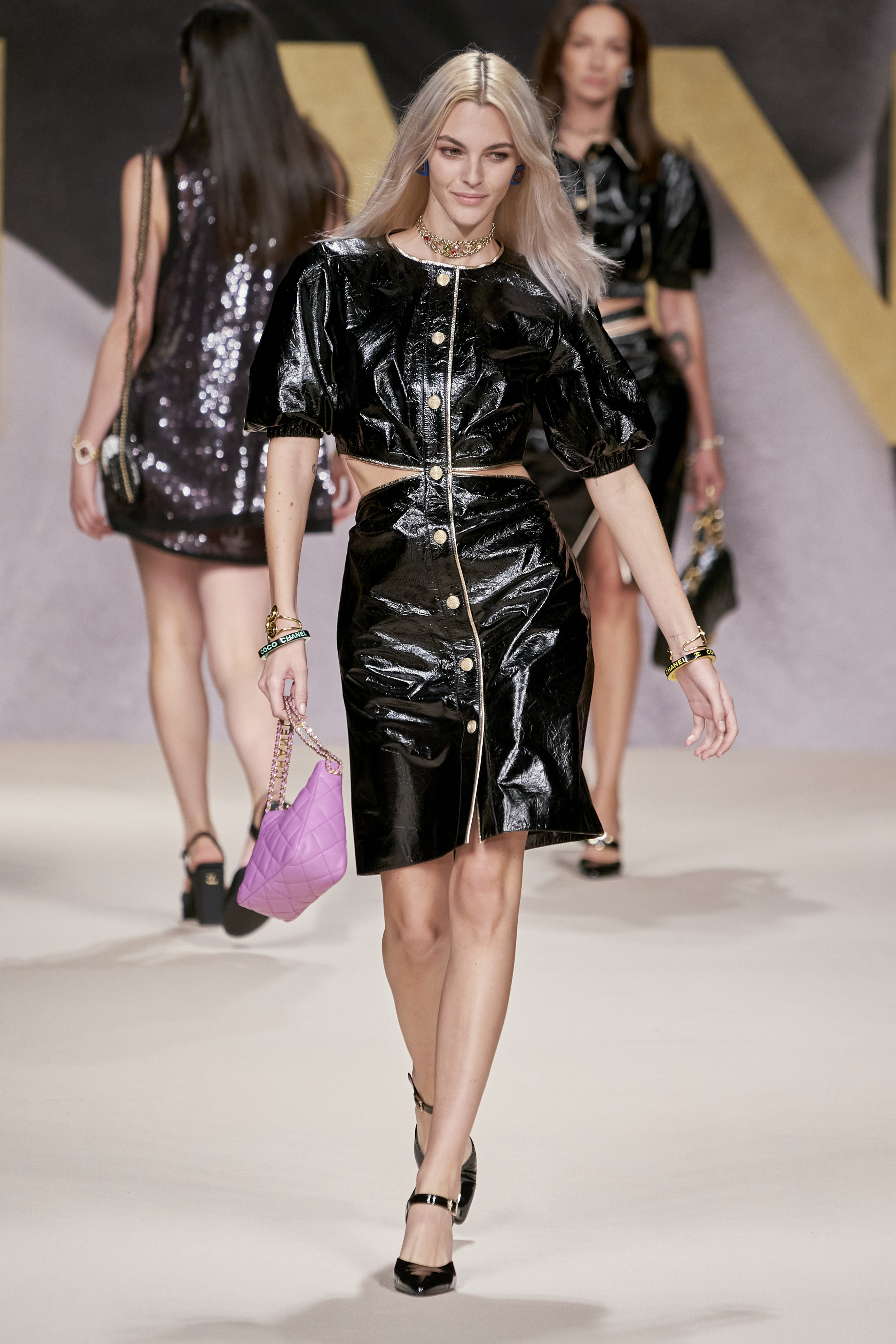 Chanel si trasferisce a Saint Tropez per la SS 22. Bianco e nero sono i colori che più tipicamente rimandano alla maison di Coco e sono anche i protagonisti indiscussi di questa ultima collezione, più marittima che mai. Virginie Viard reinterpreta i costumi anni ’80 e li rende must-have. Slip a vita alta si abbinano a tank top da indossare con fili di catene da intrecciare al collo così come in vita. Parei trasparenti completano i look fatti di costumi interi iper sgambati e ballerine bassissime. A questi si aggiungono completi coord in vernice o in maglia, dall’iconico logo con la doppia C.