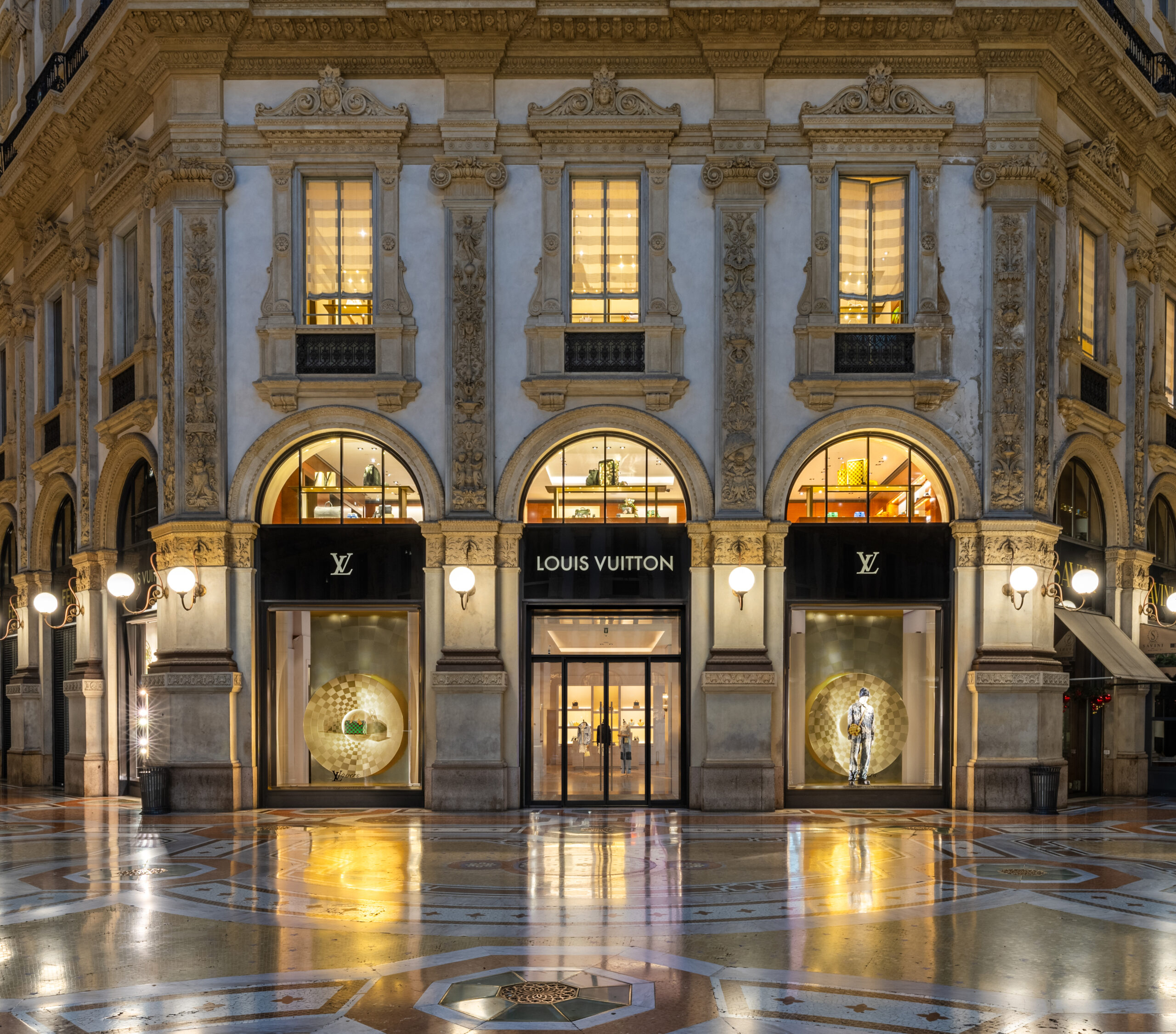 GLI STORE MILANESI DI LOUIS VUITTON IN GALLERIA VITTORIO EMANUELE II, AL GARAGE TRAVERSI DI VIA BAGUTTA E IN RINASCENTE