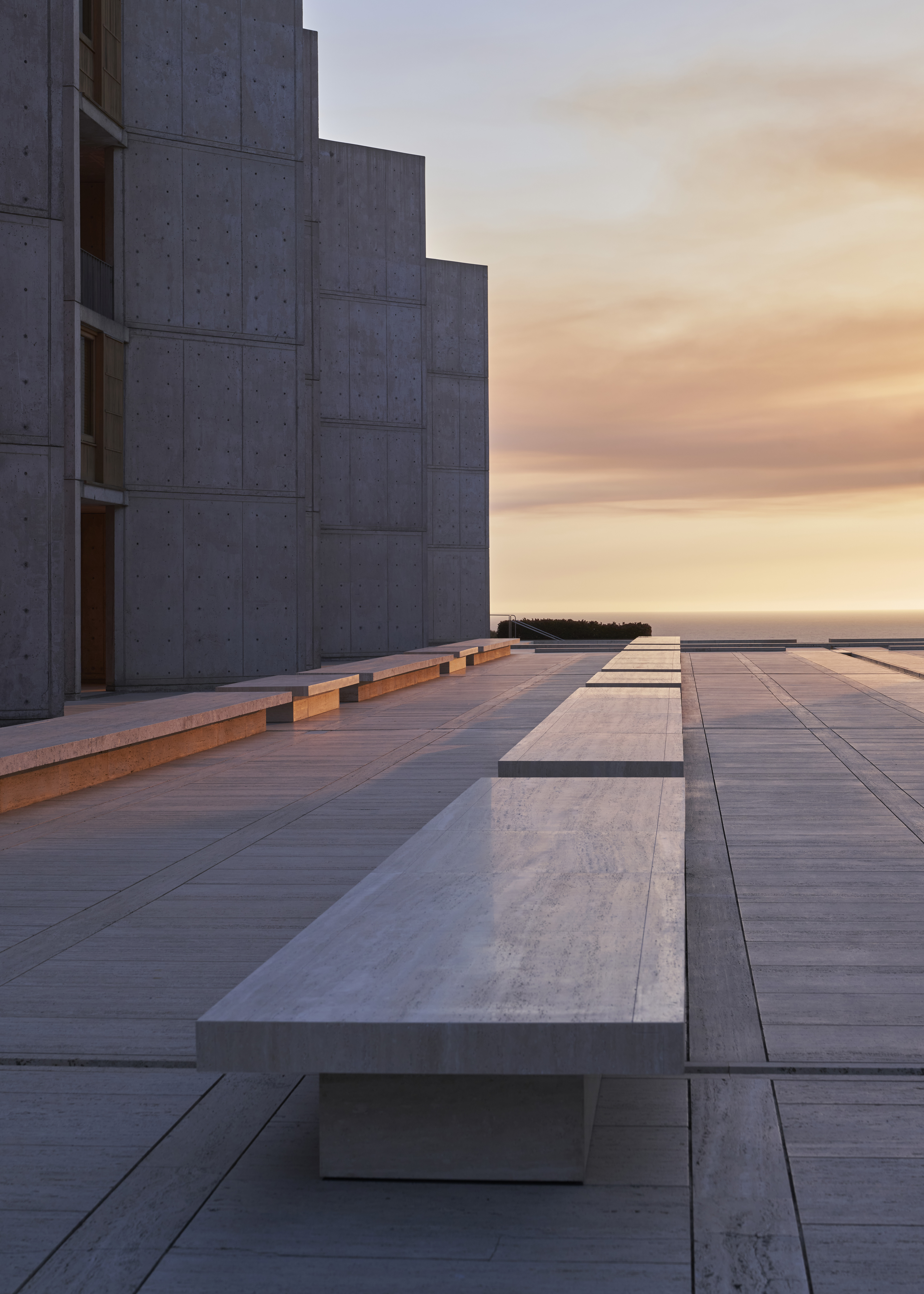 In un luogo di ricerca biomedica, le domande sull’umanità sono al centro delle menti degli studiosi più illustri del mondo. L’architetto Louis Khan ha posto il sole al centro del Salk Institute, un edificio brutalista del 1965 progettato come monastero in cemento per anime illuminate. Proprio durante il tramonto il sole viene incorniciato alla perfezione tra gli assi della fontana centrale. Qui la collezione LV Cruise 2023 ha preso vita, mentre i cambiamenti climatici impongono un nuovo ritmo stilistico.
