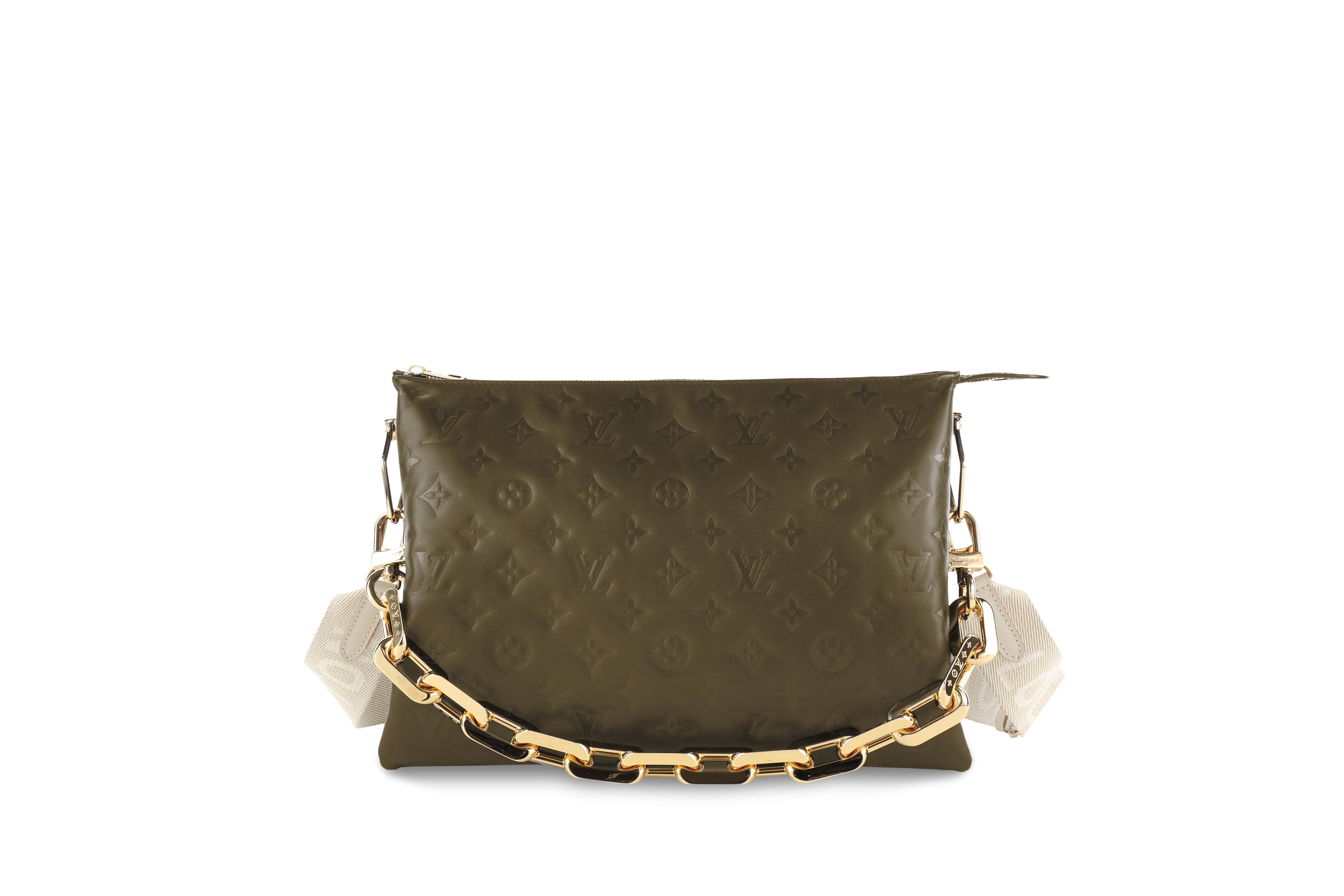 Versatile, grintosa e già iconica, la Coussin è un invito a sfoggiare la propria personalità alternando sensazioni e attitudini. Comoda e duttile, la nuova it bag di Louis Vuitton, come avrete visto da alcune delle fashion icon più cool, è realizzata in morbida pelle di agnello a scomparti per contenere tutti i propri effetti personali, adeguandosi alla vita e alle esigenze di chi vive il mondo contemporaneo. L’effetto vaporoso, unito ai volumi generosi e estremamente soft rendono la Coussin un compagno confortante, un alleato avvolgente e rassicurante. A darle un tocco inconfondibilmente grintoso sono la grossa catena in metallo e la tracolla in tessuto con logo stampato, decisamente più bold se messe a contrasto con l’effetto pillow della borsa.