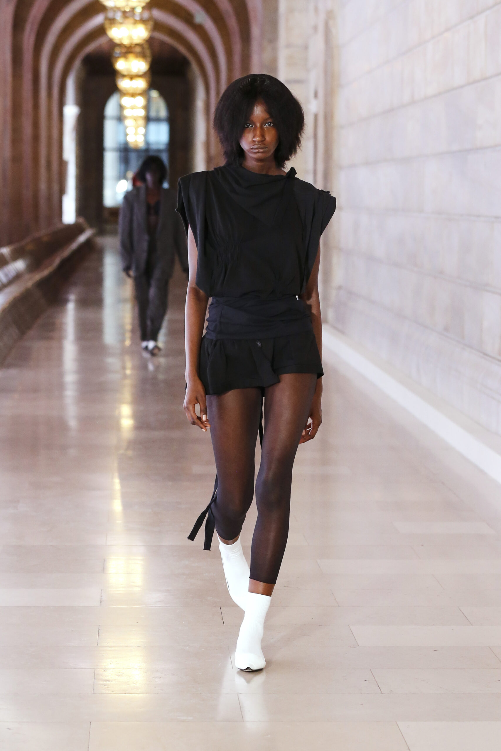 Tra tagli di capelli cyberpunk, miniabiti, giacche oversize e abiti sartoriali, lo spettacolo è stato accompagnato da note scritte da Chat GPT di Open AI, avvolgendo il pubblico quasi come un magnetico incantesimo da inizio a fine.