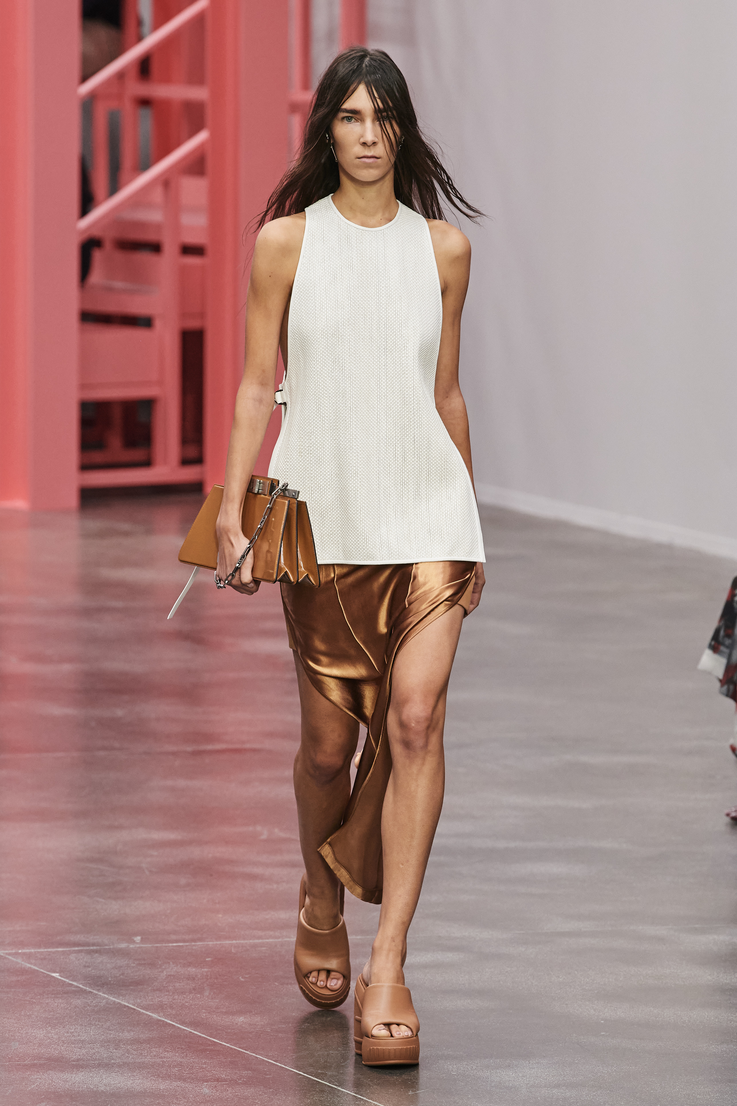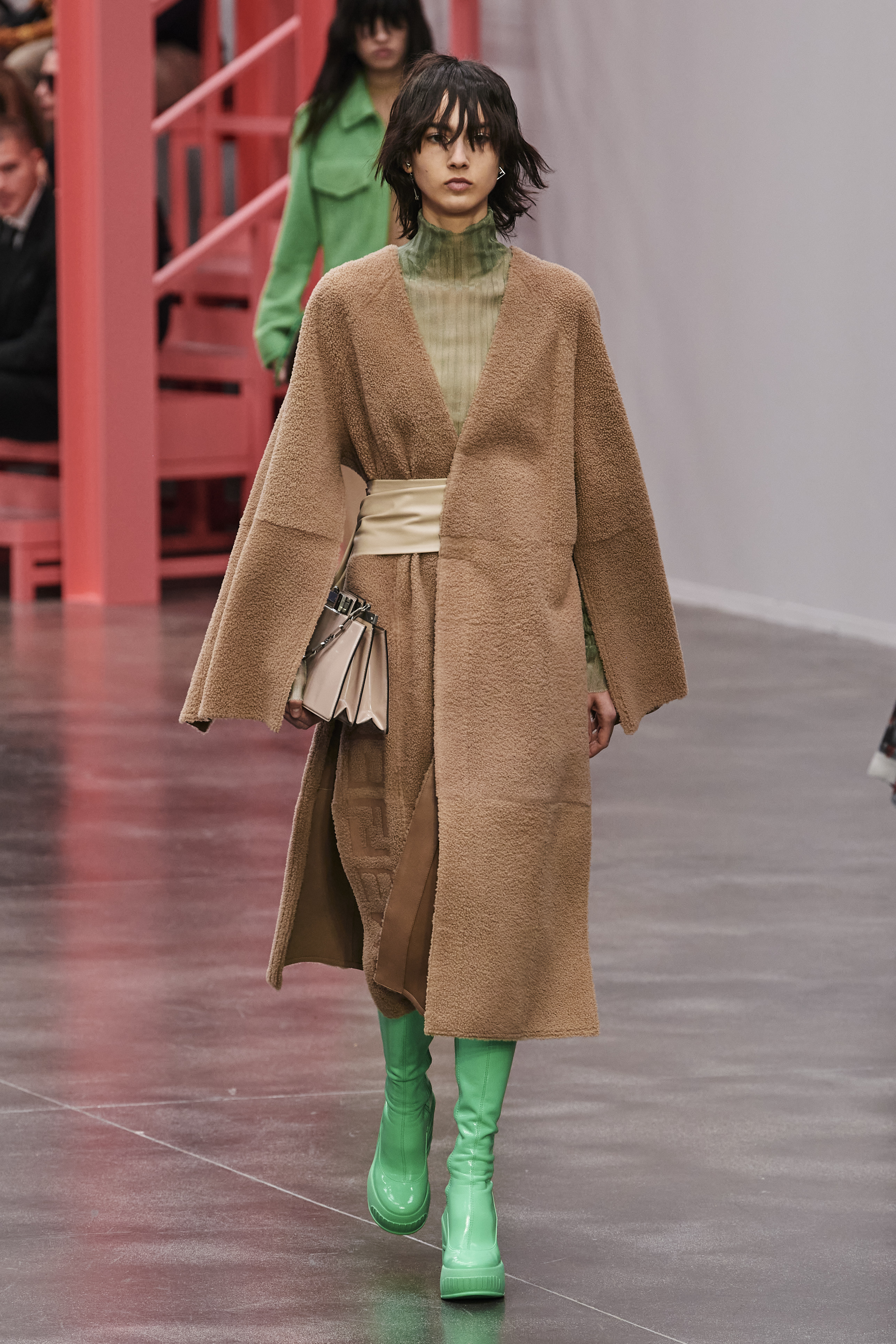 Moltissimi sono i capi dell’ultima sfilata di Fendi ad essere realizzati con pellami tagliati a laser, poi le insostituibili trasparenze d’organza. Tra i pezzi più bramati dalle fashion victim troviamo i pantaloni cargo realizzati con un tessuto tecnico setoso, i dettagli in shearling, poi le comodissime maglie a costine. Fendi sembra ancora una volta volerci riportare alla sua più autentica identità. Ad avere un ruolo centrale sono anche gli accessori, dalla Fendi First in versione miniatura sino alla Peekaboo.