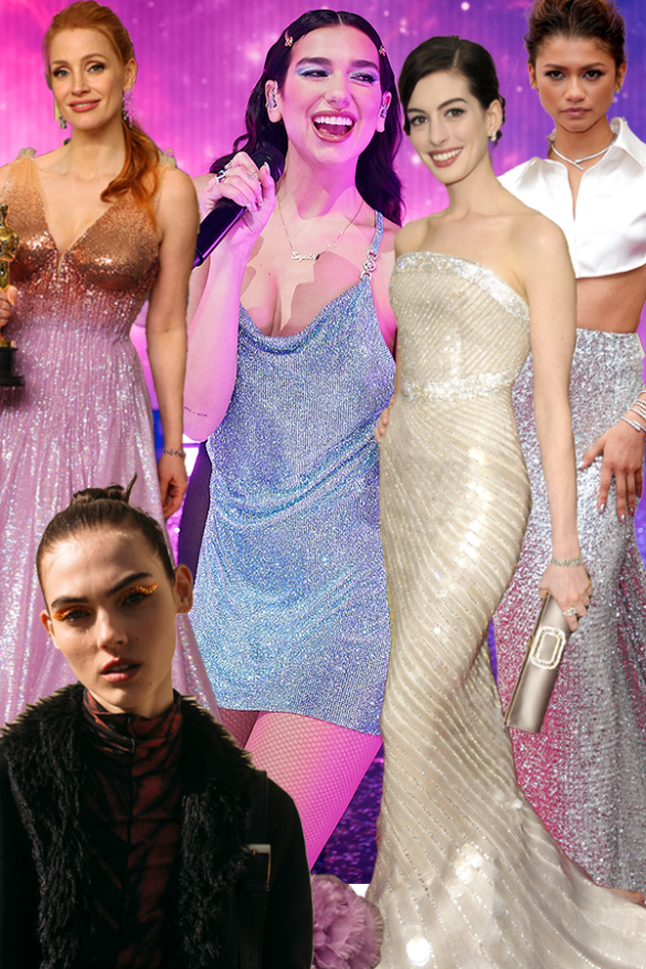 Non solo lucentezza e textures eccessive, c’è anche chi ha un approccio più minimial per interpretare questo trend. Abbiamo parlato di colori e tessuti, le silhouette invece sono senz’altro aderenti e spesso ad impreziosire il look sono gli immancabili corsetti arricchiti da applicazioni come perle e cristalli.