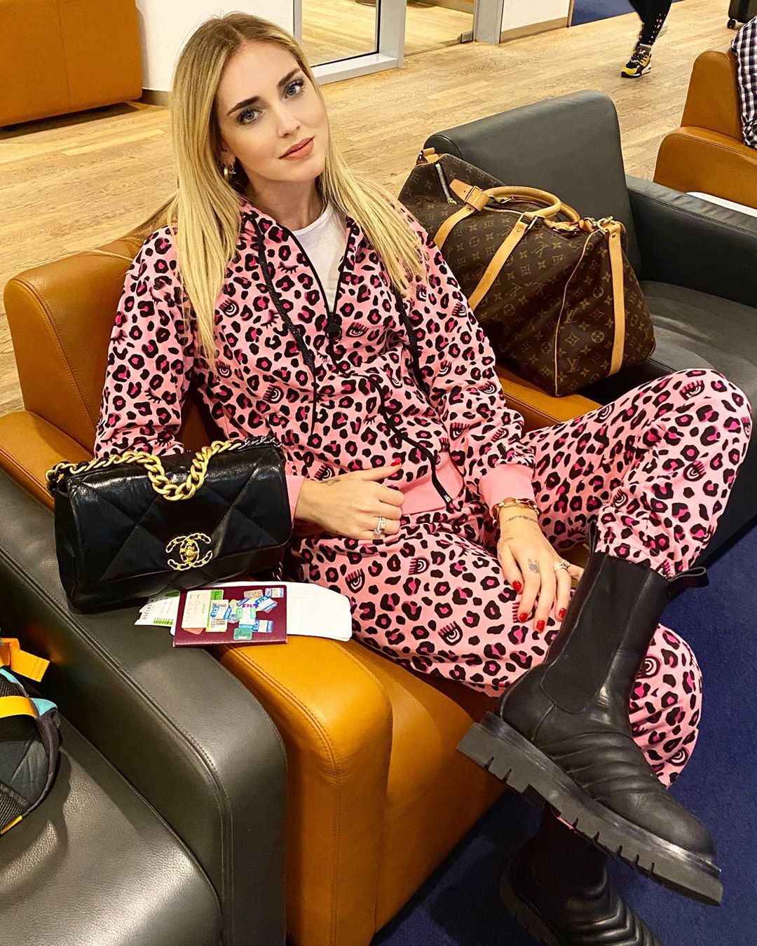 La nostra musa Chiara Ferragni è una grande fan dei combat boots, al punto che li indossa anche con i joggers rendendoli incredibilmente cool. In questo scatto indossa una tuta leopardata rosa Chiara Ferragni Collection con combat boots Bottega Veneta
