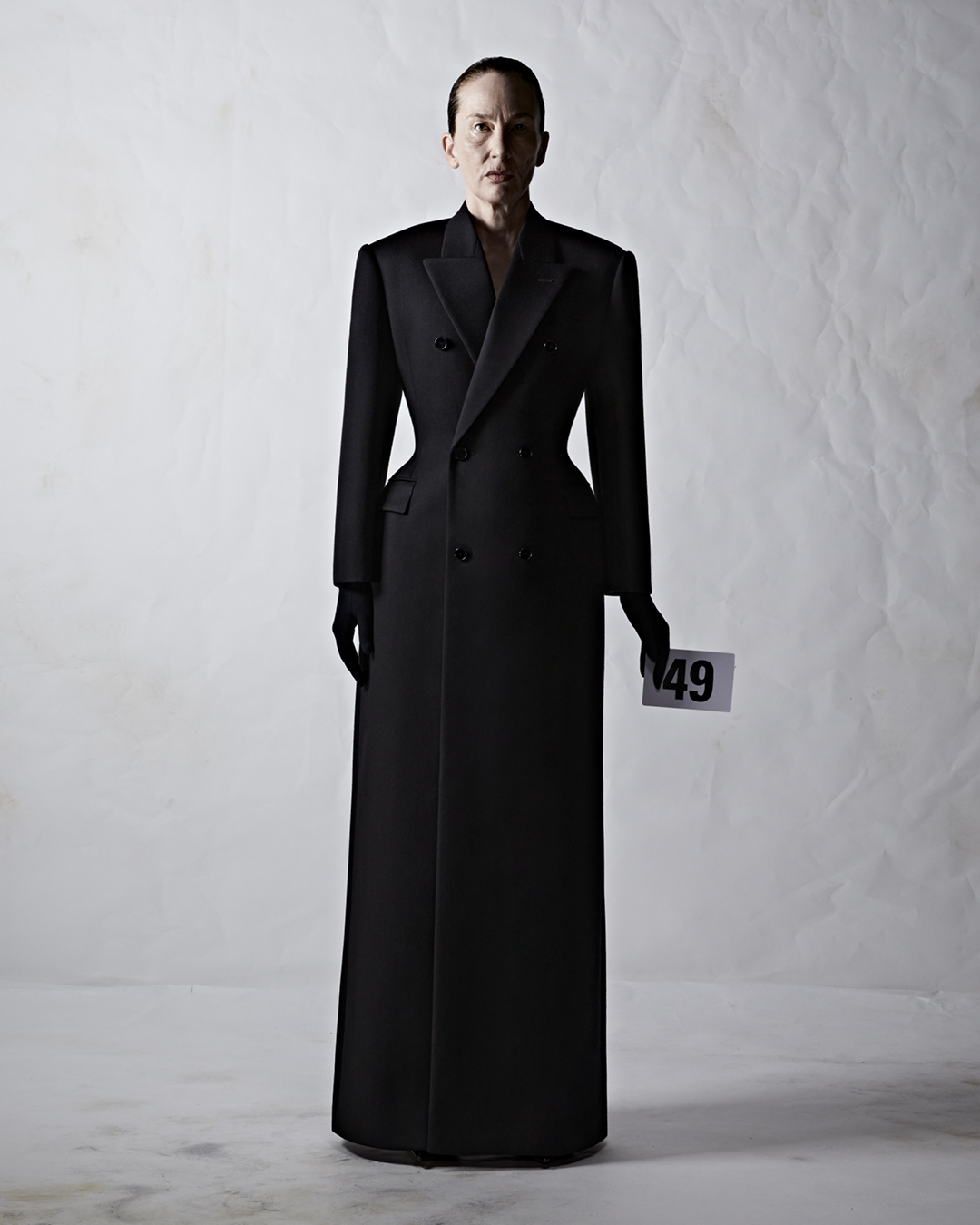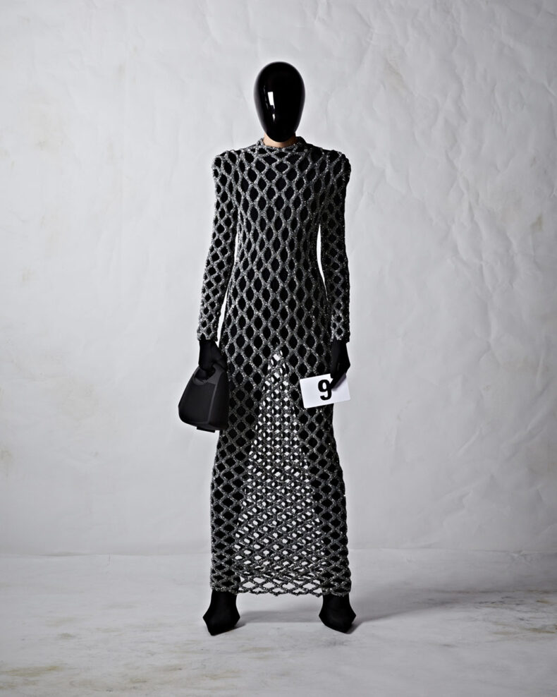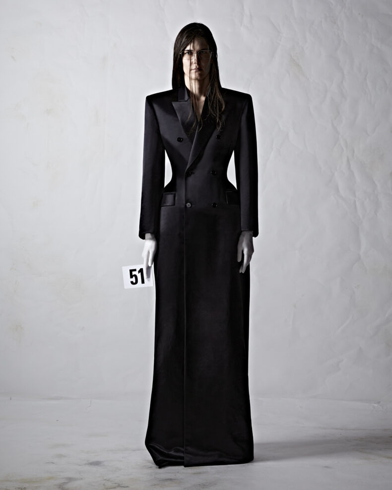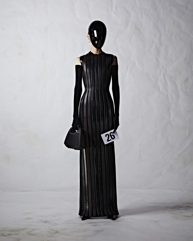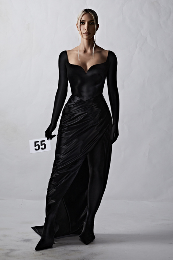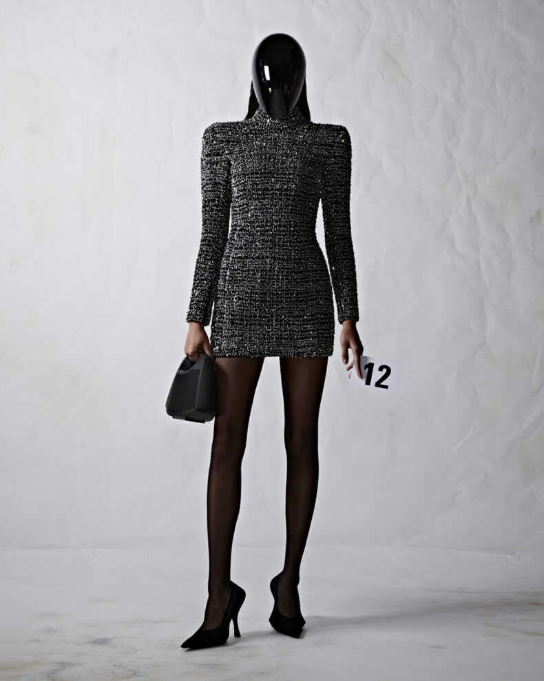 A completare i look presenti in collezione, delle maschere – progettate da Mercedes-AMG F1 Applied Science – che ancora una volta esprimono quel concetto di anonimato di recente manifestato dalla maison Balenciaga. La maschera diventa il mezzo ideale per poter vivere l’ignoto. Ne sono ovviamente privi gli inconfondibili volti di Dua Lipa, Nicole Kidman, Bella Hadid, Christine Quinn, Naomi Campbell e Kim Kardashian. Ancora una volta l’immaginario di Demna per Balenciaga si esprime attraverso le celebrities, così come nelle iconiche campagne pubblicitarie anche in sfilata.