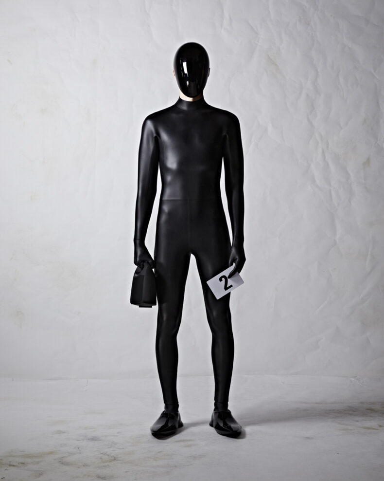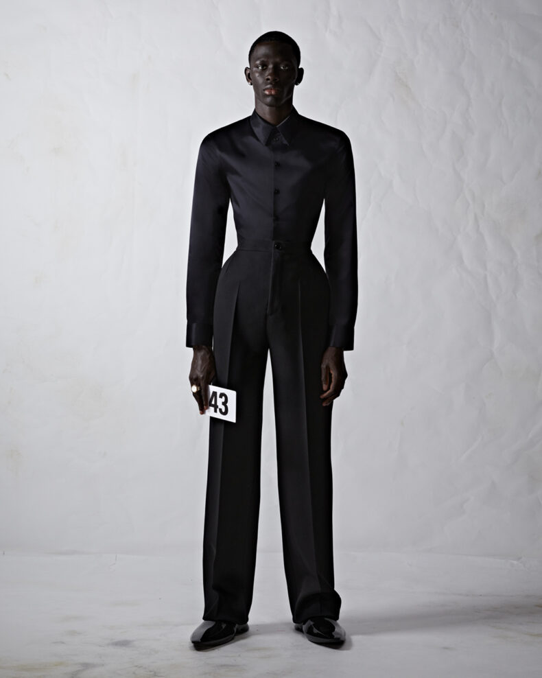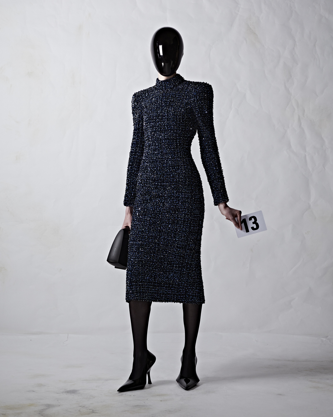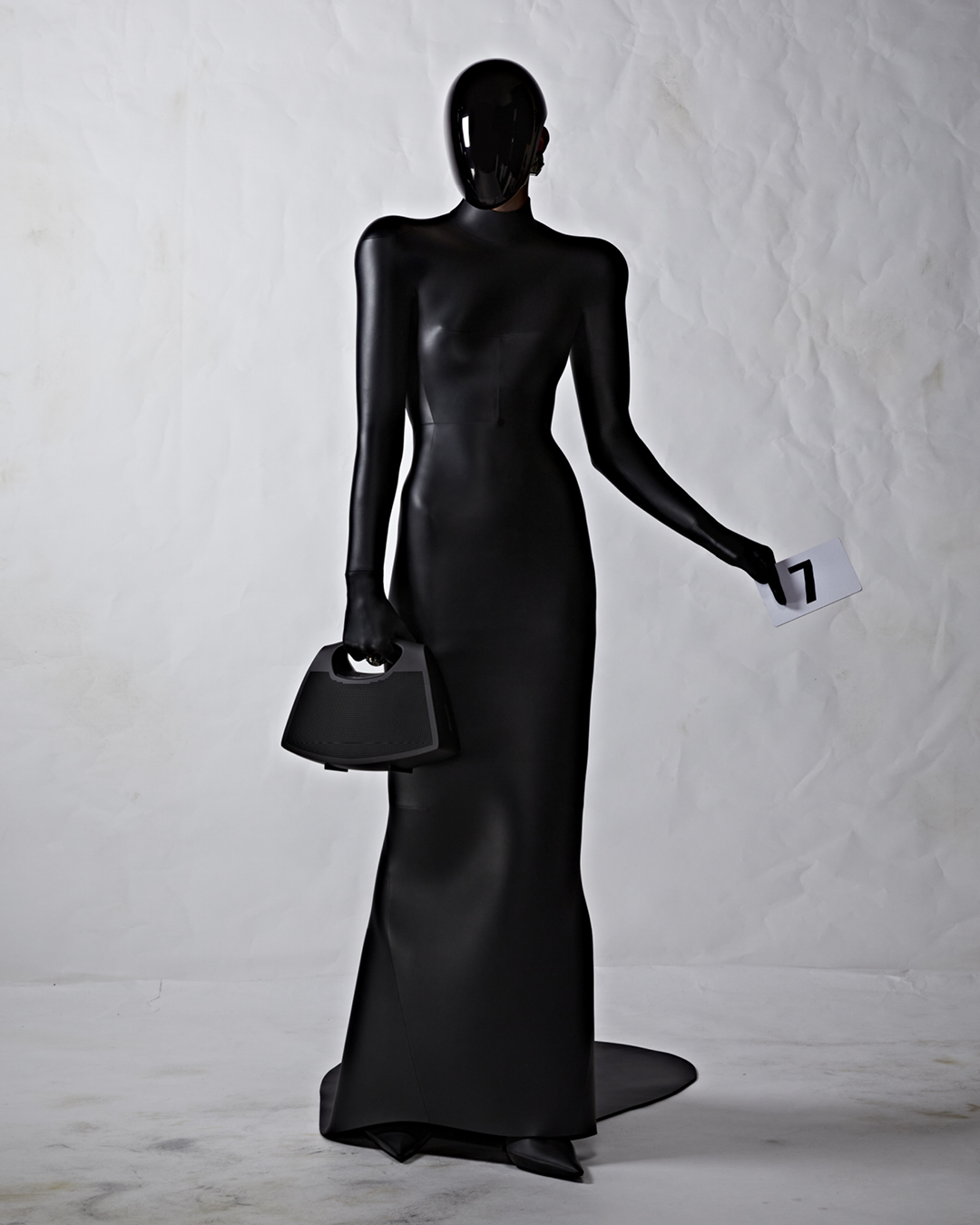 A completare i look presenti in collezione, delle maschere – progettate da Mercedes-AMG F1 Applied Science – che ancora una volta esprimono quel concetto di anonimato di recente manifestato dalla maison Balenciaga. La maschera diventa il mezzo ideale per poter vivere l’ignoto. Ne sono ovviamente privi gli inconfondibili volti di Dua Lipa, Nicole Kidman, Bella Hadid, Christine Quinn, Naomi Campbell e Kim Kardashian. Ancora una volta l’immaginario di Demna per Balenciaga si esprime attraverso le celebrities, così come nelle iconiche campagne pubblicitarie anche in sfilata.