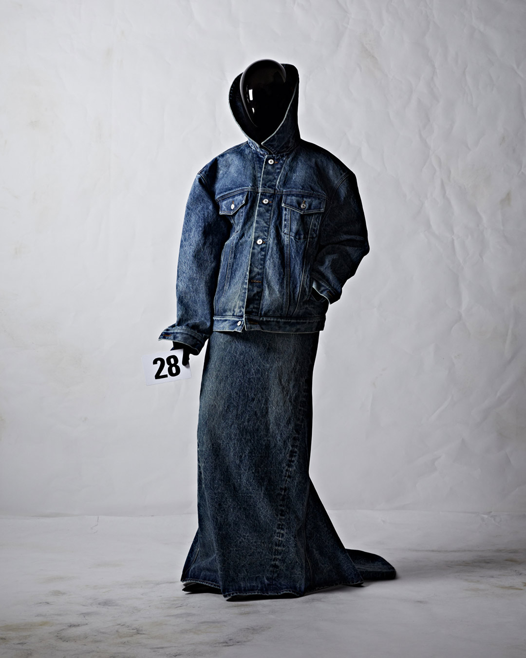 La collezione couture di Balenciaga per Autunno Inverno 2022 è inevitabilmente sostenibile, svariati sono i capi realizzati con articoli riciclati destinati ad una nuova vita. L’atmosfera drammatica di questa sfilata d’alta moda raggiunge il suo culmine in una reale interruzione attraverso look inediti che incombono tra i pezzi cult anni ‘50, si tratta dei capi in tuta e in denim che diventano inaspettatamente pezzi couture.