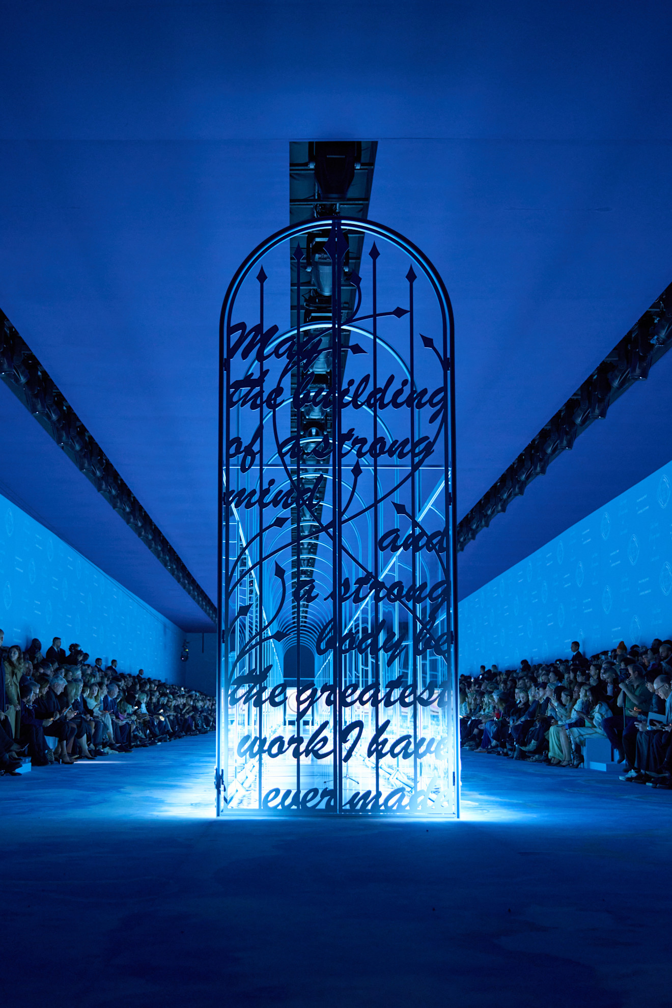 A rendere la sfilata davvero unica è stata la performance di Sagg Napoli, artista e sportiva italiana, che ha scoccato frecce verso un bersaglio mentre le modelle sfilavano lungo la passerella. Vestita con un body monospalla e una minigonna a pieghe della nuova collezione. Questa artista ha incarnato una guerriera moderna, ricordando le figure mitologiche come Diana la Cacciatrice, che hanno ispirato Chiuri in questa stagione.
