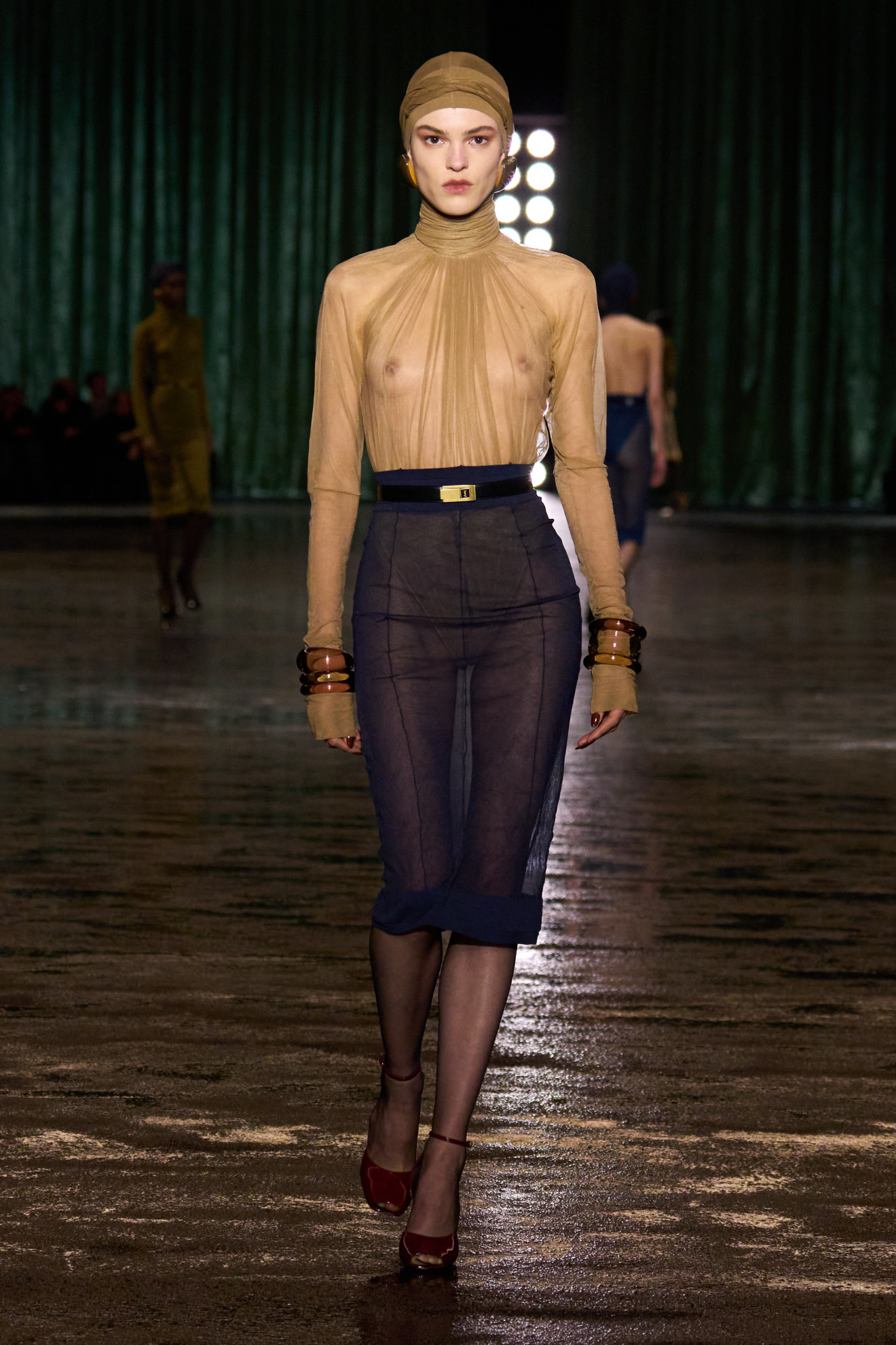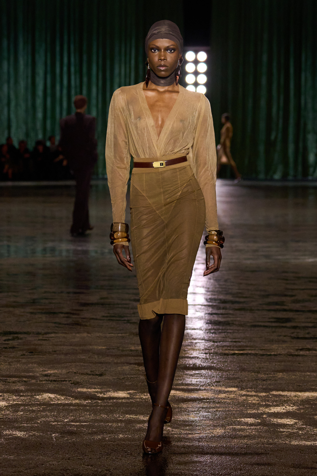 Vaccarello, con la sua collezione, ci porta a riflettere su ciò che un tempo era al centro della moda, rendendolo ora invisibile: i vestiti. Abiti aderenti in seta, che evocano la delicatezza della biancheria intima trasparente, svelano e allo stesso tempo avvolgono la figura femminile con un gioco di trasparenze. La trasparenza, firma distintiva di Saint Laurent, viene reinterpretata, riducendo sempre di più la distanza tra tessuto e pelle fino a farli fondere quasi magicamente. Omaggiando l’iconico abito “nudo” indossato da Marilyn Monroe nella sua ultima apparizione pubblica, il designer intende comunicarci quanto la leggerezza effimera si riveli in realtà un’illusione. Può, invece, la purezza essere provocatoria?