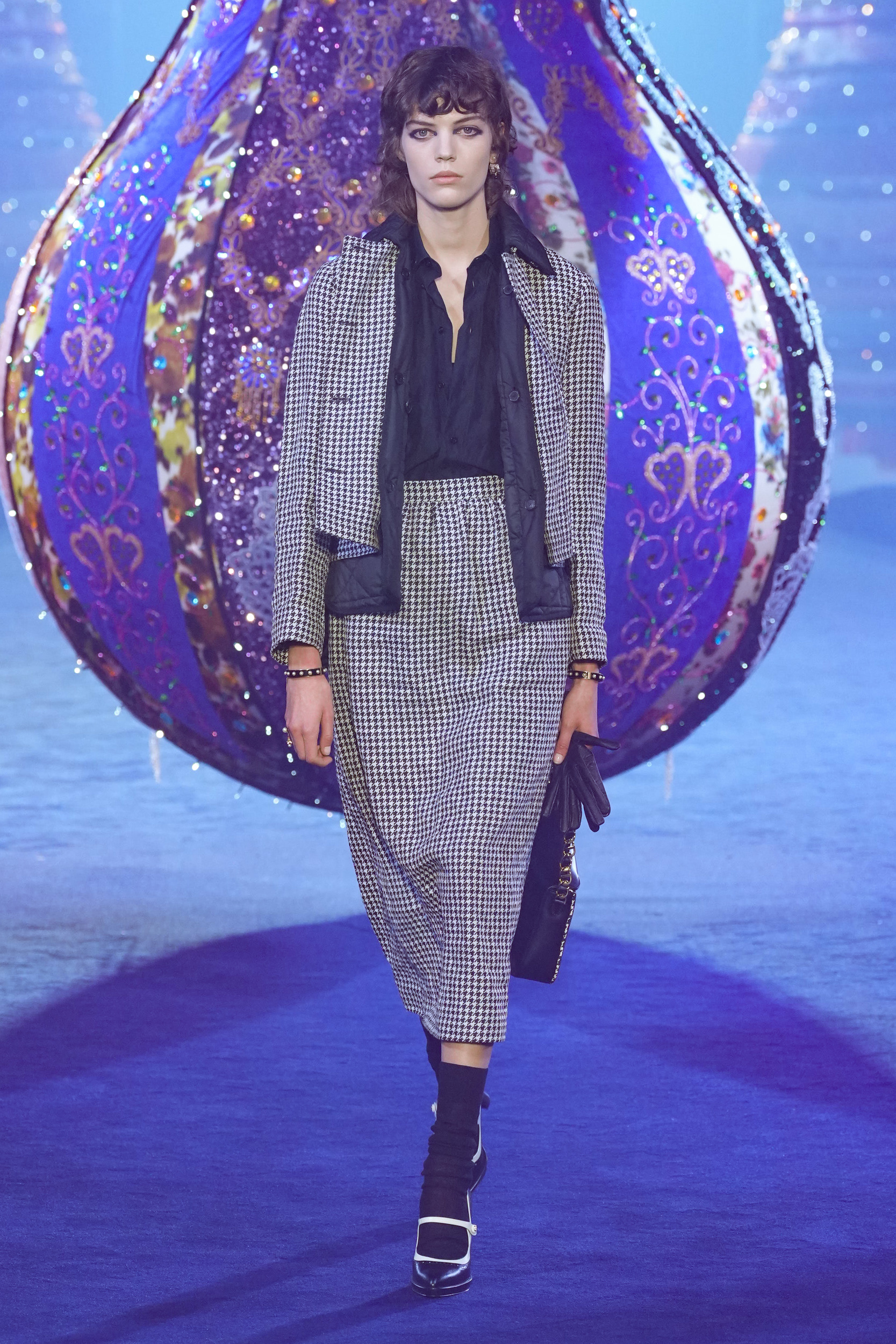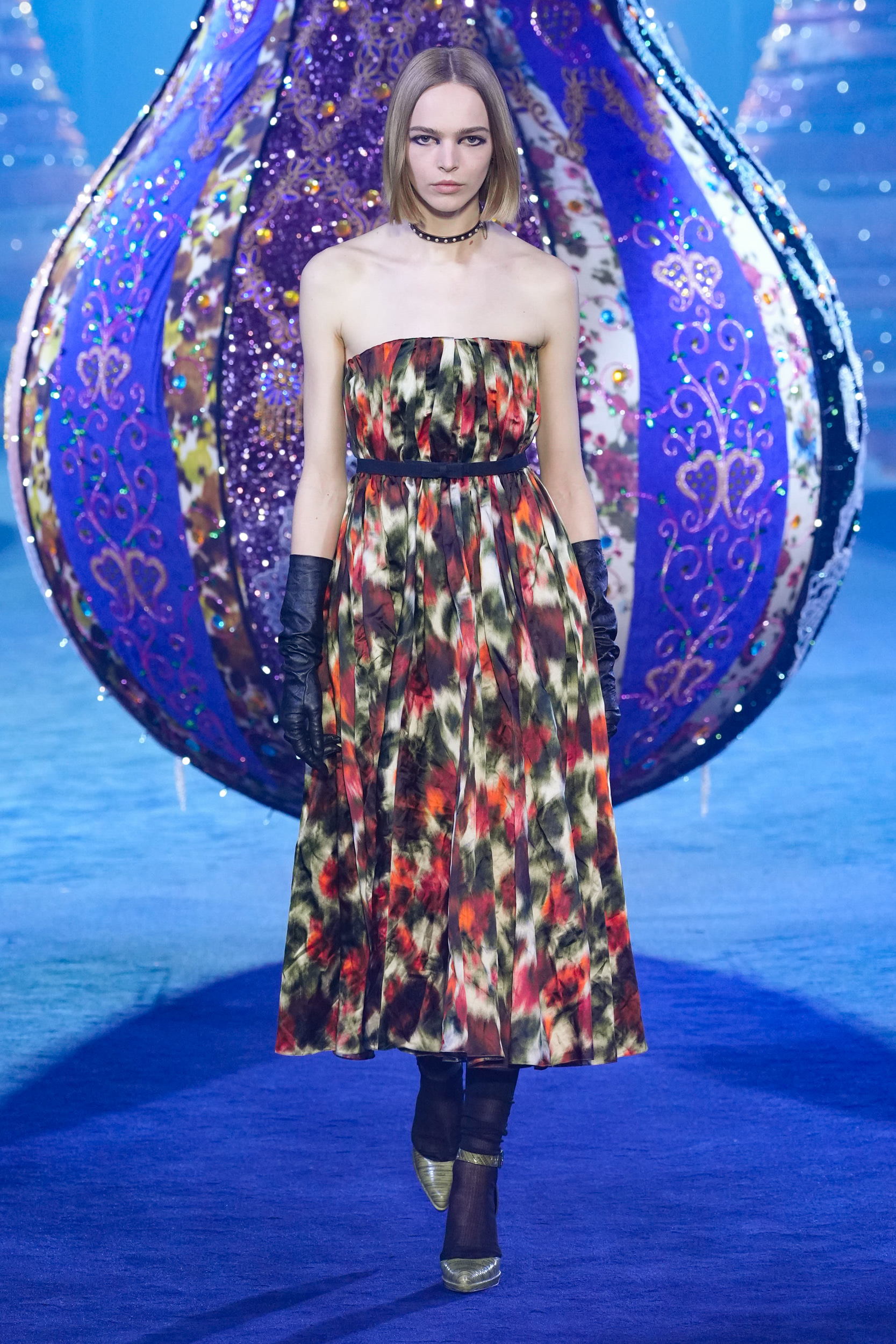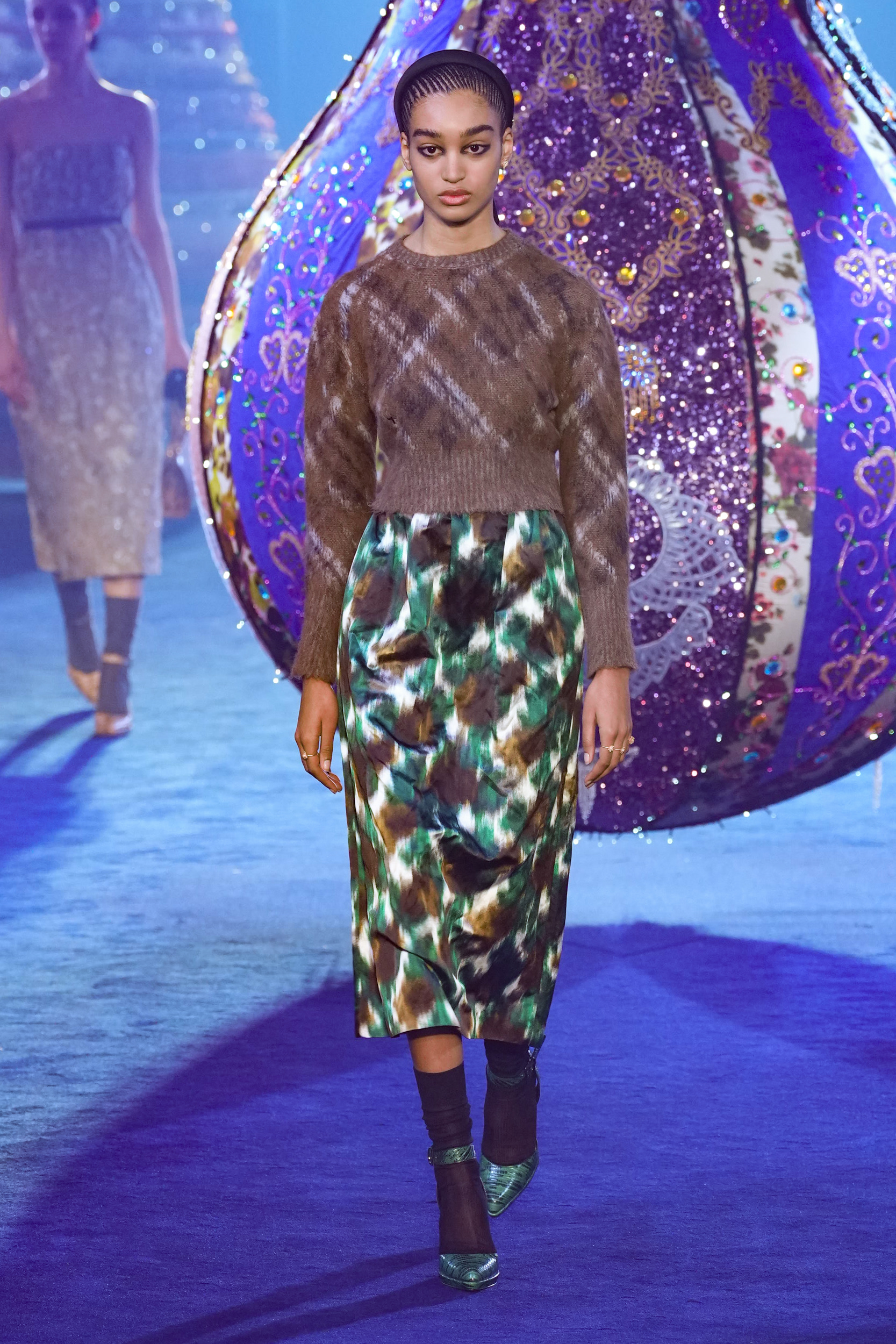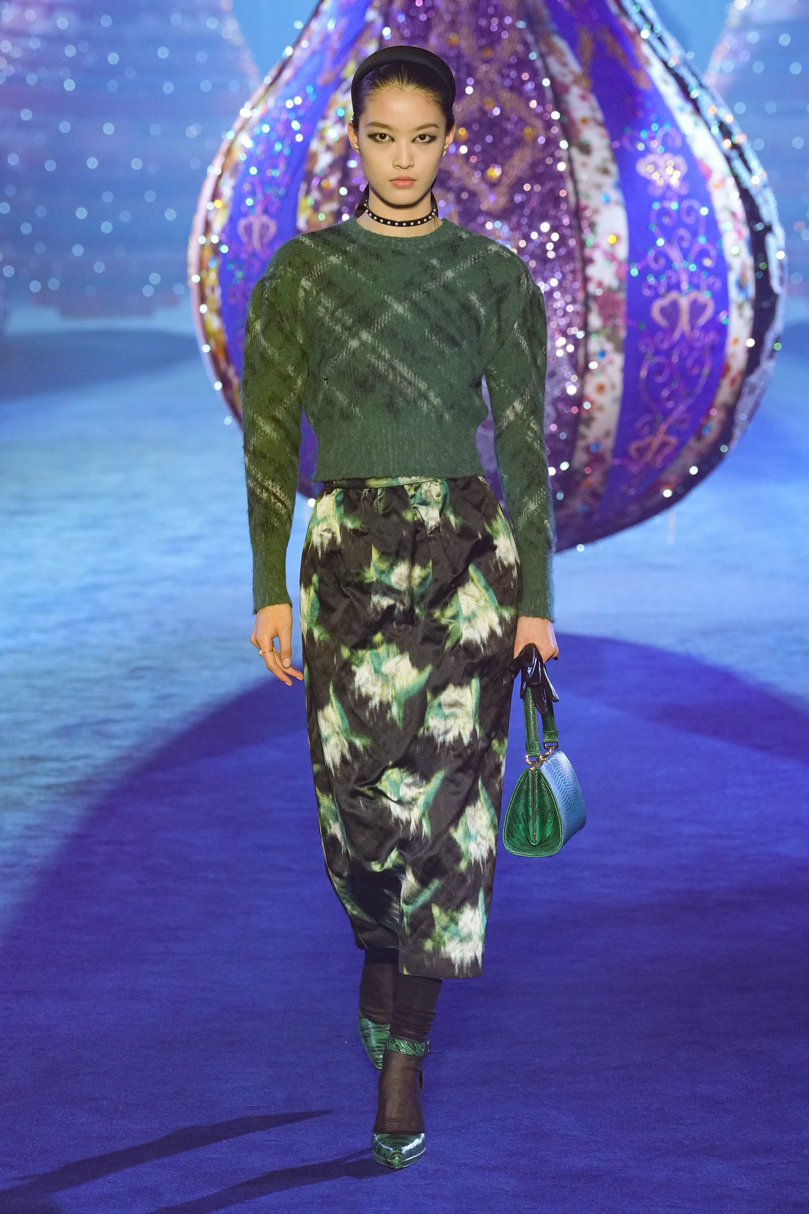 Così sfilano in passerella capi in grado di reinterpretare la moda degli Anni Cinquanta attraverso l’esplorazione di nuovi mondi e l’omaggio a figure straordinarie come Catherine Dior, Édith Piaf e Juliette Gréco. Parliamo di donne indipendenti che hanno scosso gli stereotipi femminili del dopoguerra. Questa collezione si fa scenario di motivi floreali – tanto amati da Monsieur Dior – e di una femminilità ribelle tra cappotti, giacche e gonne dritte e a ruota. Le nuances di colore oscillano dal color smeraldo, sino al giallo topazio e all’inossidabile blu.