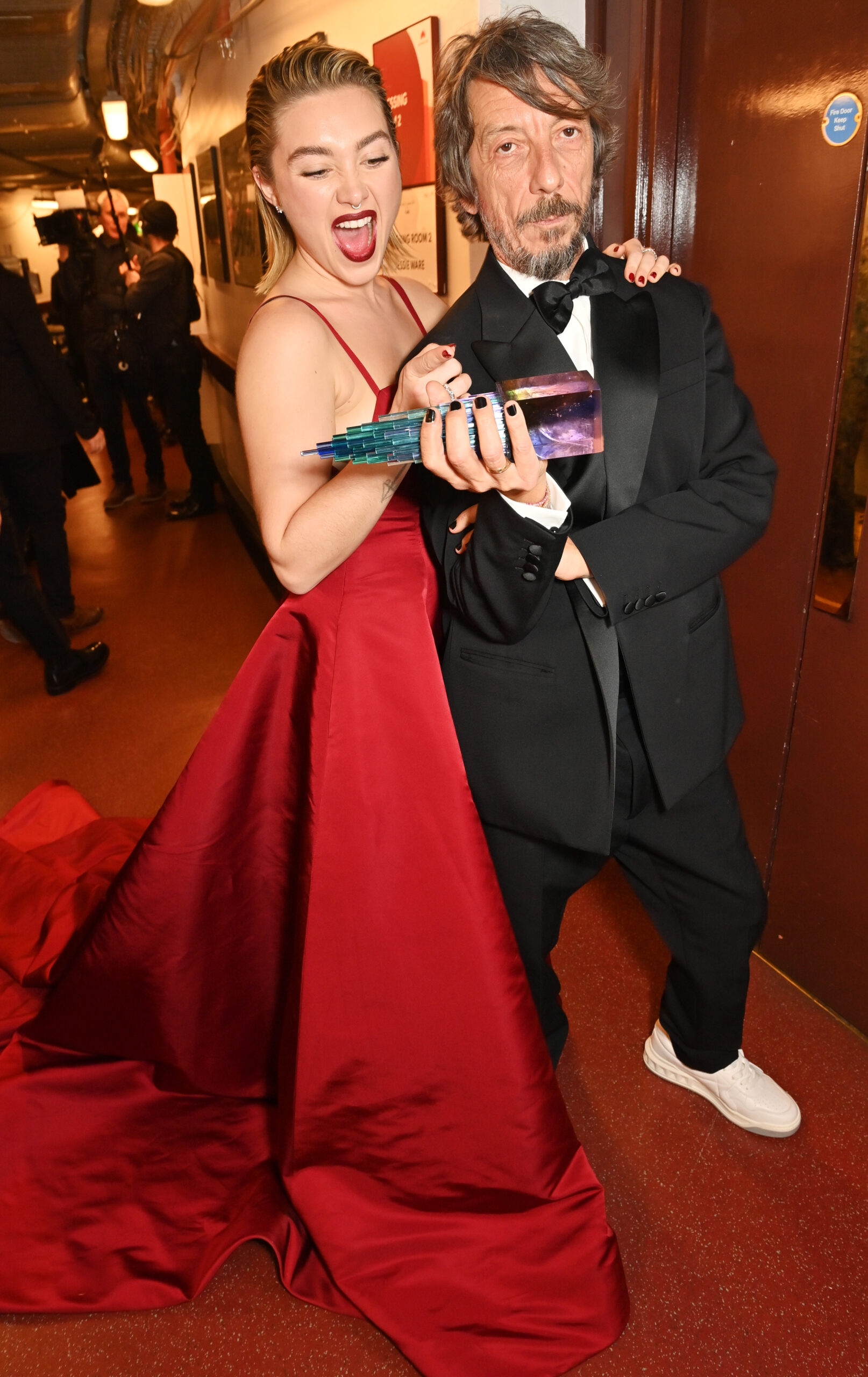 - LONDON, ENGLAND – DECEMBER 05: Florence Pugh and Valentino Creative Director Pierpaolo Piccioli, winner of the Designer of the Year Award, pose backstage at The Fashion Awards 2022 at Royal Albert Hall on December 5, 2022 in London, England. (Photo by David M. Benett/Dave Benett/Getty Images)