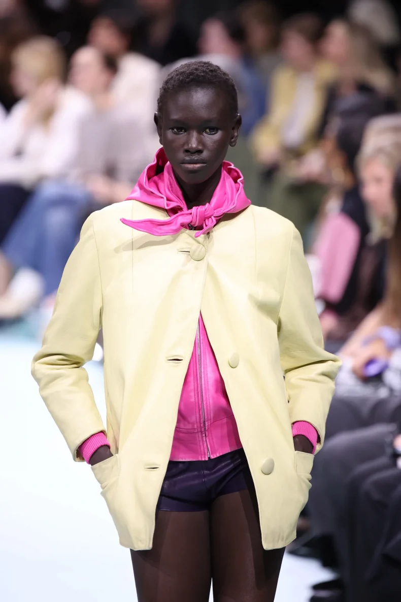 L’impermeabile smette di essere un capo puramente funzionale e si fa protagonista. I trench vengono ripensati con tagli oversize, tessuti tecnici e dettagli inediti. Miu Miu ha portato in passerella versioni minimal, asciutte e monocromatiche, ideali per uno stile urbano e moderno. Louis Vuitton ha invece giocato con materiali trasparenti e silhouette architettoniche, trasformando la giacca da pioggia in un capo d’alta moda. Anche Prada e Boss hanno dato spazio a parka sportivi, accostati però a capi più femminili come gonne leggere o abiti in seta, dimostrando che il contrasto funziona.