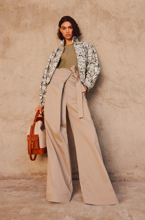 Il mood Safari ormai caro alle presentazioni SS di Alberta Ferretti, fa da padrone anche alla collezione SS 22. I colori della terra e le texture organiche di una proposta che gioca con i volumi e le sovrapposizioni, sono i protagonisti di pantaloni rigorosamente ampi e a vita alta, dal taglio inconfondibilmente maschile, che rende androgino uno stile già fluido. A questi si abbinano capispalla senza mezze misure: trench oversize o giacche cropped da abbinare a top micro o su completi coord. Il tocco di femminilità è dato dai maxi dress, mai troppo ampi, aderenti al punto giusto e dallo stile imperiale, su tessuti drappeggiati e iper leggeri che fasciano il busto.
