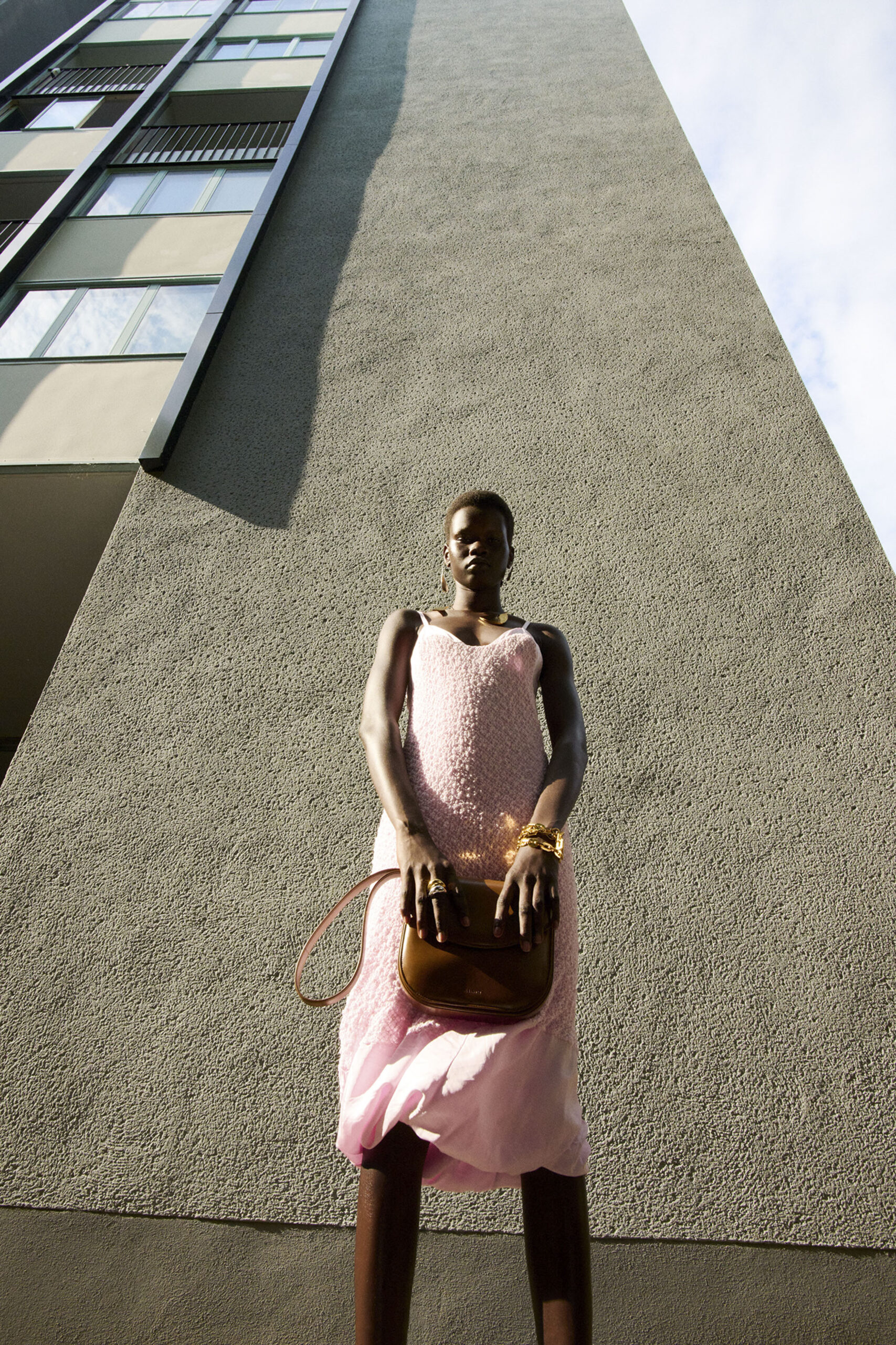 Proprio così, l’animalier è stato rivisitato in chiave minimal, donando un inedito touch of style e ancor più valore ai dettagli più noti come le rouches e il macramé. Mentre, i volumi – da sempre un tratto distintivo di Lucie e Luke Meier – sono decisamente oversize ma al contempo in grado di esprimere leggerezza.