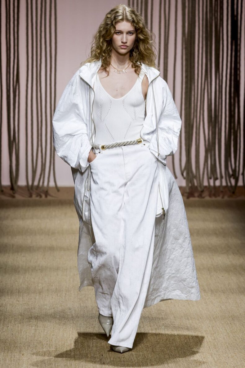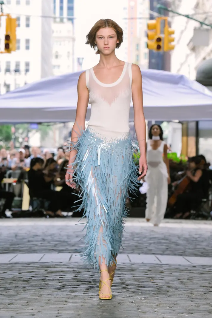 Ma non è tutto: Prabal Gurung esalta il lato romantico e femminile della canottiera, arricchendola con dettagli in pizzo e trasparenze leggere. Stella McCartney, fedele alla sua visione eco-friendly, la propone in materiali sostenibili, mantenendo un’estetica raffinata e rilassata. Rabanne, invece, punta su un mood futuristico, mixando elementi metallici e dettagli strutturati per un effetto ultra-moderno.