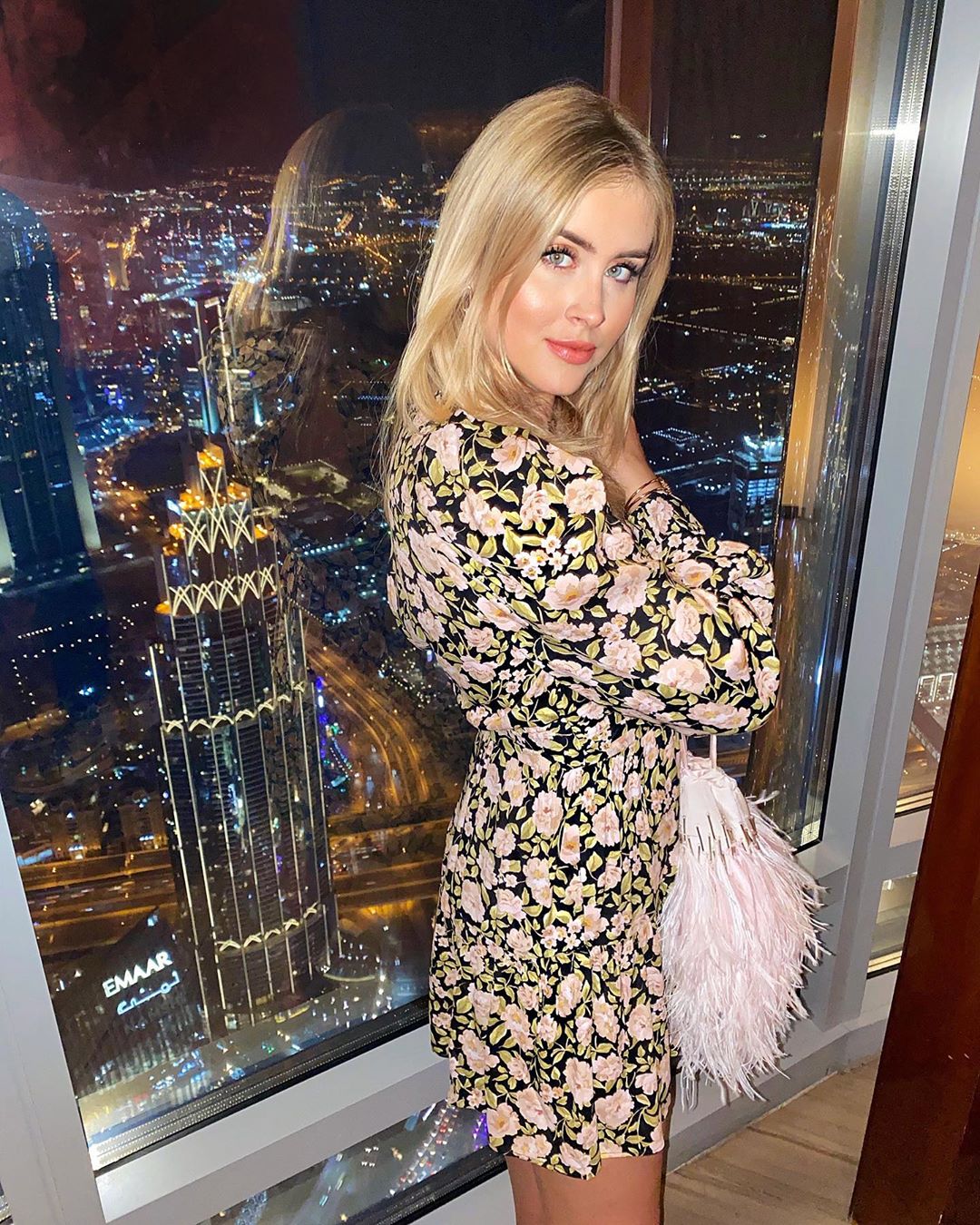 Mini dress floreale con maniche a sbuffo by Zara e borsa in piume The Attico. Il risultato? Glam-chic at its purest!