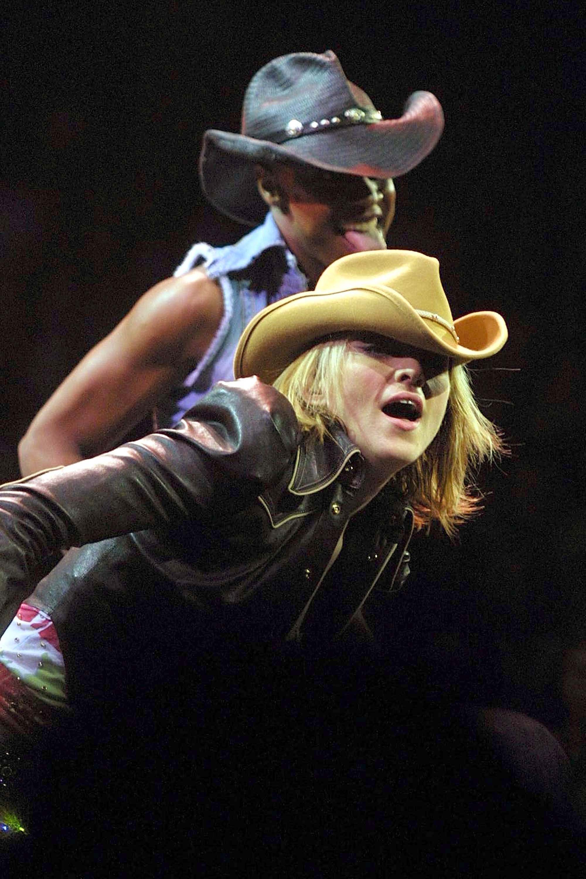 - American pop star Madonna performs in concert July 25, 2001 at Madison Square Garden in New York City. (Photo Mario Tama/Getty Images)