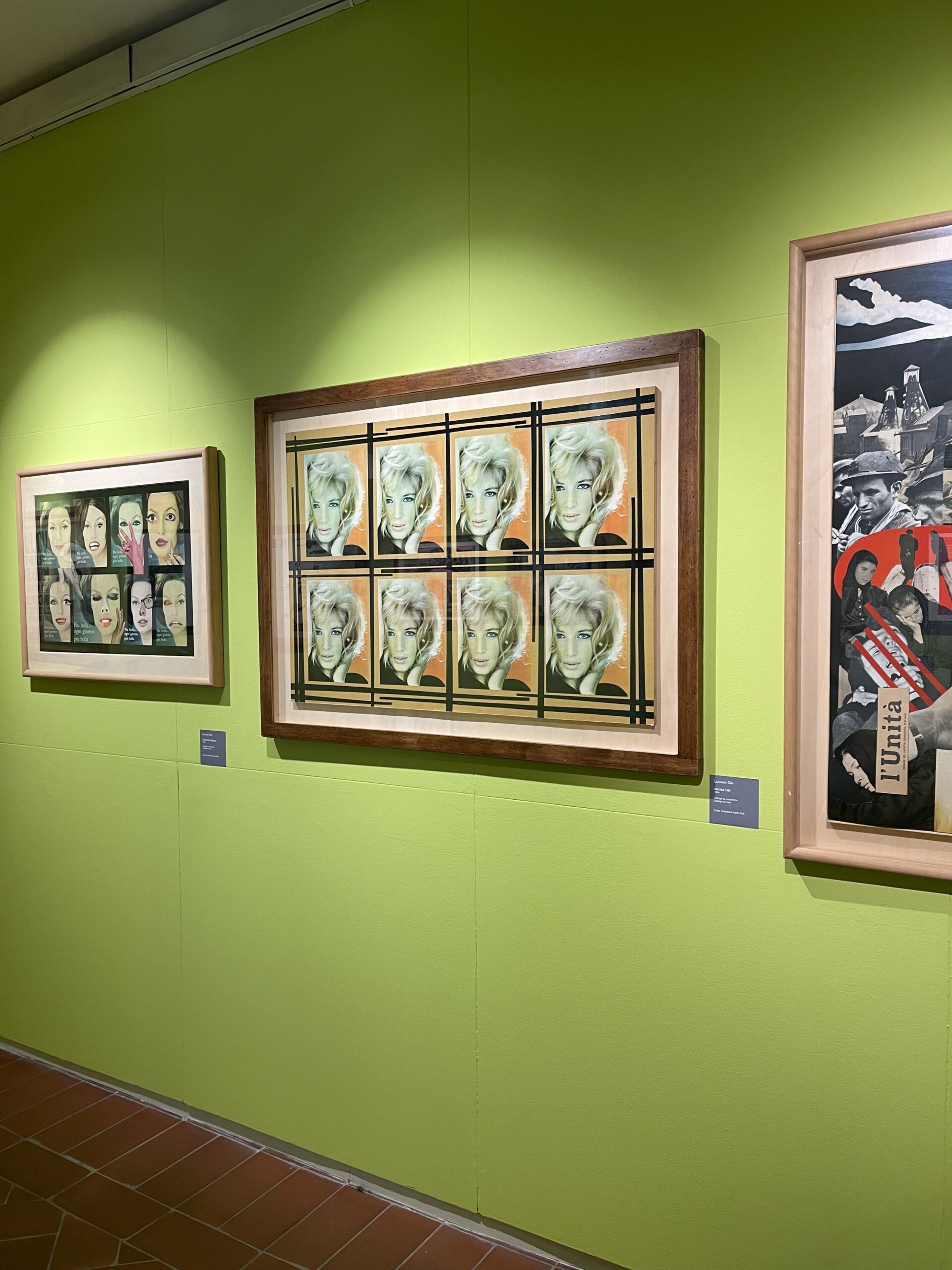 Le opere sono appunto dei collage di immagini presi da giornali, pubblicità, cartoline e altri media che risalgono agli anni Sessanta e Settanta e hanno l’evidente obiettivo di provocare una riflessione su vari temi estremamente attuali come il ruolo della donna nella società, le celebrities come Marilyn Monroe e Monica Vitti, gli standard di bellezza ma anche la guerra e la politica